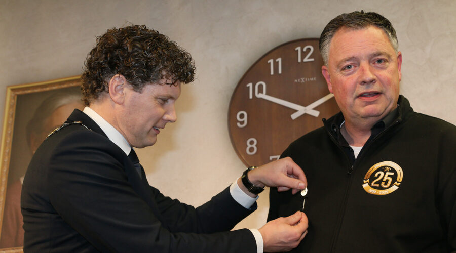 Herbert van den Born (53) uit Terschuur heeft zaterdagavond een koninklijke onderscheiding ontvangen. Burgemeester Jacco van der Tak van Barneveld reikte hem de versierselen uit na de laatste voorstelling van het toneelstuk Een prachtig darp in dorpshuis De Belleman. Van den Born is benoemd tot Lid in de Orde van Oranje-Nassau vanwege zijn jarenlange inzet voor de gemeenschap van Terschuur en Zwartebroek.