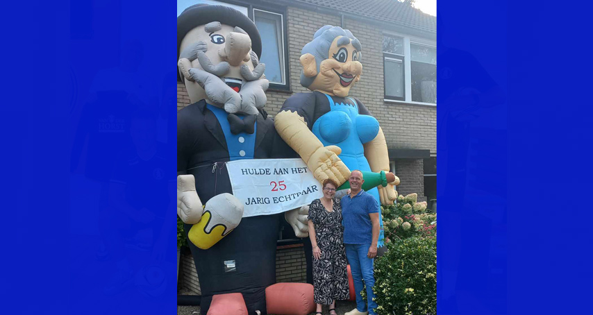 Begin deze week werd reeds gevierd dat Marielle en Nico van Winterswijk met elkaar in het huwelijk traden. Maar dit weekeinde werd het grote feest in Nijkerk gevierd, met een borrel met de kinderen en twee grote poppen voor de deur. Van harte gefeliciteerd, echtpaar.