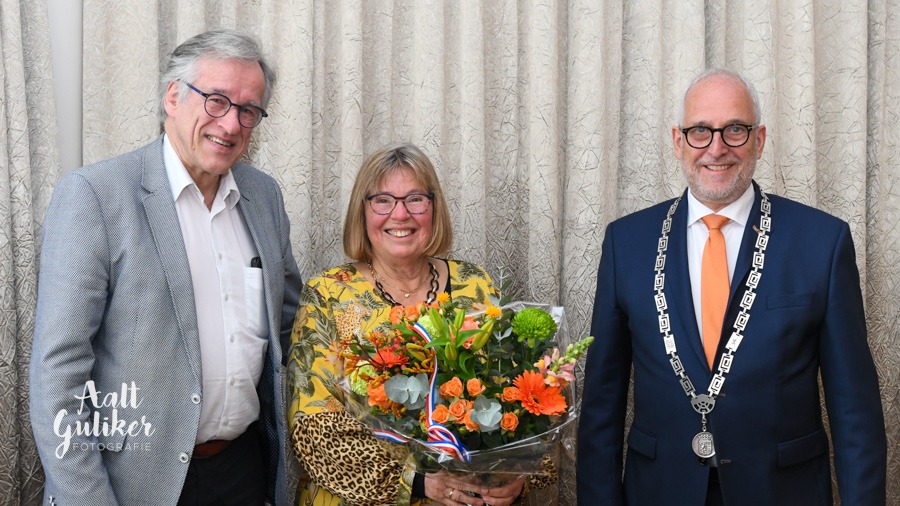 Mariëtte Christophe uit Hoevelaken is totaal verrast toen ze vrijdagmorgen 26 april arriveerde in de Nijkerkse raadszaal en werd verrast met een Koninklijk lintje. De 70-jarige Hoevelakense werd benoemd tot liefst Officier in de Orde van Oranje Nassau. De versierselen werden uitgereikt door burgemeester Renkema. Mariëtte Christophe heeft in een zeer bepalende fase van de ontwikkelingen van vrouwen bij de politie en bij de geüniformeerde overheid veel bereikt op het gebied van emancipatie, diversiteit en een maatschappelijk georiënteerde politie. In alle functies was ze voortrekker, een boegbeeld voor vrouwen en muren doorbreker. Daarnaast heeft zij zich voor diverse vrijwilligersactiviteiten ingezet, oa. redactielid Drieluik Protestantse gemeente Amersfoort, lid beraadsgroep Bergkerk en Fonteinkerk Amersfoort, adviseur Waardering Erkenning Politie (WEP), gastvrouw Lutherse Kerk Amersfoort, lid/voorzitter commissie post-actieven Equipe. Foto Aalt Guliker