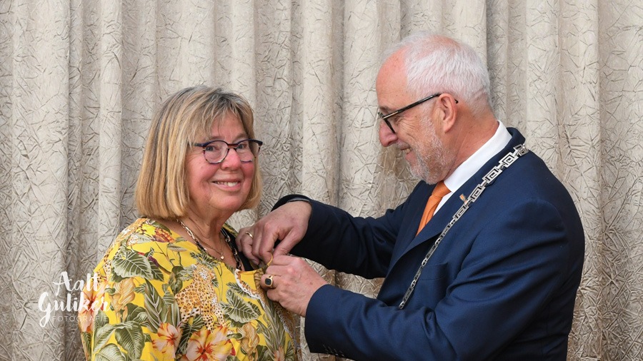 Mariëtte Christophe uit Hoevelaken is totaal verrast toen ze vrijdagmorgen 26 april arriveerde in de Nijkerkse raadszaal en werd verrast met een Koninklijk lintje. De 70-jarige Hoevelakense werd benoemd tot liefst Officier in de Orde van Oranje Nassau. De versierselen werden uitgereikt door burgemeester Renkema. Mariëtte Christophe heeft in een zeer bepalende fase van de ontwikkelingen van vrouwen bij de politie en bij de geüniformeerde overheid veel bereikt op het gebied van emancipatie, diversiteit en een maatschappelijk georiënteerde politie. In alle functies was ze voortrekker, een boegbeeld voor vrouwen en muren doorbreker. Daarnaast heeft zij zich voor diverse vrijwilligersactiviteiten ingezet, oa. redactielid Drieluik Protestantse gemeente Amersfoort, lid beraadsgroep Bergkerk en Fonteinkerk Amersfoort, adviseur Waardering Erkenning Politie (WEP), gastvrouw Lutherse Kerk Amersfoort, lid/voorzitter commissie post-actieven Equipe. Foto Aalt Guliker