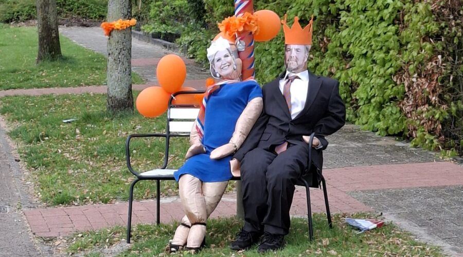 Wie hebben we daar dan? Koningin Maxima en Koning Willem-Alexander zijn gespot op de Martinus Zwetslootstraat. Ook de moeder van de Koning laat er haar gezicht zien. Natuurlijk is het niet het echt Koninklijke echtpaar maar wordt er in de straat alles aan gedaan om goed voor de dag te komen tijdens Koningsdag. En misschien maken ze wel kans om mooist versierde straat van Nijkerk te worden, want die straat mag genieten van een barbecue van Keurslager Tim de Gier ter waarde van 450 euro. Bovendien wordt ook nog een springkussen meegeleverd. Op 27 april maakt de jury aan het einde van de aubade ± 11:00 uur de winnaar bekend. foto van Kees van den Heuvel