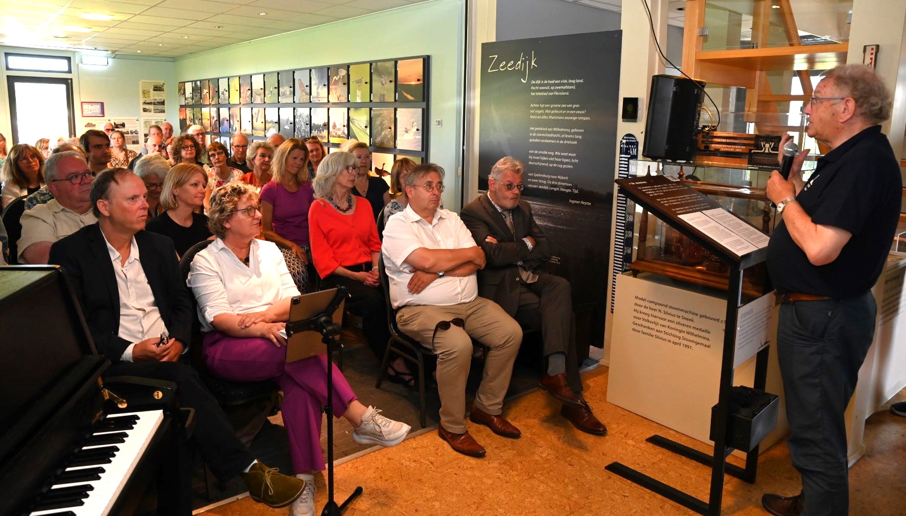 Het interieur en de geschiedenis van Stoomgemaal Hertog Reijnout in Nijkerk zijn vanaf nu ook digitaal te volgen via telefoon. Dat is mogelijk via de mediatoer die is ontwikkeld door Museum Nijkerk, in samenwerking met de provincie Gelderland en Erfgoed Gelderland. Alle verblijfsruimten van het stoomgemaal zijn voorzien van een QR-code en wie hierop klikt krijgt het verhaal te horen van deze ruimte. Vervolgens wordt een filmpje getoond dat van commentaar wordt voorzien door Lida Naber. De andere medewerkers aan dit project waren Theo Slijkerman en Hans Vaarkamp. Bij de officiele ingebruikname werd een waterrad in beweging gebracht en werden de genodigden door muzikanten rondgeleid door het stoomgemaal. Ook verrezen twee zeenimfen vanuit het water van de polder Arkemheen. Zij kropen later aan wal. Foto Kees van den Heuvel