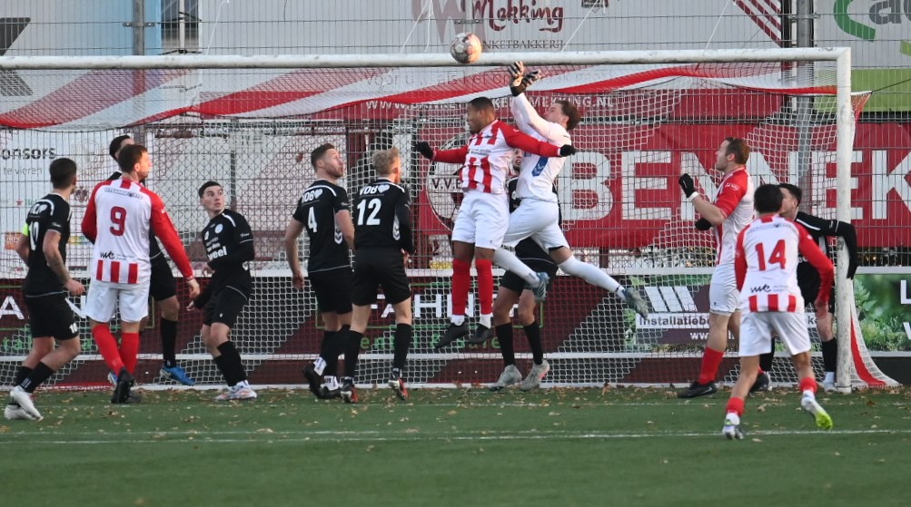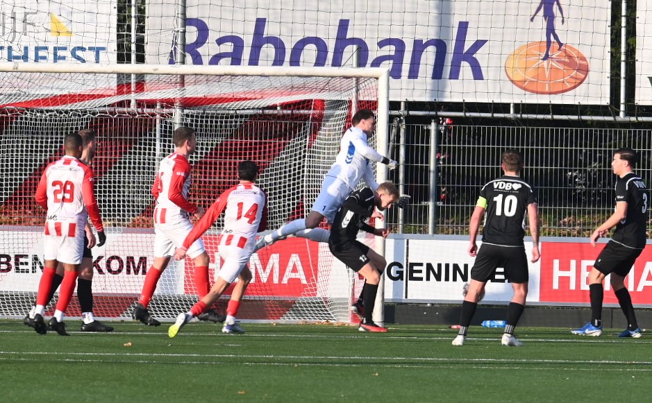 De start op sportpark Eikelhof was veelbelovend voor de Blauwe Helden. De Boys kregen diverse kansen, maar die werden niet verzilverd. Bij het eerste balcontact voor de goal van Veensche Boys was het uiteindelijk wel raak voor Bennekom. Uit een afvallende cornerbal maakt Maurice Kuppens snoeihard de 1-0. Het team van hoofdcoach Jeroen Peters rechtte de rug en snel na de goal van Bennekom scoorde Veensche Boys de gelijkmaker. De bal van Justin Ruizendaal werd nog van de doellijn weggetrapt, maar de scheidsrechter had het goed gezien dat de bal wel degelijk over de lijn was gegaan. Na krap een half uur spelen was het weer tegenslag voor Veensche Boys. Kuppens omspeelde twee verdedigers van Veensche Boys simpel en kon daarna in de verre hoek (binnenkant paal) binnenschieten. Na rust werden bij de voorhoede van Veensche Boys voorzien van nieuw bloed. En dat had resultaat: Michel Goossensen schoot vanaf de zestien meter de 2-2 binnen. Ondanks hevig aandringen van de Boys bleef het bij dit gelijkspel. Foto en bron Kees van den Heuvel