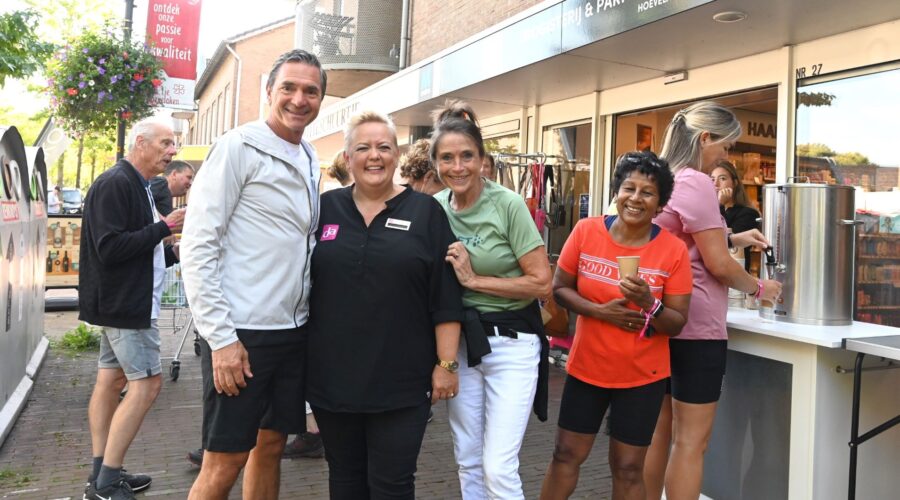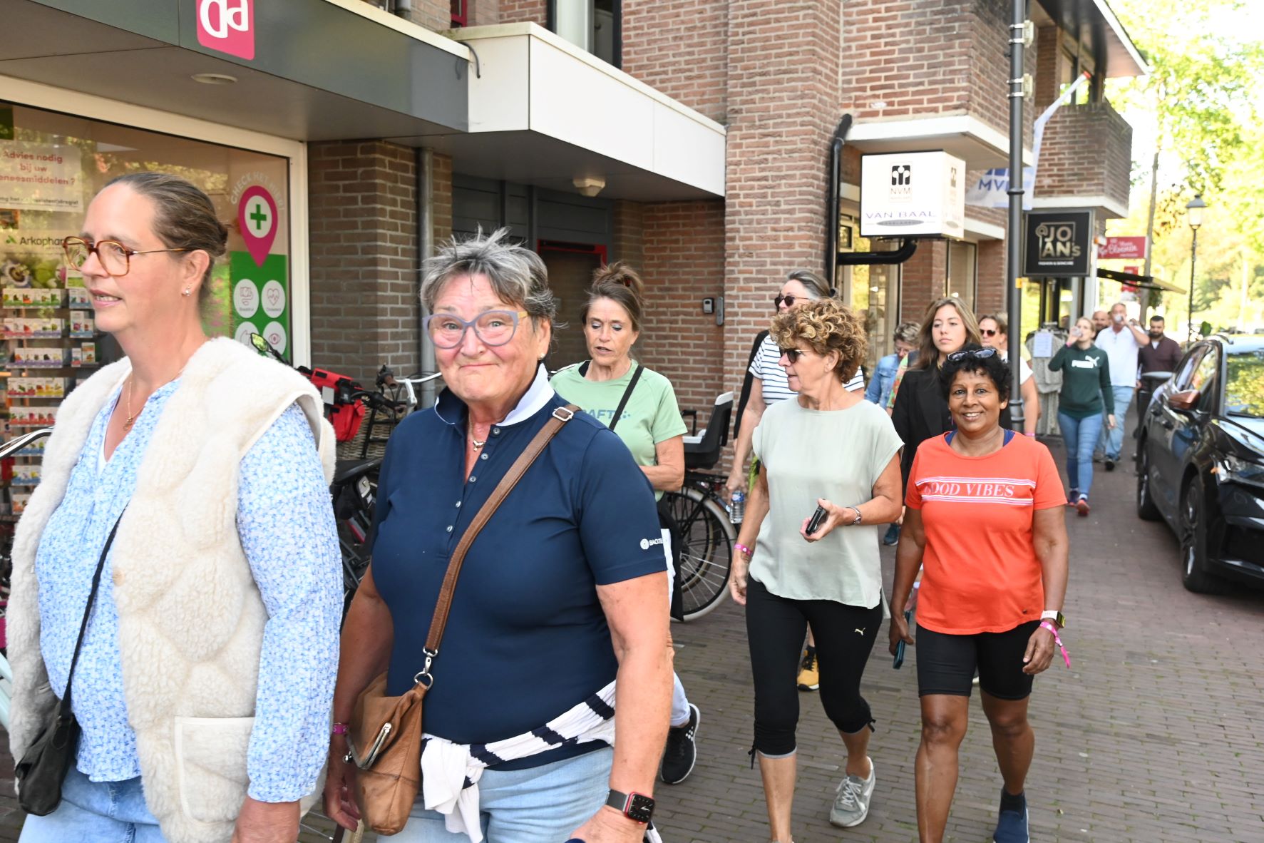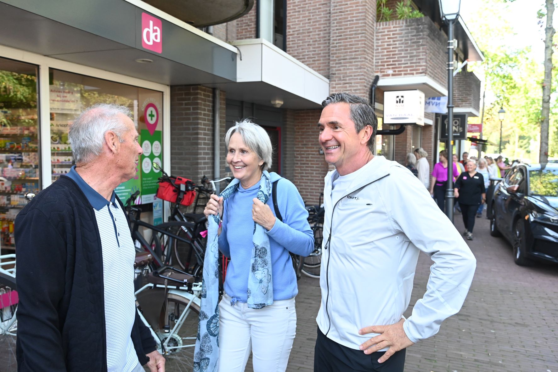 DA drogisterij en parfumerie Hoevelaken organiseerde vrijdag 15 september in samenwerking met Just2BFit een wandelevent. Hierbij liepen de voormalige topsporters Hein Vergeer, Leontien van Moorsel en Yvonne van Gennip mee. Leontien moest echter afhaken vanwege een vakantie. Er waren 46 spontane lopers uit Hoevelaken die meeliepen van de Westerdorpstraat naar het Hoevelakense Bos en terug. Na afloop ontving iedereen een goodybag met veel producten en kortingen. Foto Kees van den Heuvel