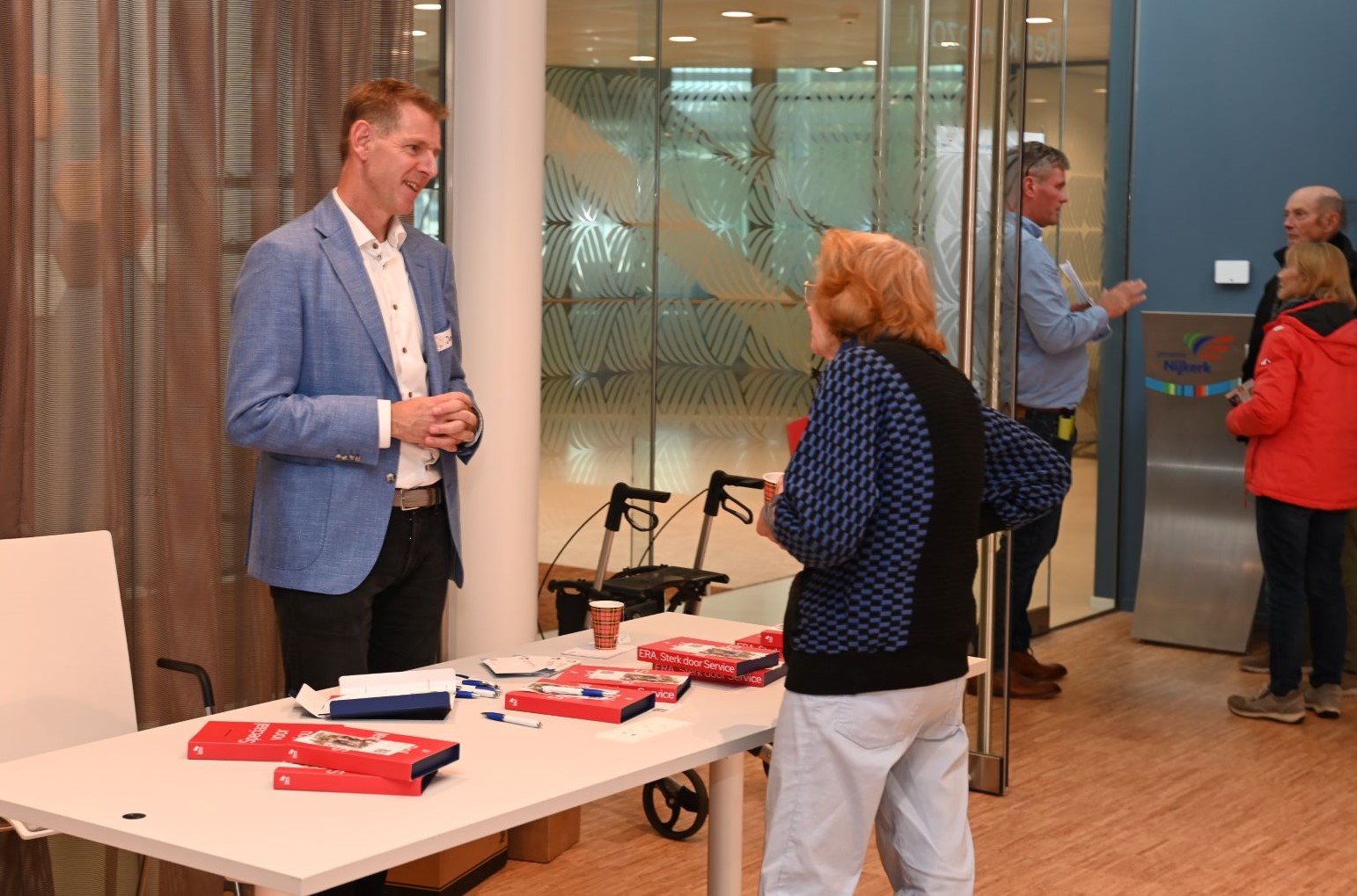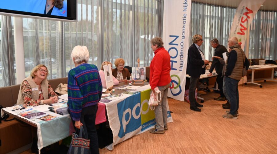 Woensdagmiddag 22 oktober was er een minibeurs in de Gerard Renkemazaal van het Nijkerkse gemeentehuis met de titel “passend wonen in de toekomst voor senioren”. De beurs werd georganiseerd door de Woningstichting Nijkerk en was gericht op het helpen van senioren met woonoplossingen voor de toekomst. De organisatoren waren Woningstichting Nijkerk, gemeente Nijkerk, Sigma en ANBO-PCOB. Foto Kees van den Heuvel