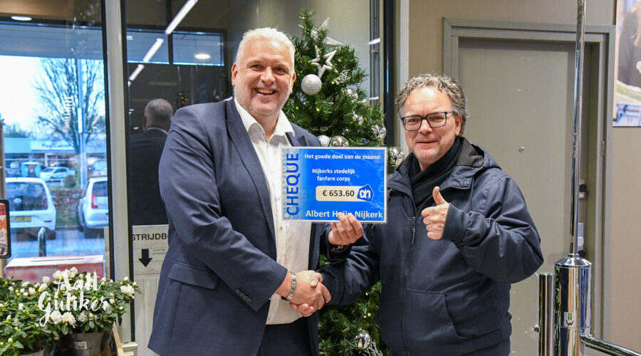 Supermarktmanager Jan Vlijm van Albert Heijn Nijkerk heeft maandagmiddag een cheque ter waarde van €653,60 overhandigd aan het Nijkerks Stedelijk Fanfare Corps (NSFC). De cheque werd in ontvangst genomen door Marcel Wagenveld, voorzitter van het NSFC.