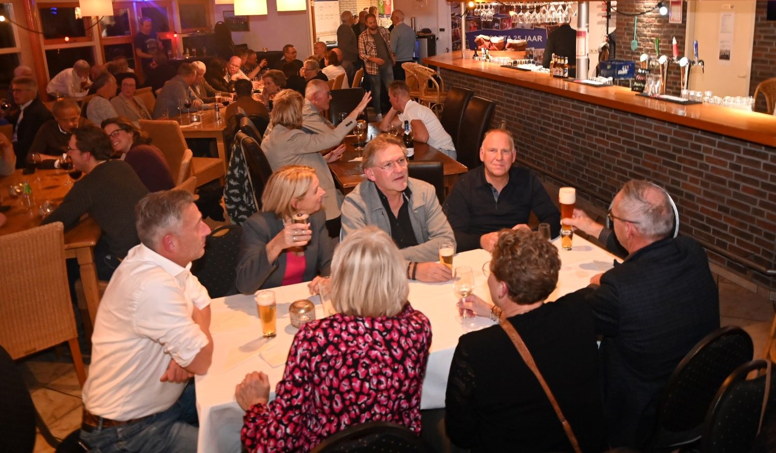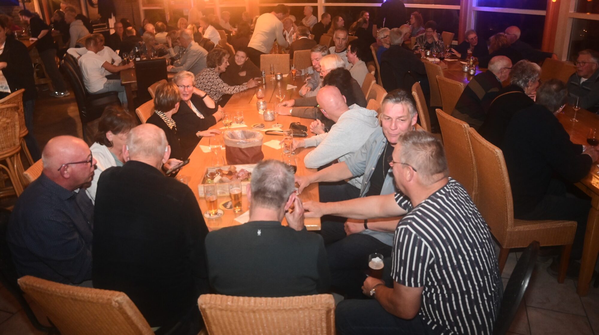 Het ging er muzikaal aan toe tijdens de gezellige vrijwilligersavond 17 november bij tennisvereniging Sparta Nijkerk. Eerst was er een gezamenlijk diner, verzorgd door Marry Cooking, waarna een muziekquiz volgde waarbij de tafels aan de kant werden geschoven en allerlei opdrachten op de dansvloer werden verricht. De muzikale omlijsting was in handen van Goossen Luytjes en dan is een succesvolle avond gegarandeerd. Foto Kees van den Heuvel