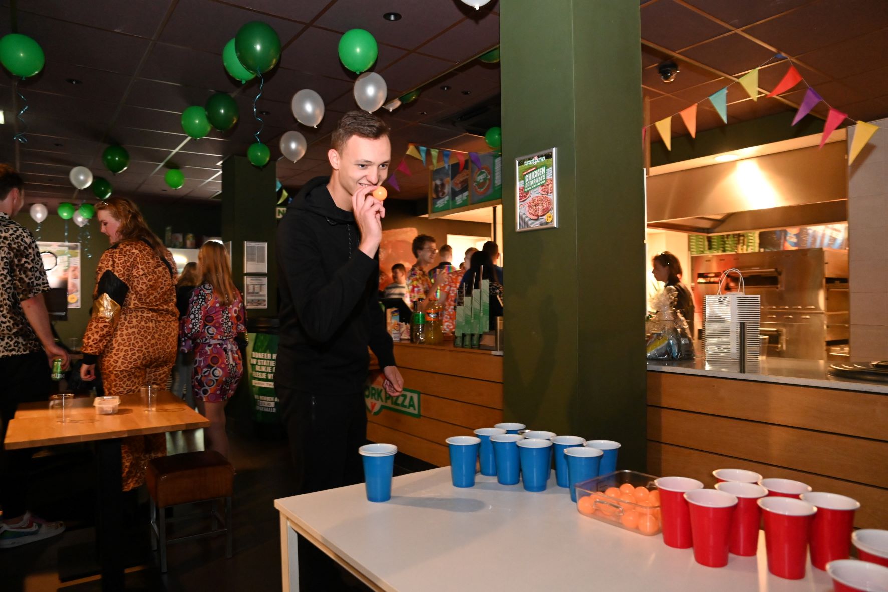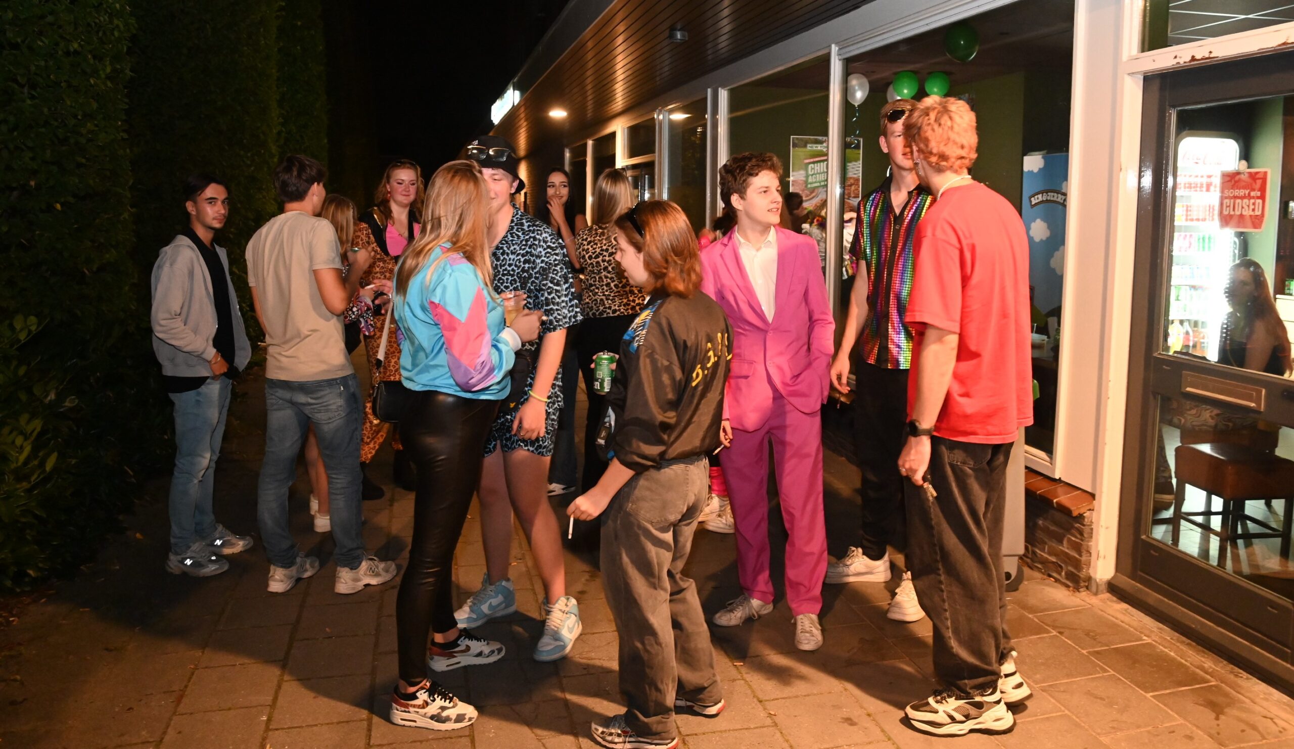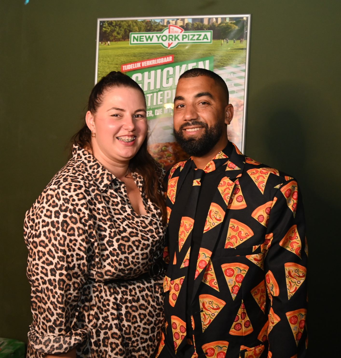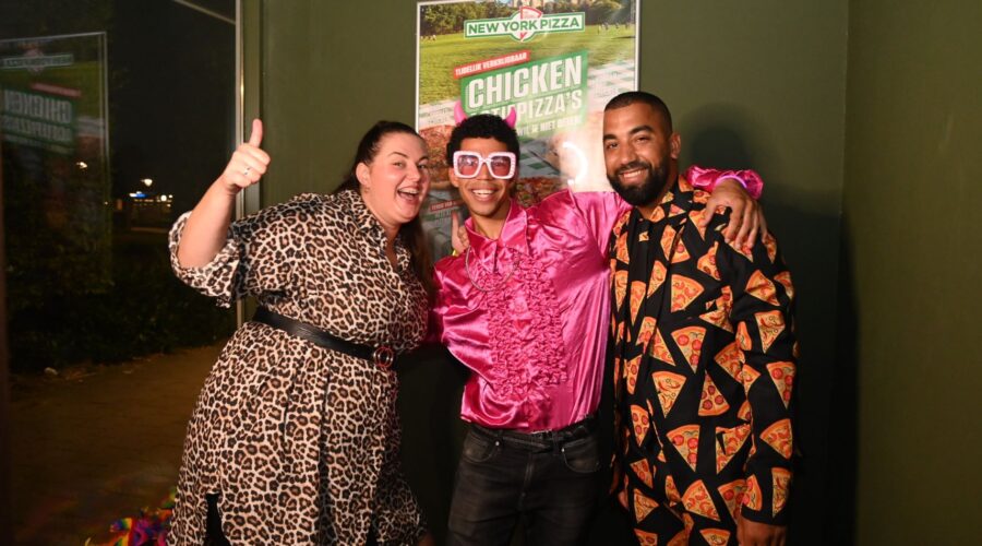 Met een foute party heeft de Nijkerkse vestiging van New York Pizza zaterdagavond 7 oktober haar vijfjarige bestaan gevierd. Zo’n veertig personeelsleden, oud-medewerkers en medewerkers van de vestiging in Ermelo kwamen naar Nijkerk om het lustrum te vieren. En wat won de winnaar van het personeelslid met het meest foute kostuum? Een bon van een pizza-concurrent. De start van de uitbaters Arjen en Anne Swart was niet florissant te noemen, want omwonenden spanden een rechtszaak aan tegen de komst van de delivery-gigant, maar nu ze er eenmaal zijn gevestigd, zijn de omwonenden zeer tevreden. De pizzeria versterkt het sociaal toezicht en opa’s en oma’s uit de omgeving nemen graag hun kleinkinderen mee om te genieten van de vele lekkernijen. De komende week worden trouwens vijf dagen lang vijf pizza’s gratis weggegeven. Bovendien zijn er tal van kortingsacties. Foto Kees van den Heuvel