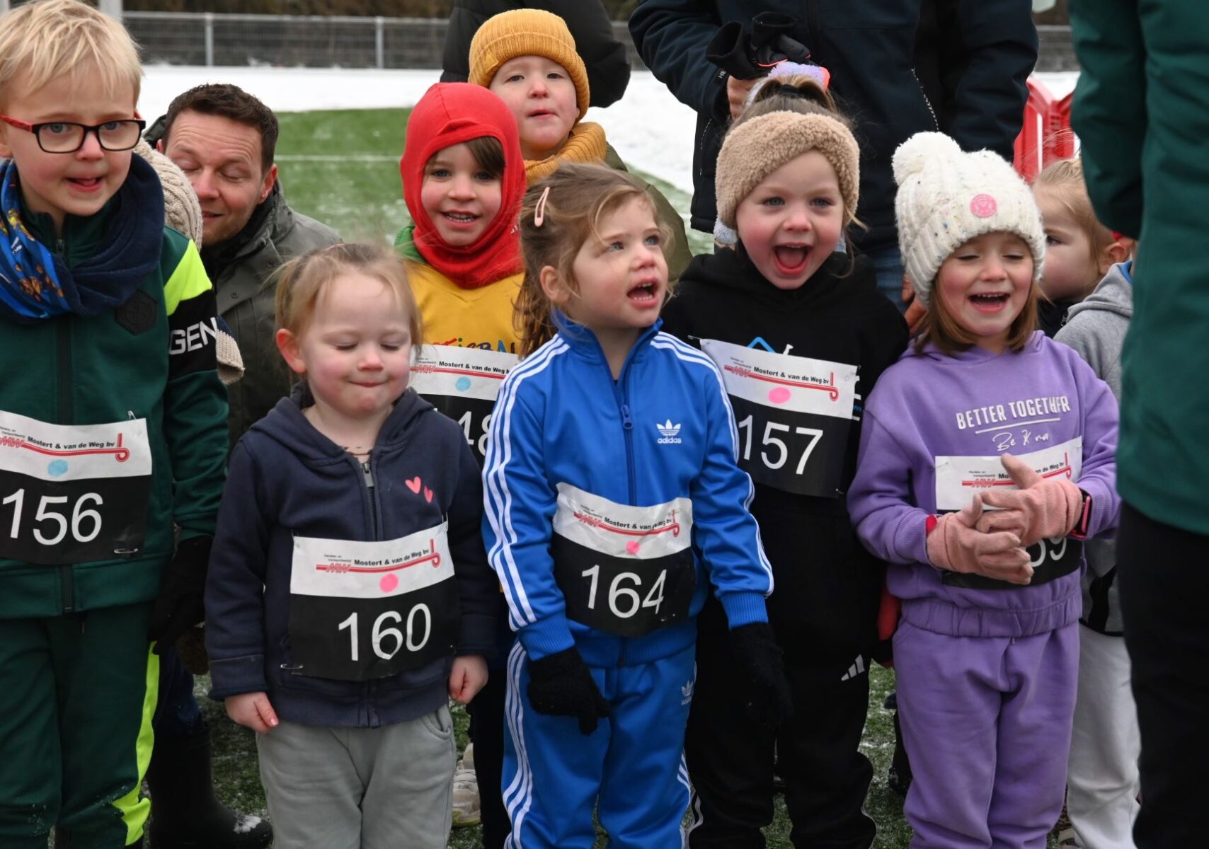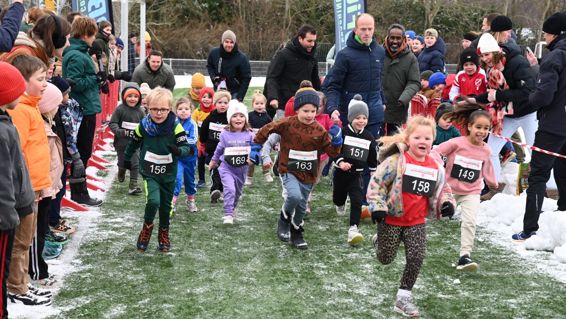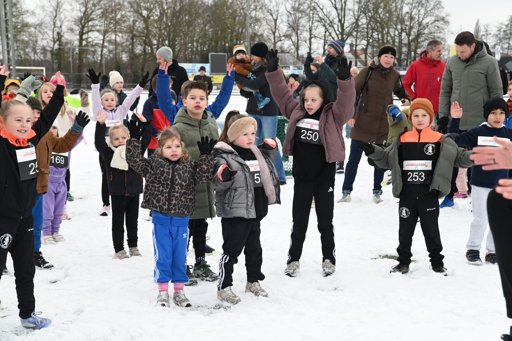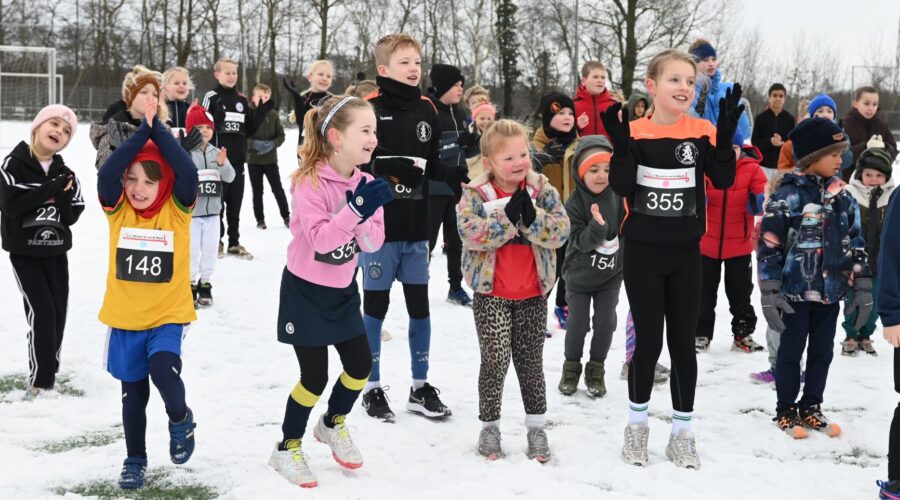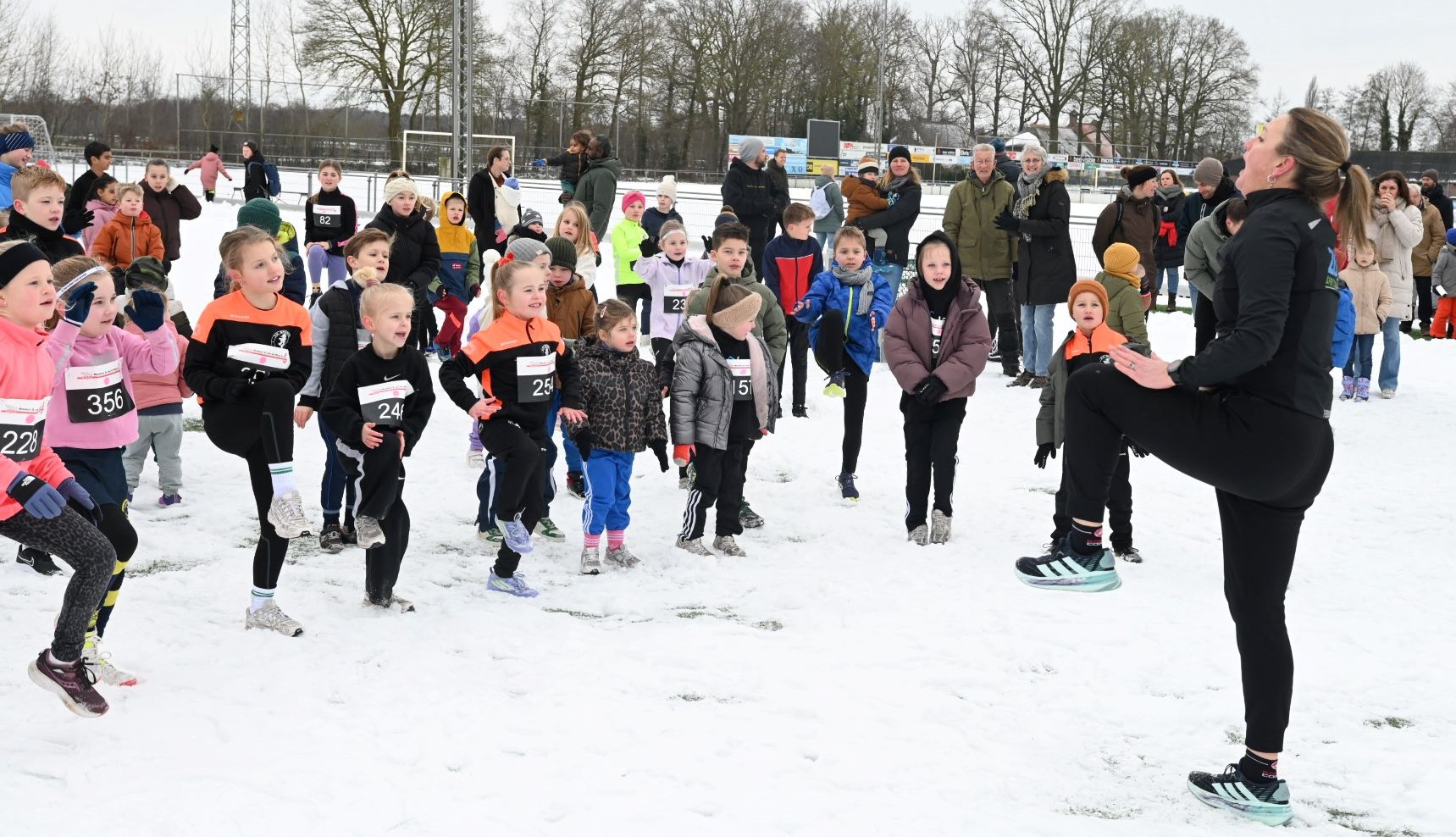 Niet eerder is er zoveel sneeuw gevallen tijdens de 2b Fit Snertloop Kidsrun, toen zaterdag 10 januari het startschot voor de jongste deelnemers werd gelost op het voetbalcomplex De Burcht van NSC Nijkerk. Er moest zelfs worden uitgeweken naar het kunstgrasveld toen de kidsrun begon met een warming up op het voetbalveld om de spieren los te schudden. Vervolgens werd het startschot gelost voor de vier- en vijfjarigen. De leeftijdsgroep 4 en 5 jaar volbrachten één rondje, een hele grote groep twee rondjes en tenslotte een wat kleinere groep tot twaalf jaar vier rondjes. Na afloop werden de kinderen beloond met een mooie medaille, een kop snert of tomatensoep en eventueel een beker. De uitslagen volgen nog. De senioren volgden later. Foto Kees van den Heuvel
