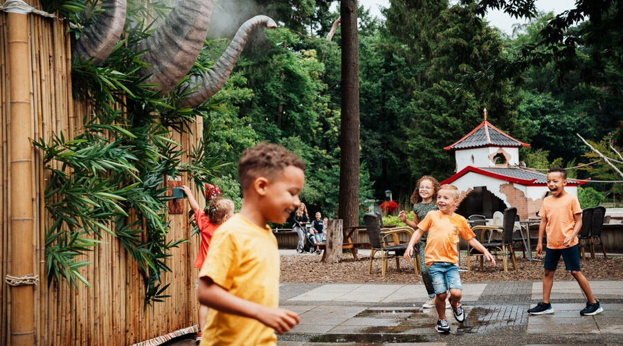 Tijdens de zomervakantie (8 juli t/m 3 september) beleven kinderen een spetterend dagje uit in DierenPark Amersfoort. Terwijl de zon schijnt, ontdekken bezoekers dé dierentuin voor kinderen. In de schaduw van de bomen klimmen en klauteren kinderen onder, boven en tussen de dieren. “Dit jaar beleven bezoekers een ‘koele’ zomer tussen de dieren”, benadrukt Hylke. “Kinderen ontdekken de dierenwereld én genieten van een heleboel waterpret.” DierenPark Amersfoort gaat waterverspilling tegen door water ondergronds op te vangen en terug te geven aan de natuur. Bezoekers beleven een spetterend dagje uit in het bos van DierenPark Amersfoort.
