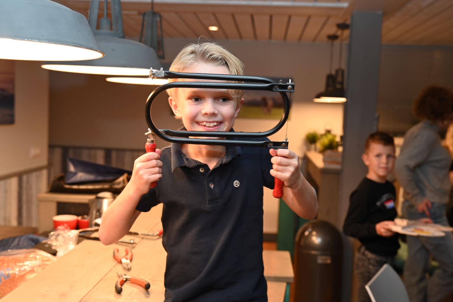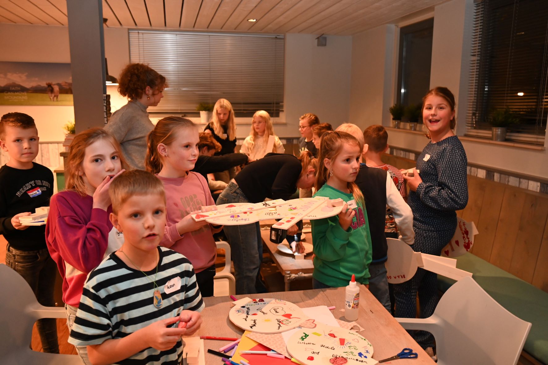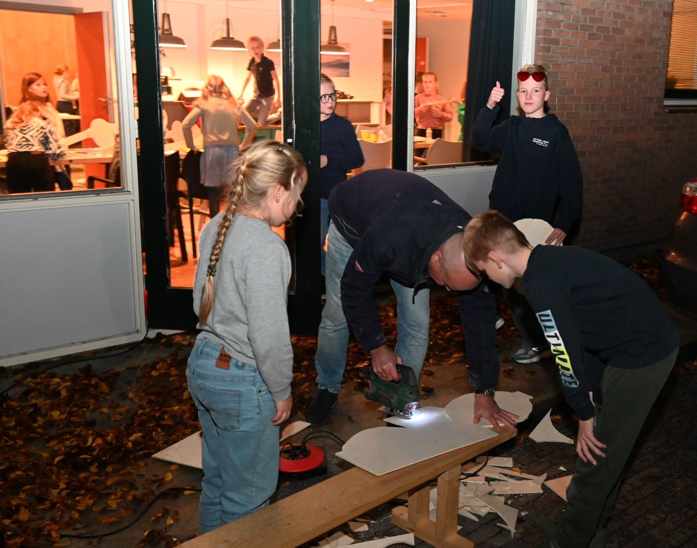 De nieuwe opzet van Kids4life in Hoevelaken lijkt aan te slaan. In plaats van een dagprogramma werd dit jaar gekozen voor een middag- en avondevenement bij de Dorpskerk. Dat avondprogramma werd veel beter bezocht dan het middagprogramma Hoevelaken voor de jongere kinderen. Het seizoen startte met het thema: ‘Ik zie jou!’. Van hout werd grote brillen gefiguurzaagd. Nadien konden de kinderen genieten van een kampvuur. Ook waren er spelletjes, creatieve bezigheden, zingen en een Bijbelverhaal. Foto Kees van den Heuvel