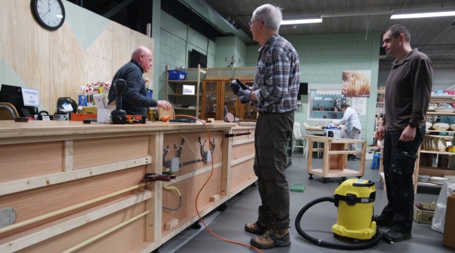 Drie dagen lang zijn zes vrijwilligers druk bezig geweest met alle voorjaars, zomerkleding en schoenen voor dames – heren en kinderen in de winkel te krijgen. Die kleding wordt in de wintermaanden gebracht. Het wordt op de tweede verdieping uitgezocht en als het nodig is ook nog gewassen. De mannen hebben tientallen dozen naar beneden gebracht en de dames hebben daarna binnen drie dagen alles gepresenteerd en opgehangen. Als het nodig was hebben ze het ook nog gestreken. Een stagiaire van Accent Praktijkonderwijs heeft hier ook aan meegeholpen. Het assortiment is reuze. Prachtige kleding en schoenen voor het hele gezin. Verder is de oude toonbank eruit gehaald.. Openingstijden woensdag t/m zaterdag van 10.00 tot 15.00u . foto’s Harry Koelewijn