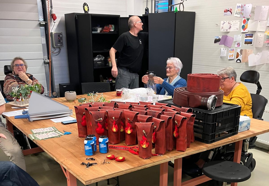 De brandweervrijwilligers van post Nijkerk zijn verrast met een bijzonder cadeau dat is gemaakt binnen een sociaal project van Niewark. In dit project werken mensen met een afstand tot de arbeidsmarkt, ondersteund door vrijwilligers, aan het maken van creatieve producten.