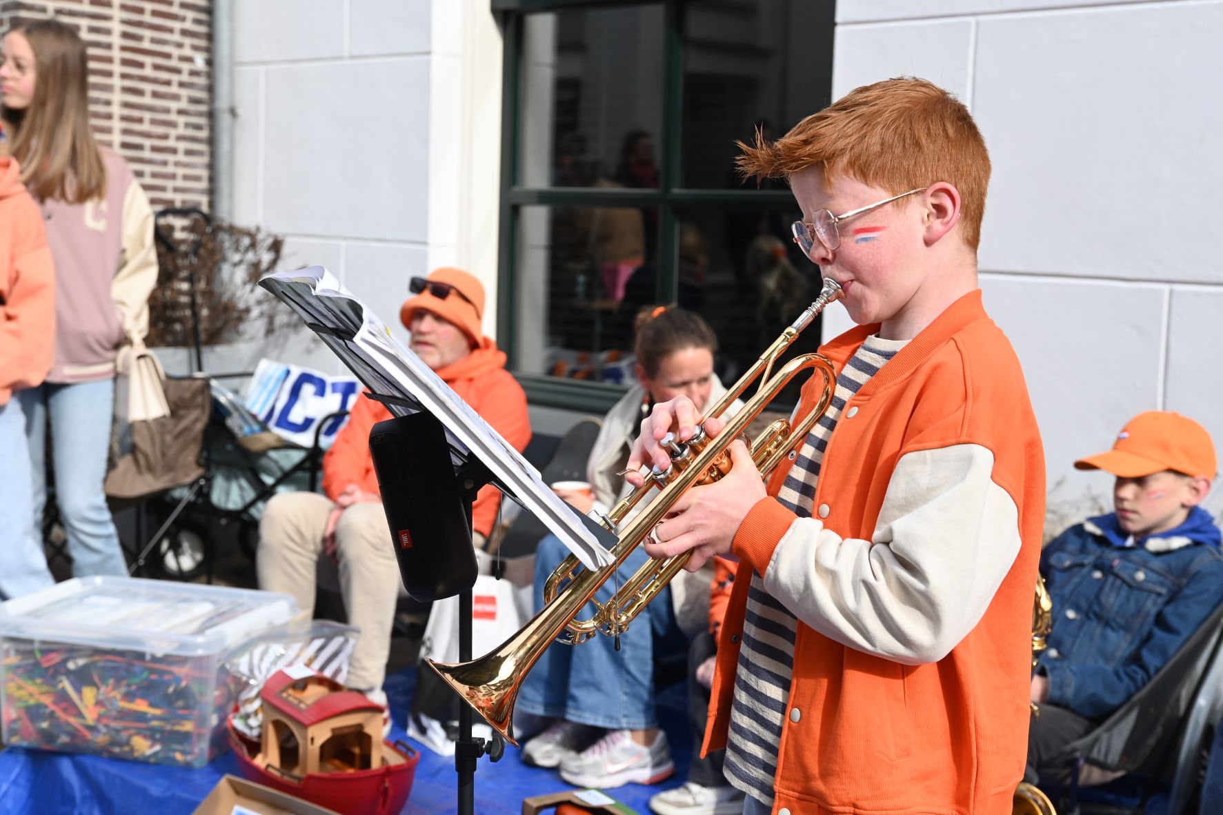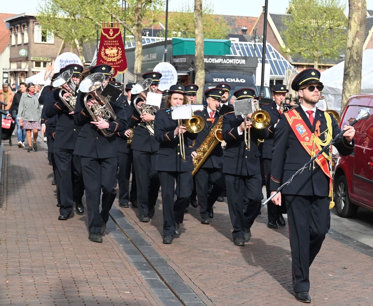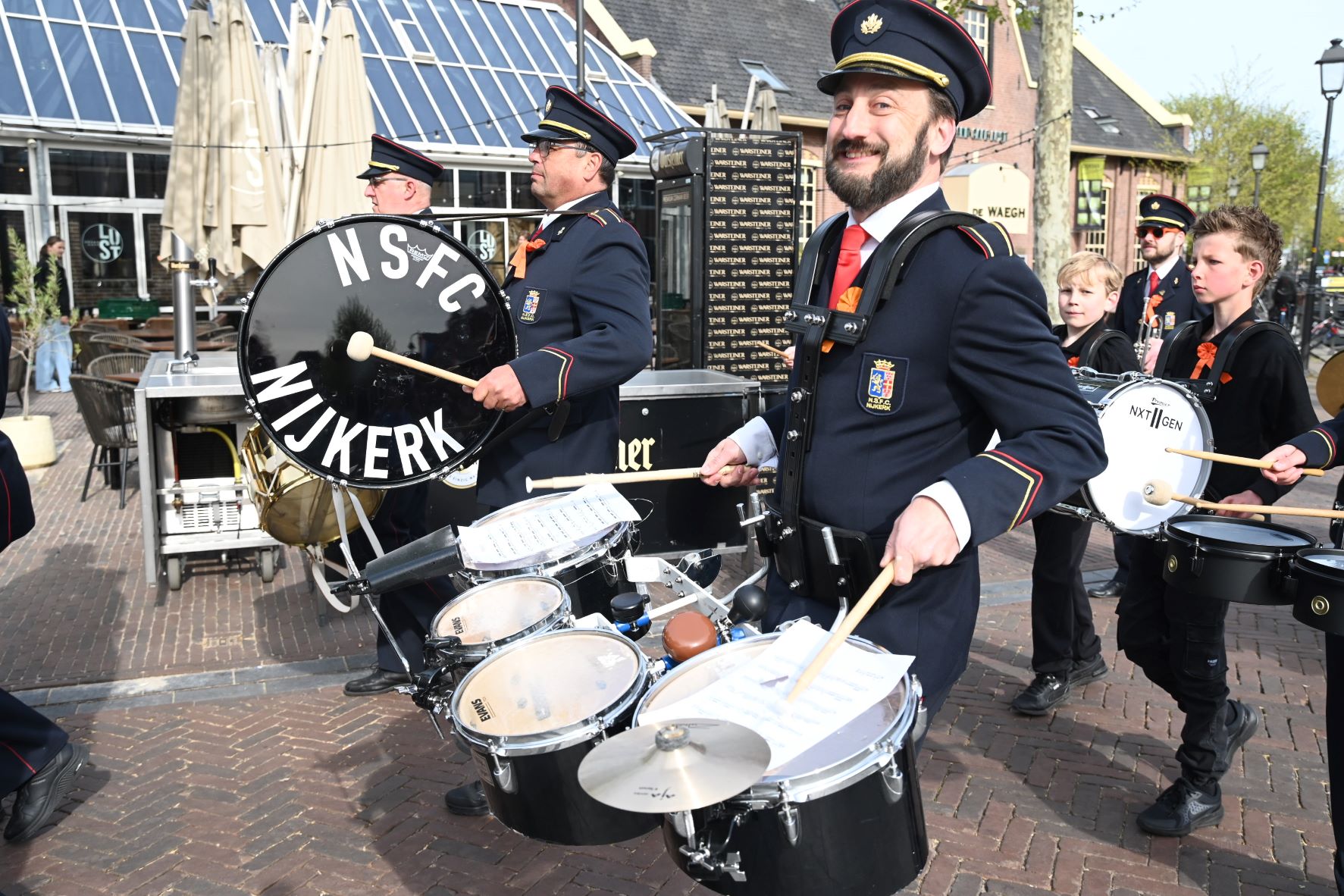De straten van Nijkerk veranderden maandagochtend 27 april al in alle vroegte in één groot, gezellig marktlint. De editie van Koningsdag 2026 gaat de boeken in als eentje waarbij niet alle evenementen aanwezig waren maar wel druk was en waarbij de traditionele matjesmarkt als hoogtepunt diende. Terwijl de eerste zonnestralen de stad verlichtten, waren de straten al nagenoeg volledig bezaaid met honderden verkoopstands. Van antiek en curiosa tot aan het speelgoed van de jongste ondernemers; het aanbod was even divers als de menigte die zich al vroeg door de binnenstad bewoog op zoek naar dat ene verborgen pareltje. Een iconisch moment vond plaats rond de klok van kwart over negen, toen het Nijkerks Stedelijk Fanfare Corps (NSFC) zijn opwachting maakte. Met feestelijke marsmuziek baande het korps zich een weg door de dichte menigte in de winkelstraten. Bezoekers en standhouders maakten enthousiast plaats voor de muzikanten, die onderweg waren naar het officiële gedeelte van de dag, de aubade op het Molenplein. Foto Kees van den Heuvel
