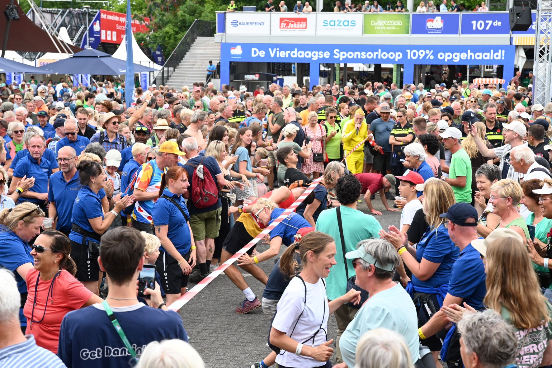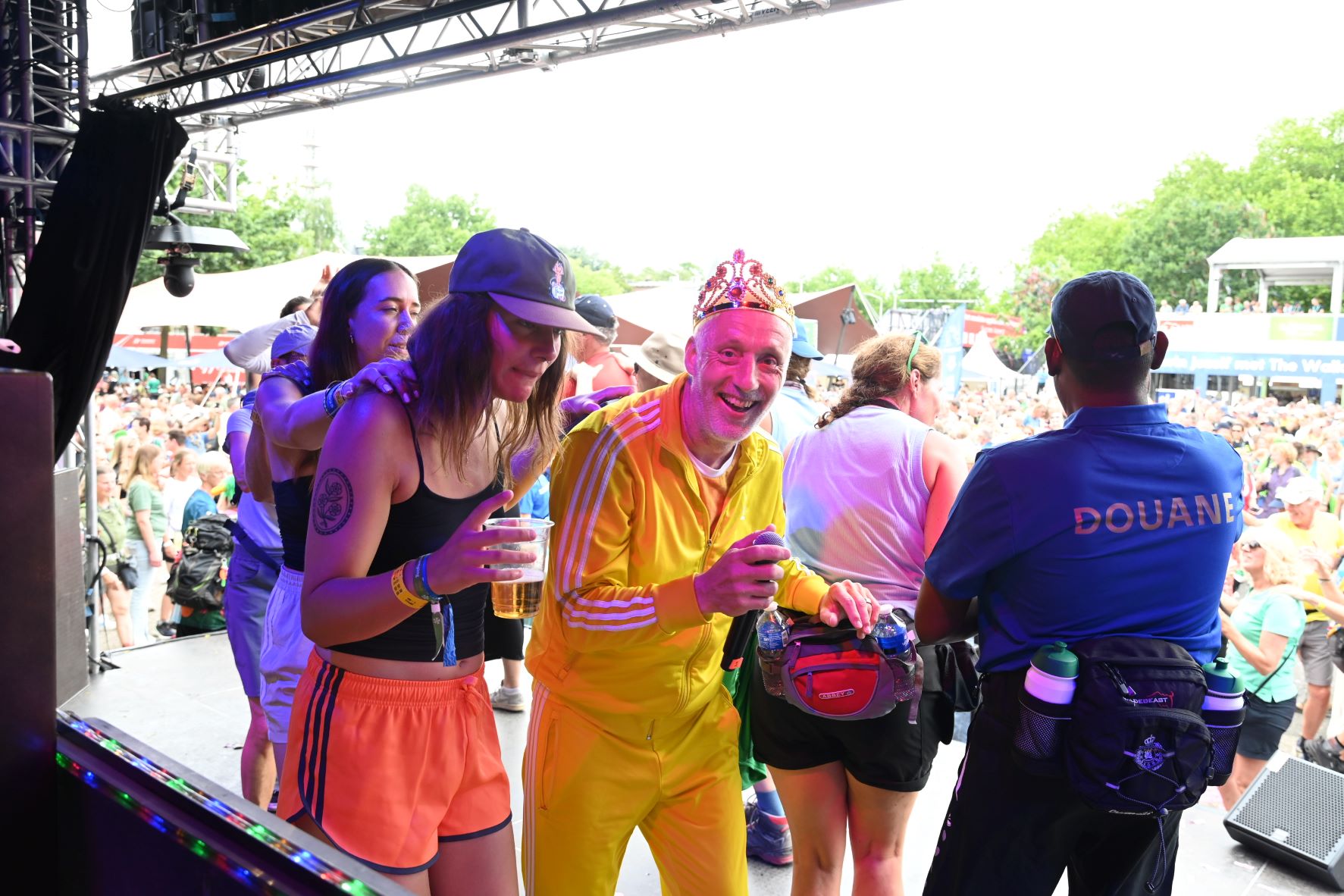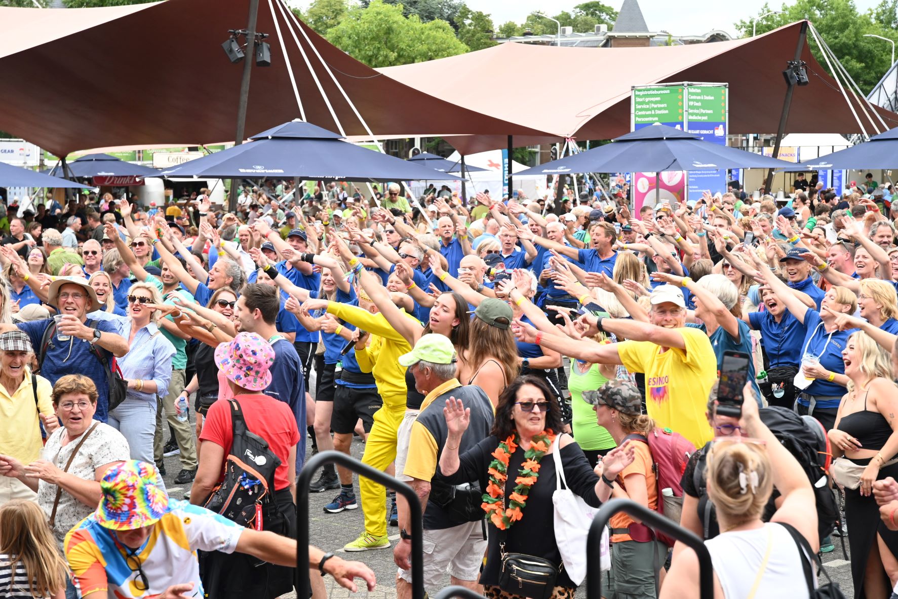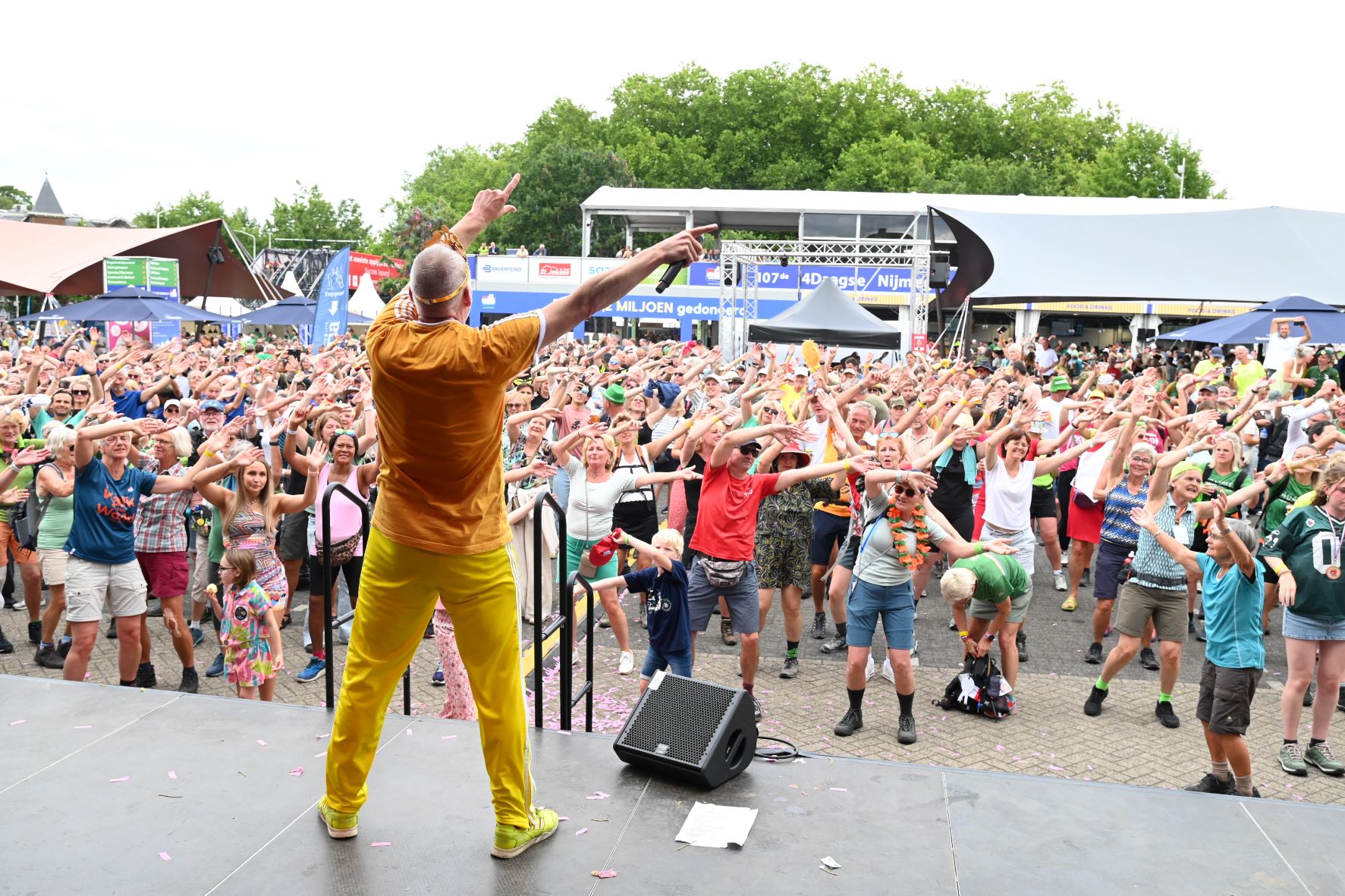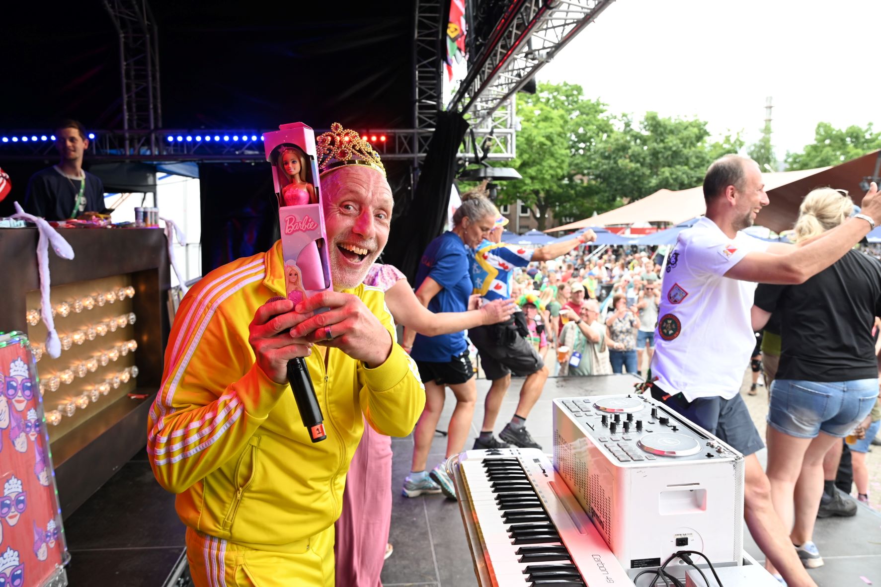 De Nijmeegse Vierdaagse heeft dit jaar een grote Nijkerkse inbreng. Het Nijkerkse platenlabel RoodHitBlauw van Ronald Visch levert een groot deel van de artiesten en de presentatie op de wedren (start en finishplek) is in handen van Marja Willems. Samen met DJ Wipneus en Pim ging Nijmegen donderdag 17 juli helemaal uit zijn dak. Het lukte hen zelfs om het gehele politiekorps op het podium te lokken. Het is elke dag groot feest, maar vrijdag wordt onwaarschijnlijk het hoofdpunt van de week met de Via Gladiola. Behalve Wipneus en Pim was de Veense Courant ook aanwezig tijdens een optreden van zangeres Senna en Mike Versteeg. Diezelfde Versteeg (eerste foto hieronder) is vrijdagavond 18 juli ook te zien op het Plein in Nijkerk tijdens de eerste editie van een reeks Pleinconcerten. Foto en bron Kees van den Heuvel