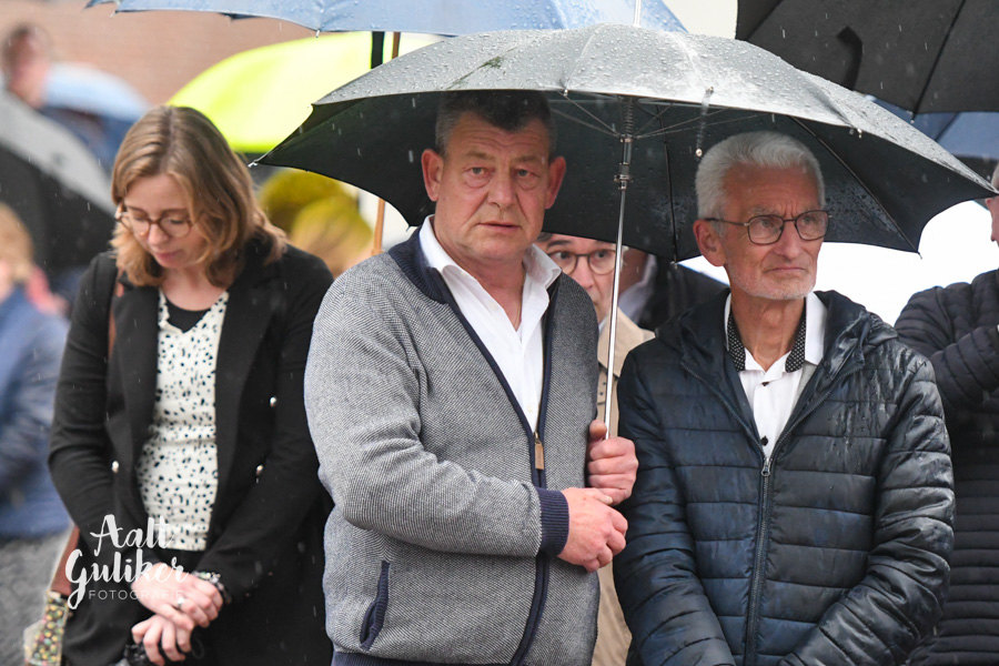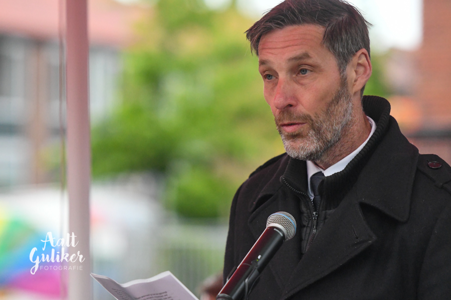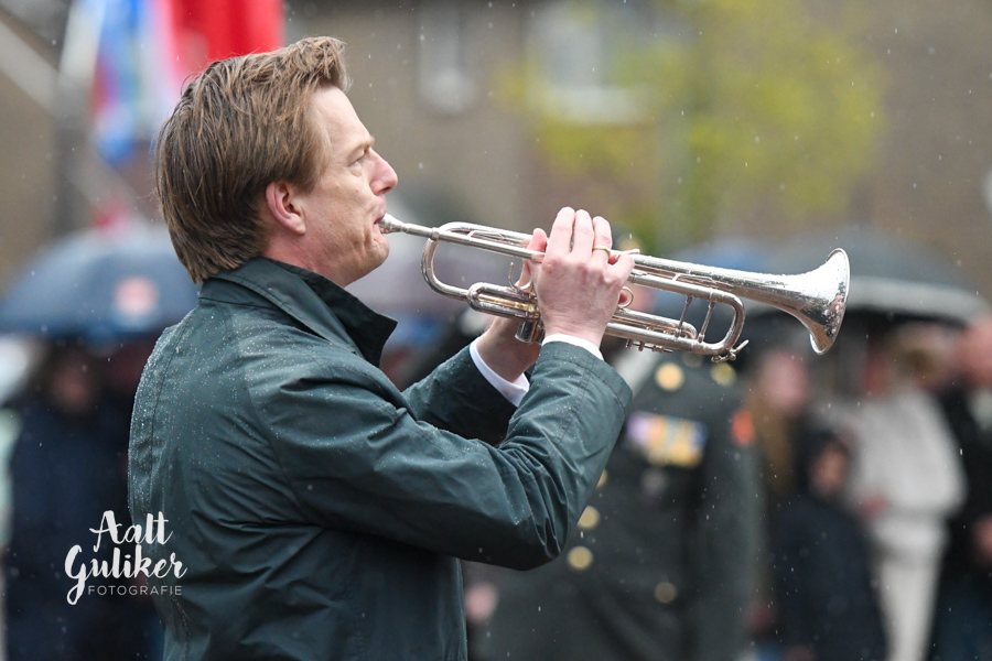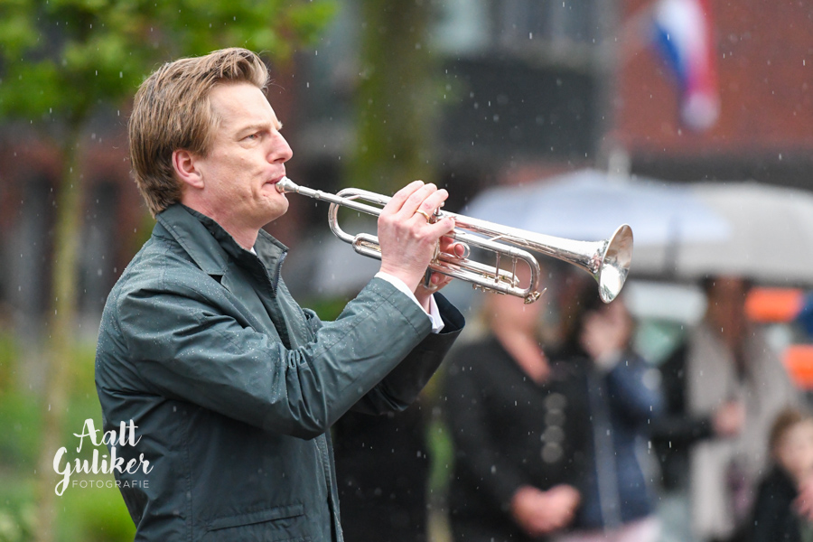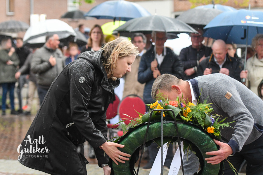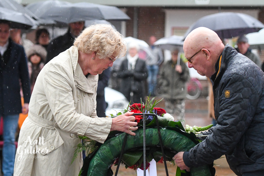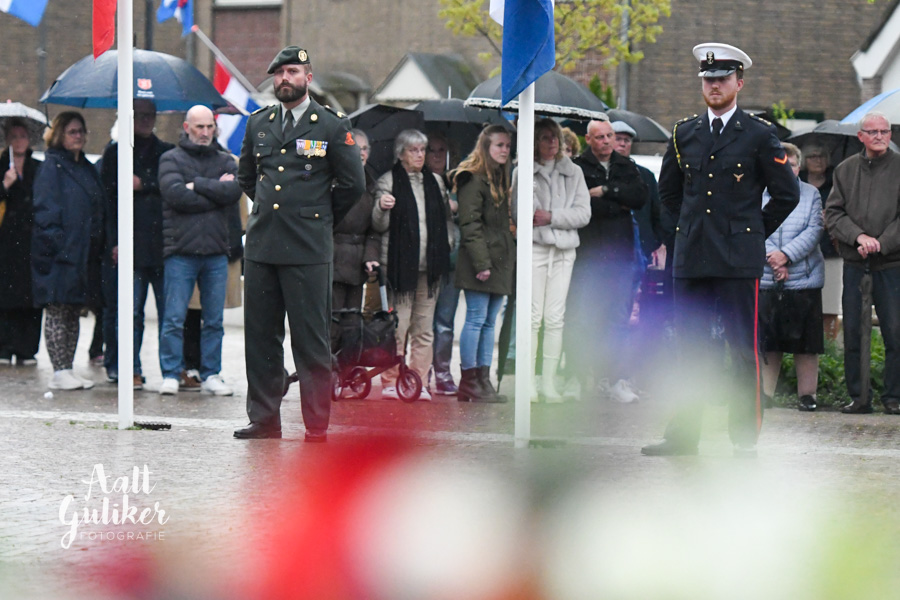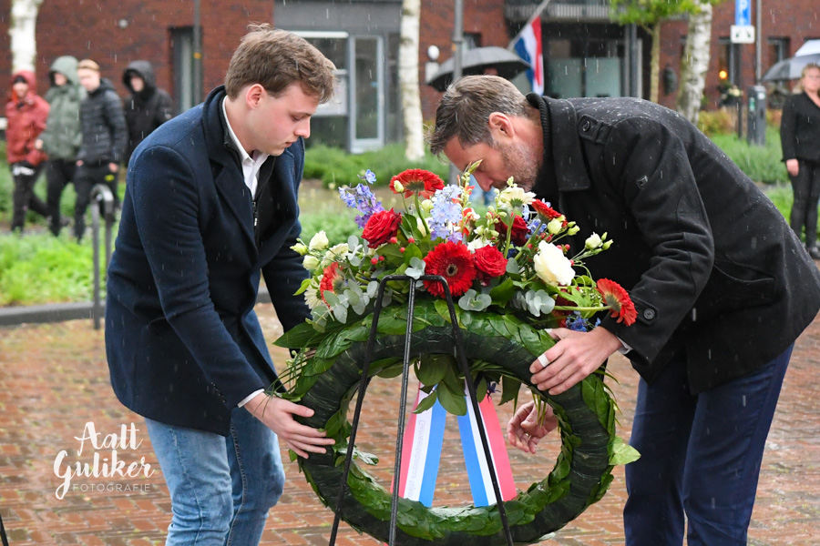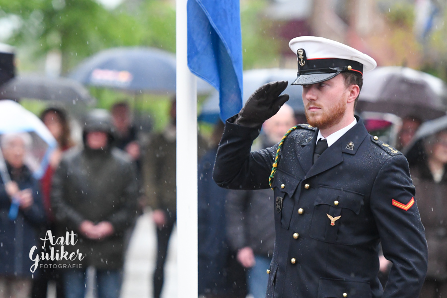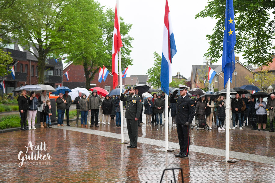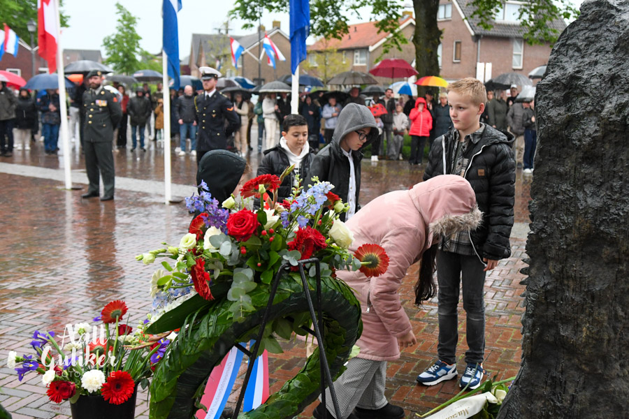 Op een regenachtig dorpsplein in Nijkerkerveen zijn zaterdagavond oorlogsslachtoffers herdacht tijdens dodenherdenking.
