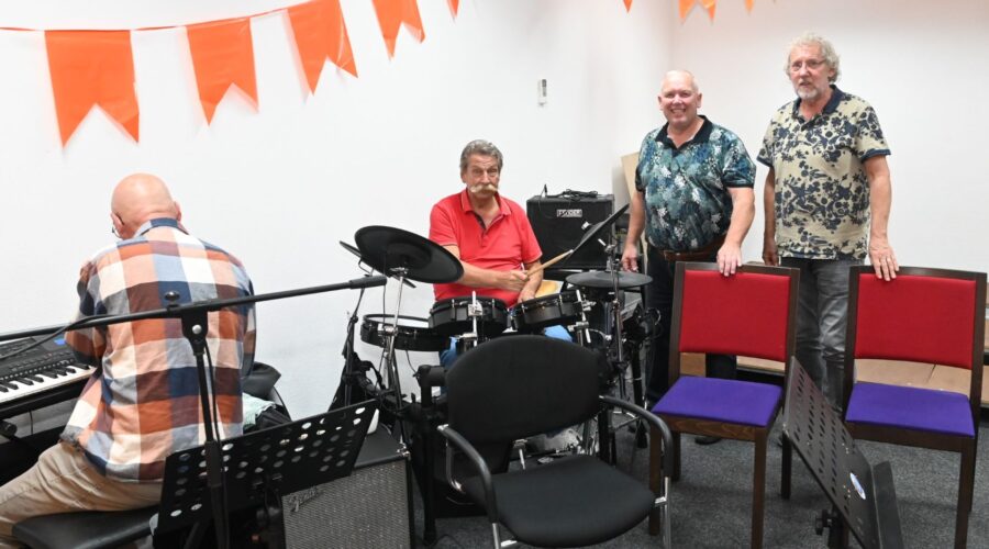 Het zeemanskoor Nijkerks Welvaren heeft de beschikking over een nieuw onderkomen waar ze kunnen oefenen. Het zeemanskoor heeft een prachtige stek gekregen op de Gezellenstraat bij Lagemaat Beheer. Ze hebben er zelfs een eigen kantine. Dinsdagavond 10 oktober werd er voor de eerste keer geoefend. Het Zeemanskoor zat voorheen in een pand aan de Melkrijder. Foto Kees van den Heuvel