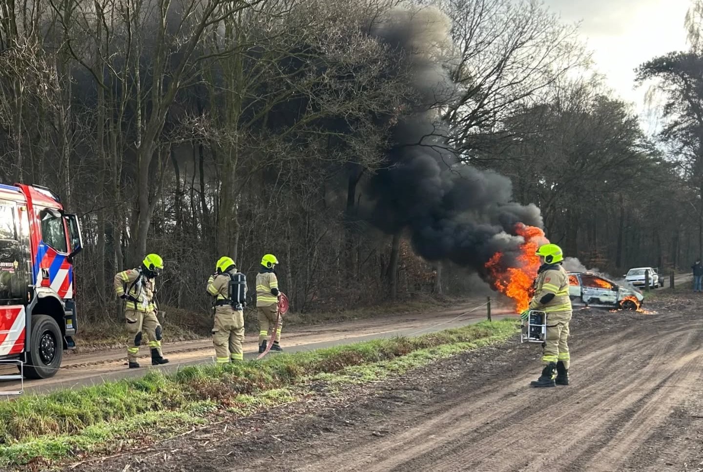 Een crossauto heeft woensdagmorgen 31 december op de Hogesteeg (boven de Beulencampersteeg) vlam gevat. De bestuurder wist op tijd te ontkomen. Van de auto is niets meer over. De inzet van de Nijkerkse brandweer was nodig om het voertuig af te blussen. De eigenaar van de auto moest zelf zorgdragen over de afvoer van het wrak. Foto brandweer Nijkerk