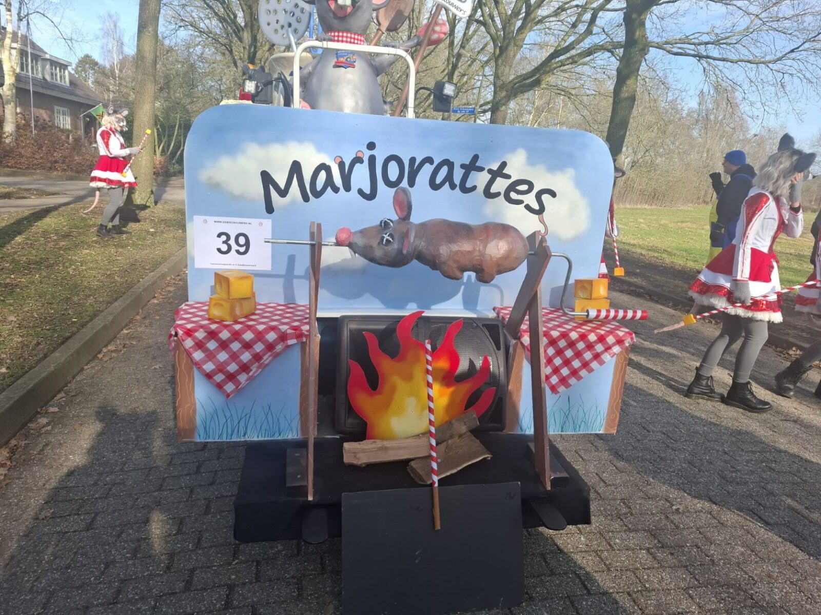 De Nijkerkse carnavalsvereniging De Doordouwers heeft de eerste prijs bemachtigd tijdens de carnavalsoptocht in Hoogland. Die prestatie leverden ze in de categorie Kleine Wagens. De winnaars werden bekendgemaakt in de residentie van C.S. de Eemschuumers in Hoogland. Zondag 15 februari stond de wagen van de Nijkerkers helemaal in het teken van ratten. Er stond ratatouille op het menu, ze dronken Ratller bier en de groep danste op Ratje voor de sfeer. De dames waren verkleed als Marjorattes (Majorettes). bron Kees van den Heuvel