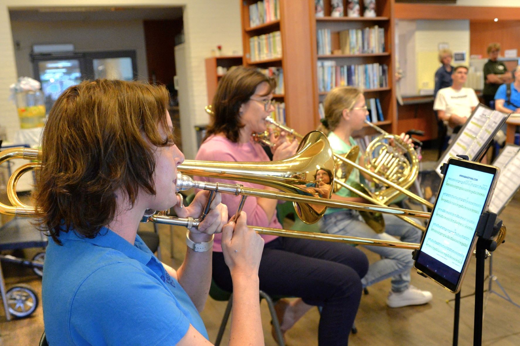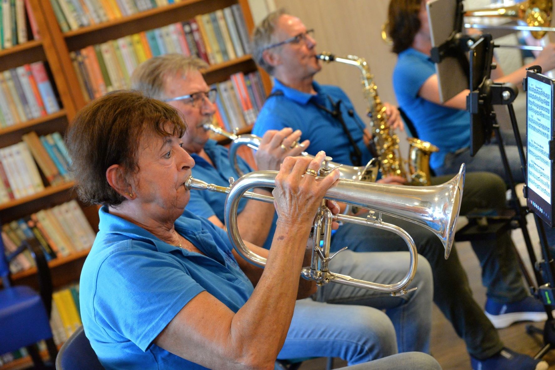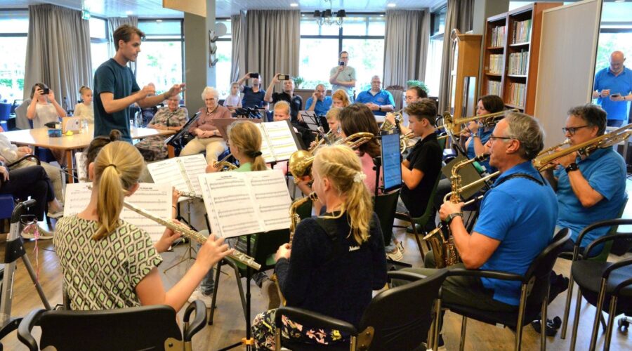 Dinsdagavond 15 juli was restaurant De Heert van Sint Jozef tot de laatste plek gevuld met bewoners en familie om te luisteren naar een muzikaal optreden van het Nijkerks Stedelijk Fanfare Corps (NSFC). Het opstaporkest, de jongste leden, opende het mini concert. Deze leerlingen zijn een jaar aan het lessen en spelen nu al samen een leuk stukje muziek. Daarna speelden ze ook nog een paar muzieknummers samen met het opleidingsorkest. Het Opleidingsorkest nam het daarna over en speelden een aantal mooie muziekwerken. Deze leerlingen bezitten al een muziekdiploma en spelen al op een hoger niveau. Na de jeugd was het de beurt aan het Koperensemble. Ze speelden bekende meezingers uit vroegere tijd. Ze sloten het concert af met de nummers, the Pink Panter en Second Walz . Het was bij elkaar een mooi optreden van NSFC. De bewoners hebben zichtbaar genoten en gaven aan het einde een daverend applaus. Foto en bron Harry Koelewijn