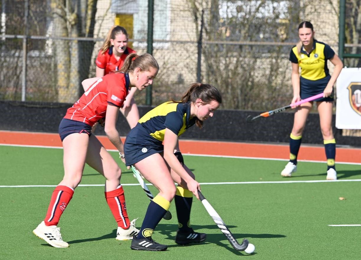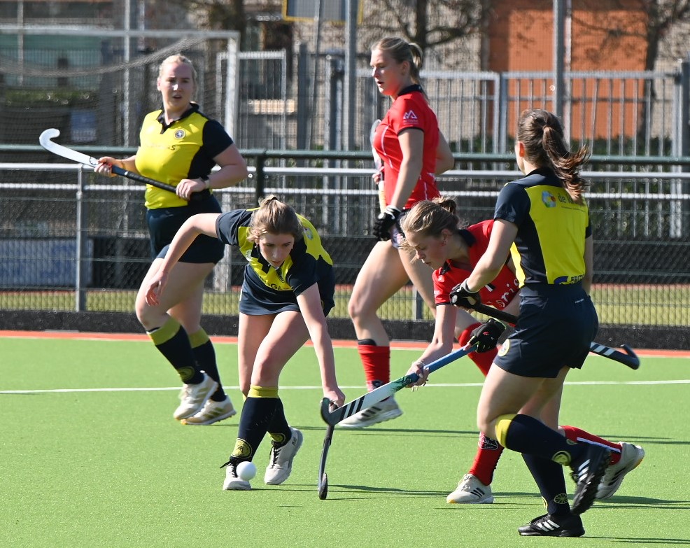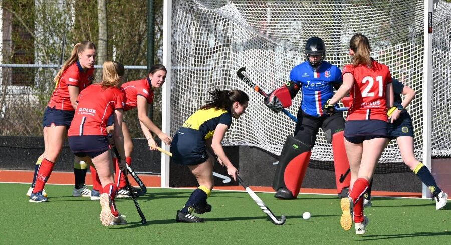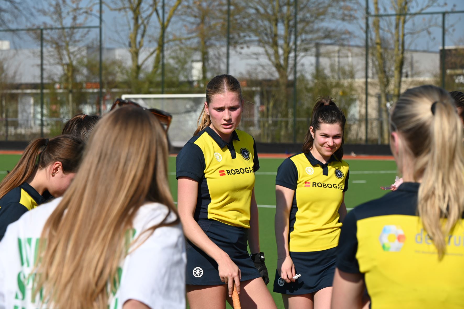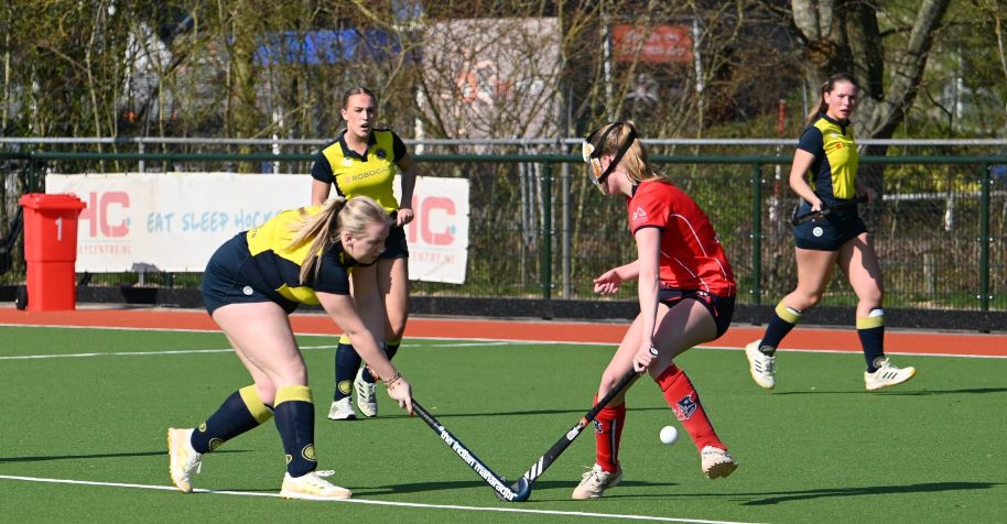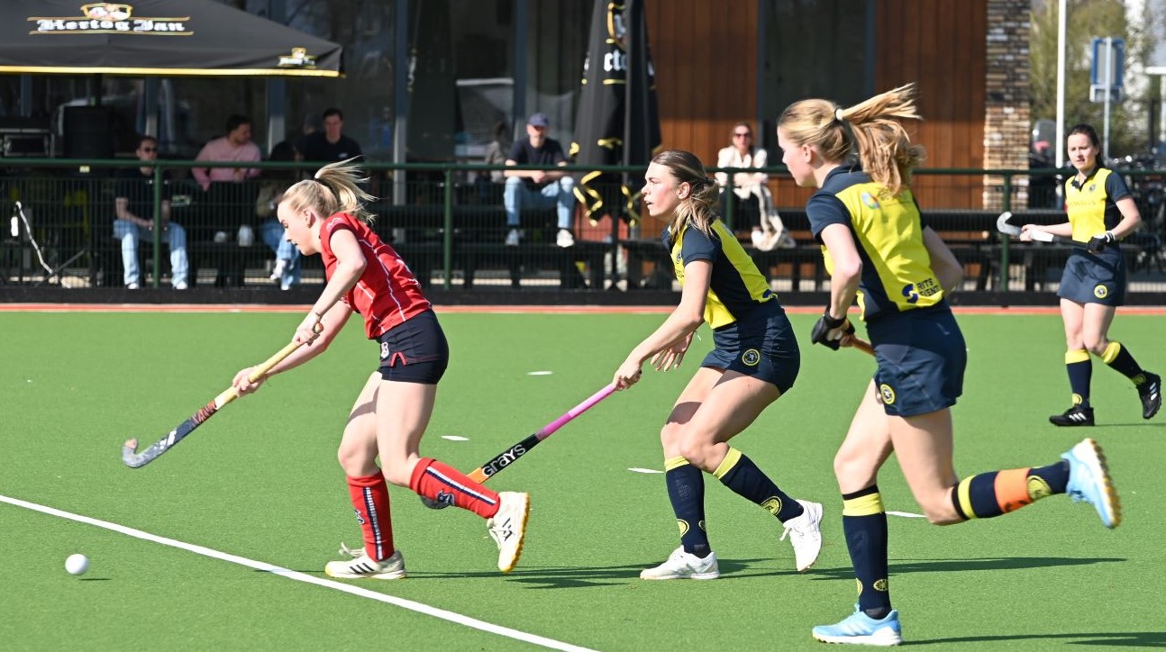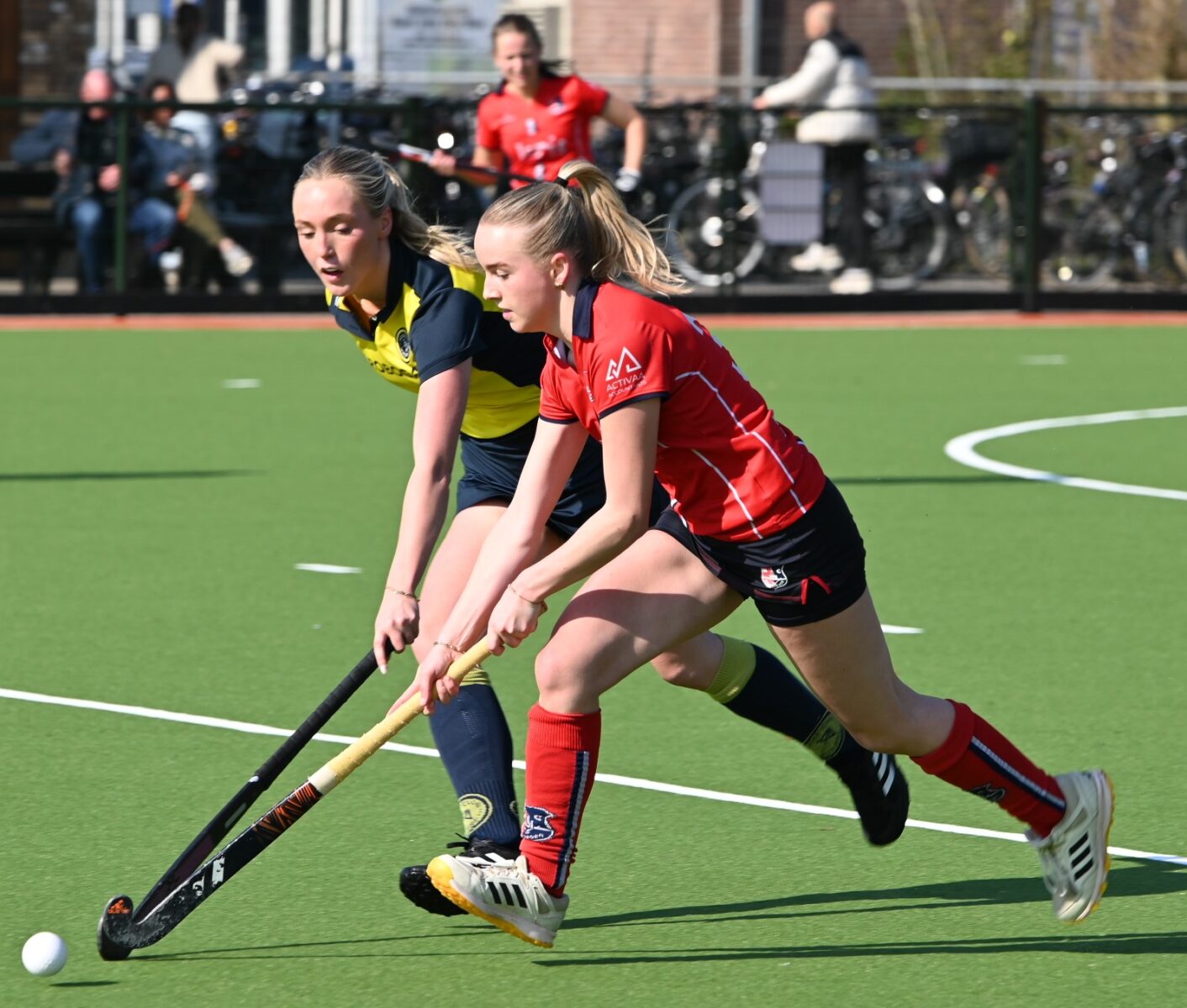 De dames van Hockeyclub Nijkerk onder 25 hebben hun eerste wedstrijd op het nieuwe hoofdveld op hun naam gezet. Onder een warm lentezonnetje werd met 2-0 gewonnen van IJsseloever. Die stand stond al na een eerste helft op het scorebord. Namens de hockeydames werd gescoord door Mirthe en Emma. Foto Kees van den Heuvel
