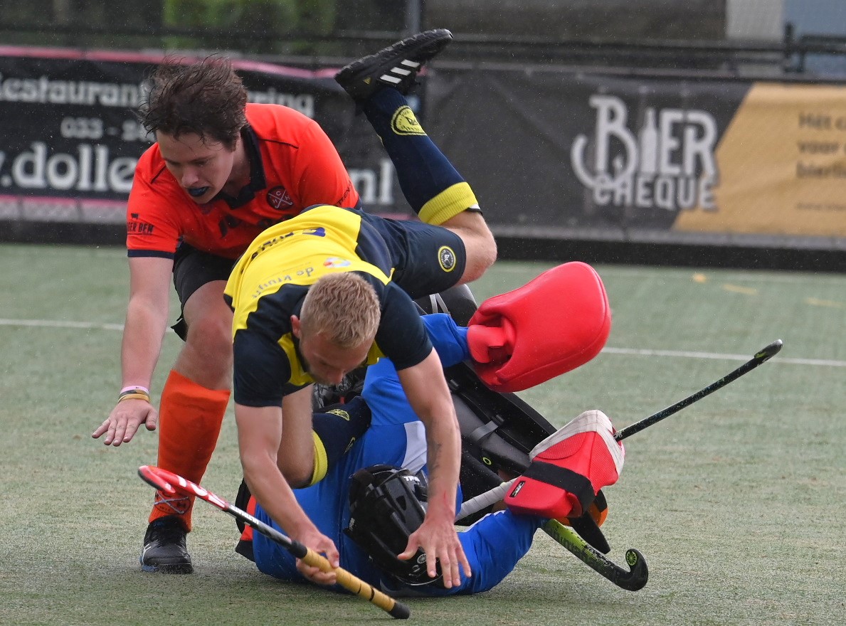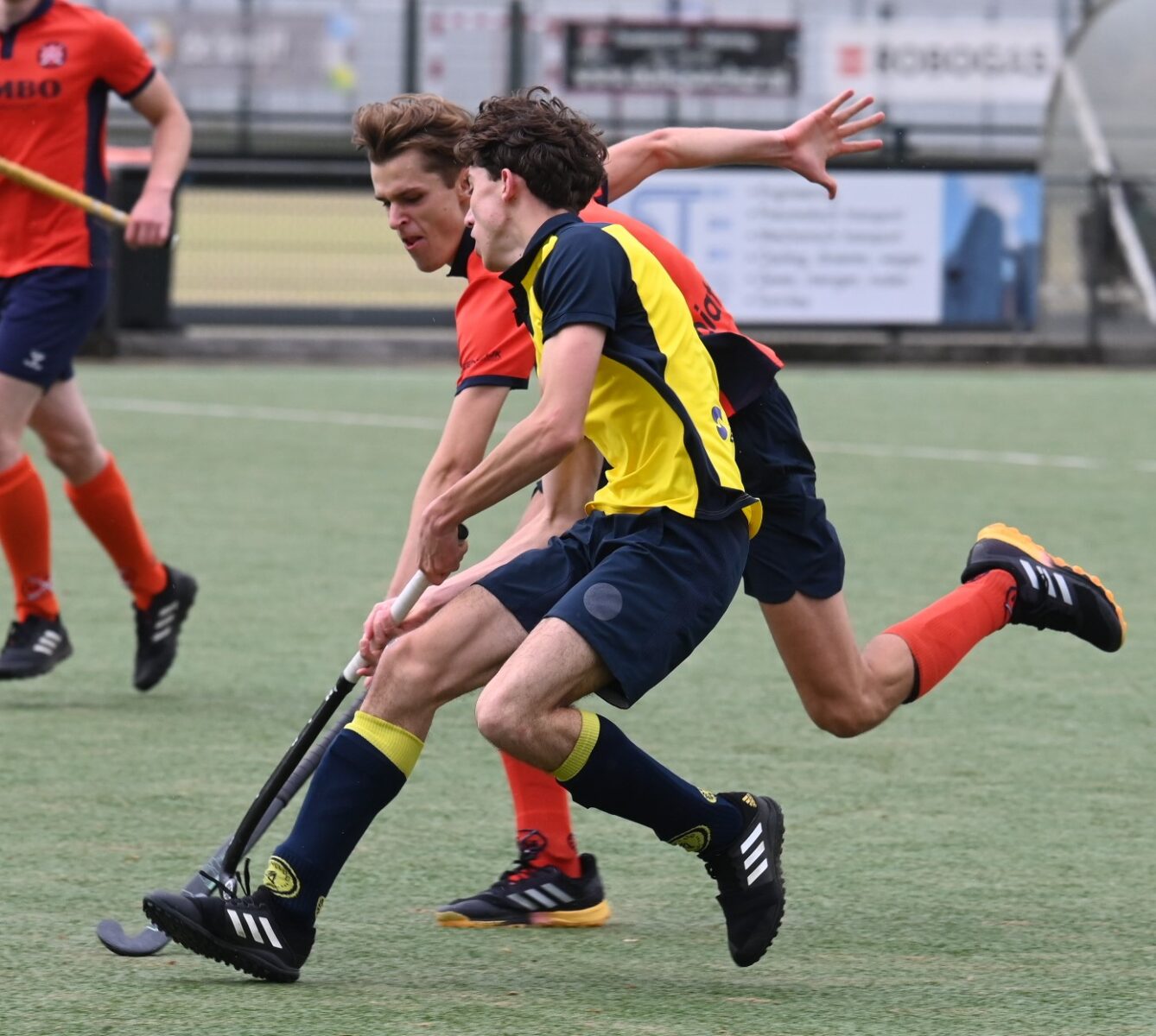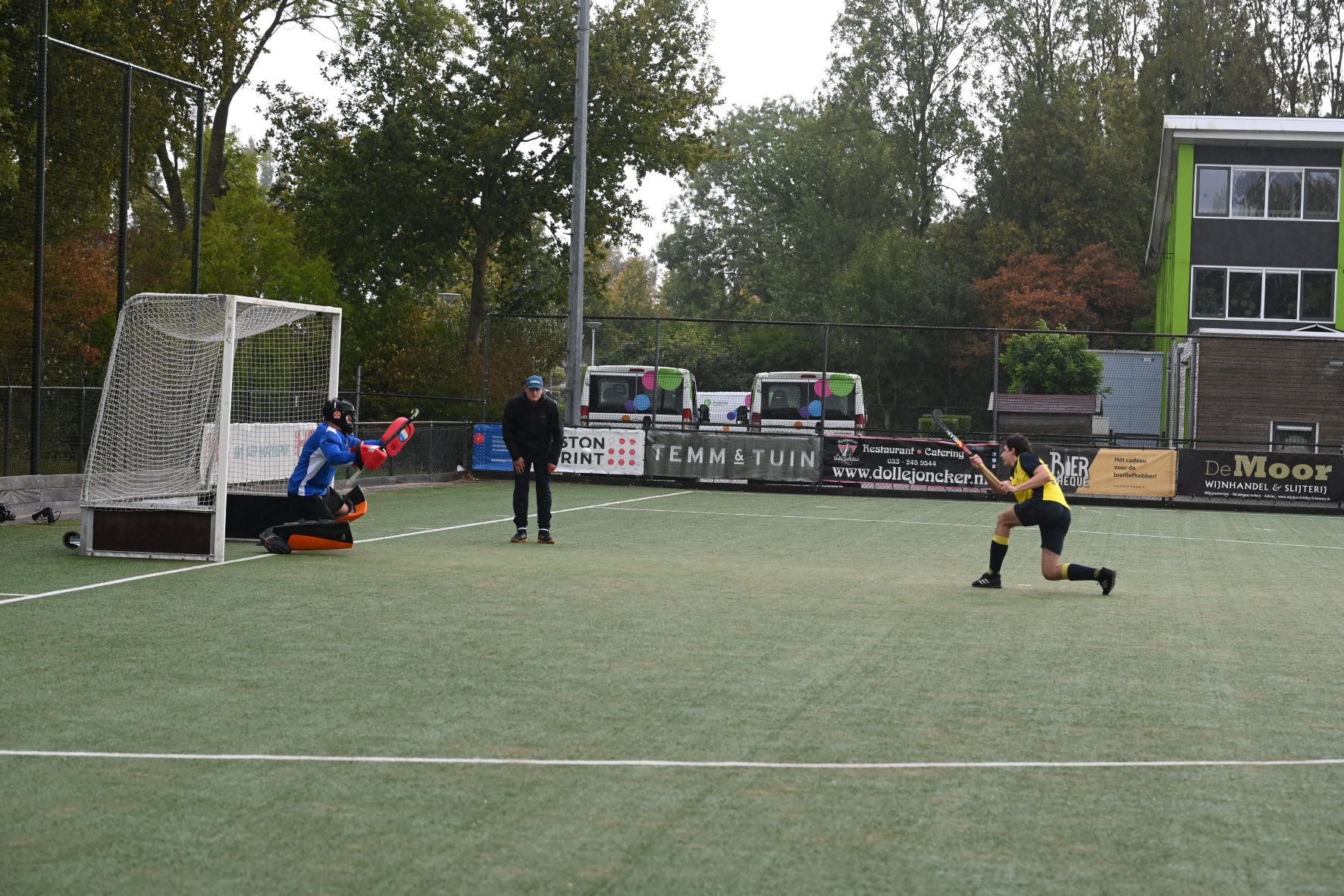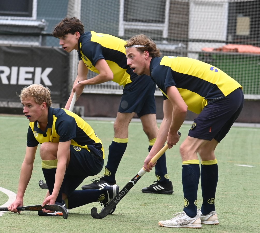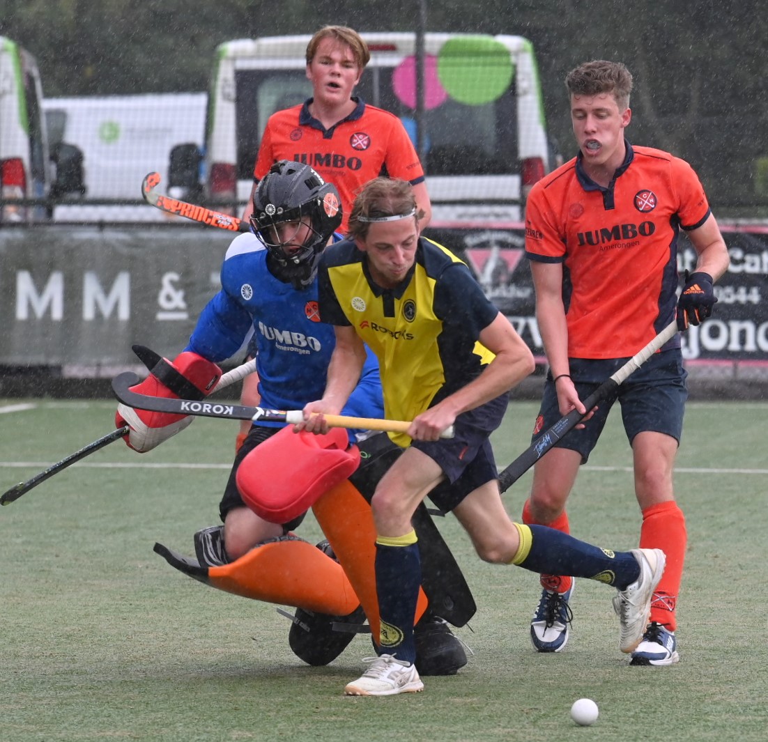 Ondanks het druilerige weer hebben de mannen van de Hockeyclub Nijkerk er zondag 5 oktober een feestje van gemaakt. Op het eigen sportcomplex wonnen de mannen met 7-1 van Ijsseloever. Even later overwon het herenteam onder 25 met overmacht de wedstrijd tegen Haaskamp. Het team uit Amerongen verloor in Nijkerk met 8-1. De goals namens de Nijkerkers werden gemaakt door Maurits, Tijn, Max en Gert. Ondertussen was er ook een cadeaupakket voor de scheidsrechters in verband met de week van de scheidsrechter. Foto Kees van den Heuvel