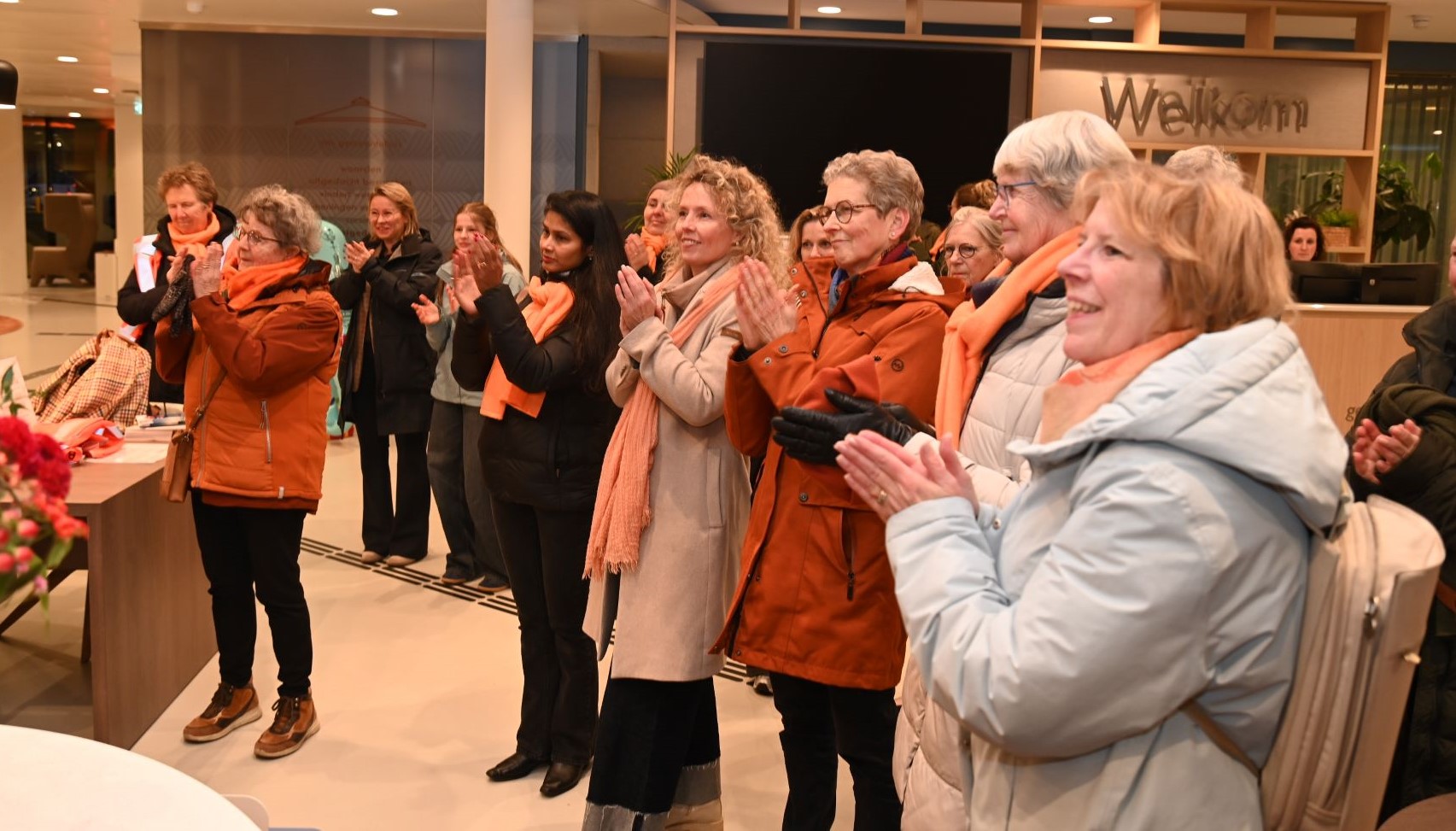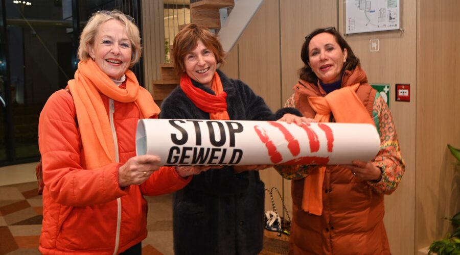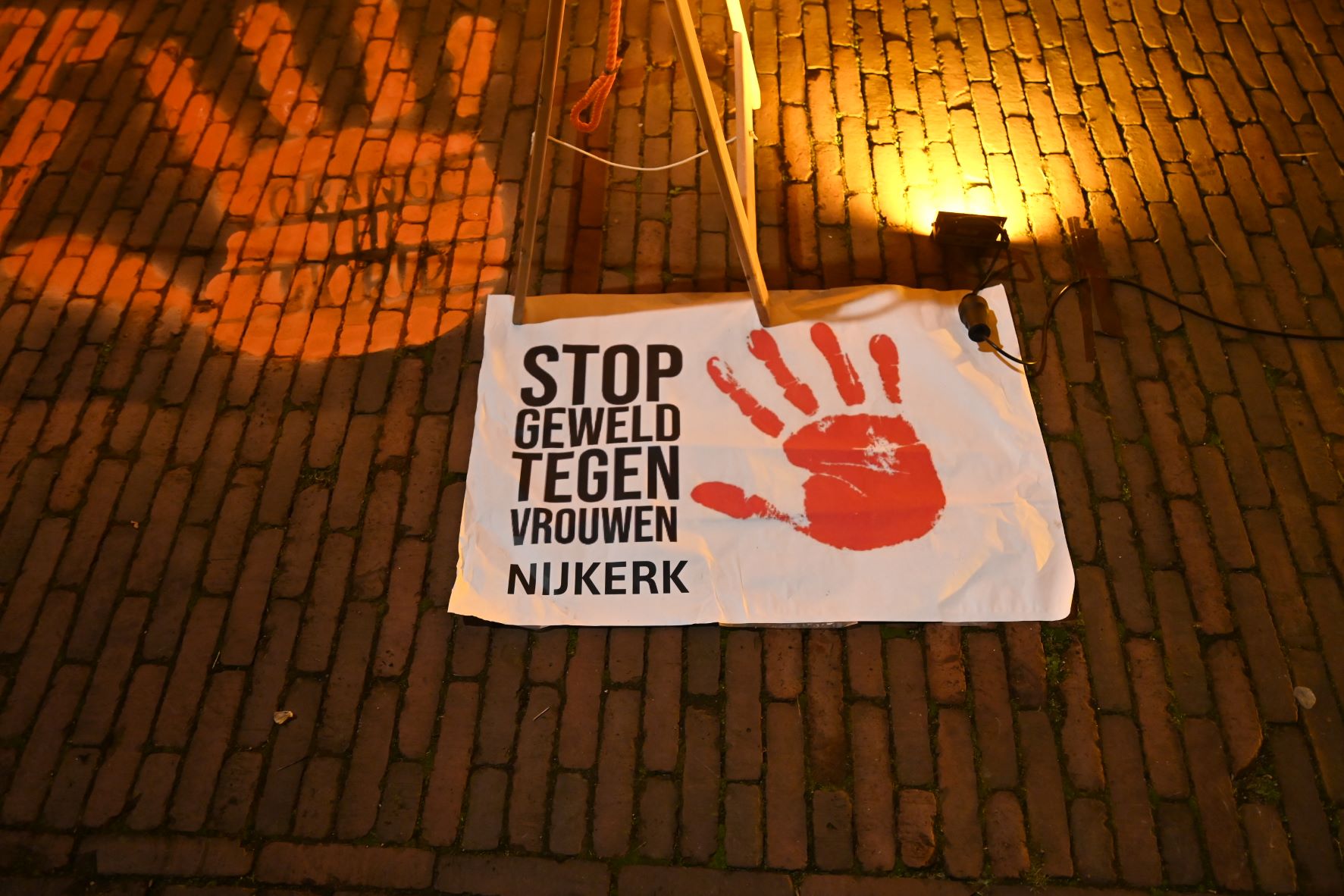 Met een mars van het Nijkerkse gemeentehuis richting het centrum van Nijkerk en Museum Nijkerk hebben bijna dertig Nijkerkse vrouwen een gebaar gemaakt om geweld tegen vrouwen tegen te gaan. Op het gemeentehuis kregen de initiatiefneemsters van wethouder Rohen een mal aangeboden, waarmee op straat een hand werd geschilderd. Deze hand staat voor de wereldwijde campagne Orange the World, waarmee aandacht wordt gevraagd voor geweld tegen meisjes en vrouwen. De beschildering vond plaats bij Museum Nijkerk. Vervolgens liep nog een groot aantal vrouwen door naar het Plein in Nijkerk waar een mandarijn kon worden genuttigd. . Op verschillende manieren wordt de komende tijd in de gemeente Nijkerk stil gestaan bij Orange the World. Foto Kees van den Heuvel
