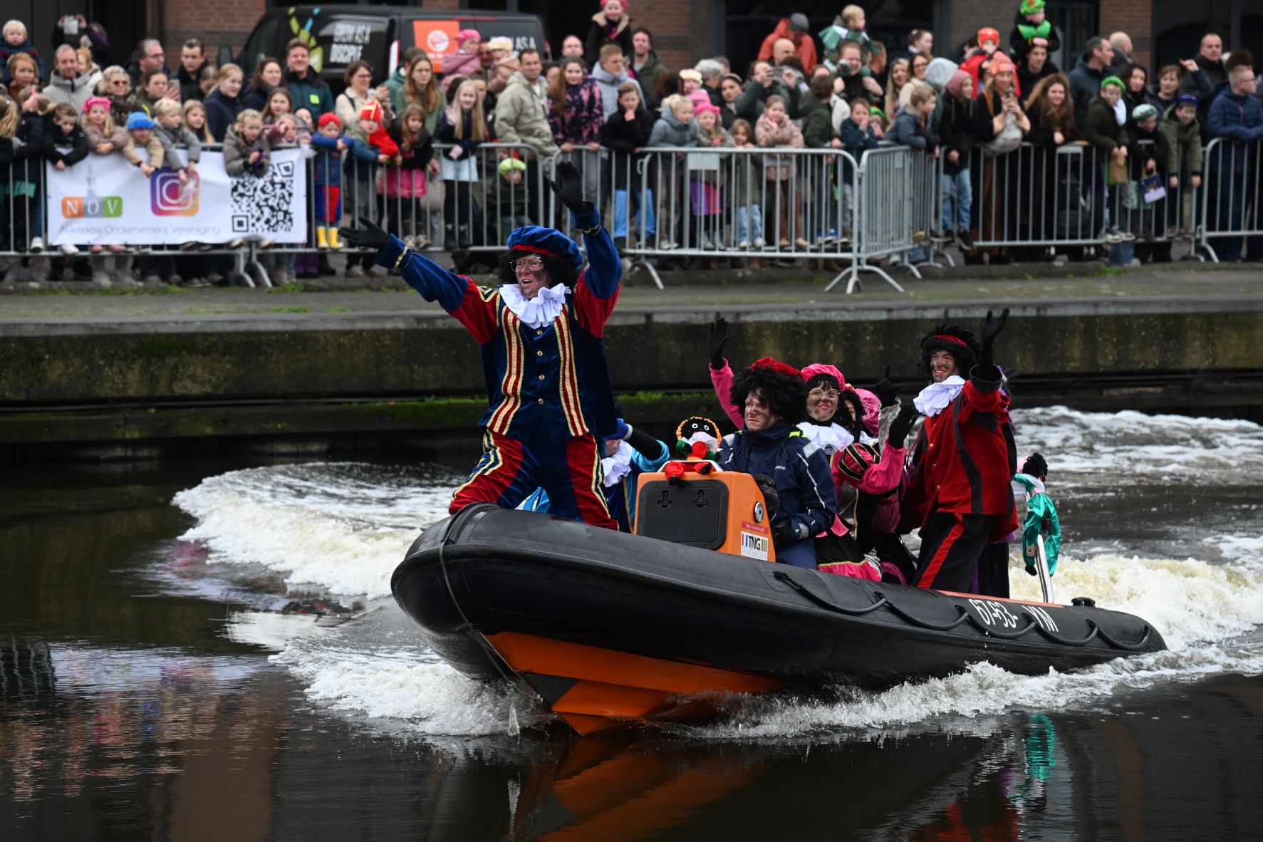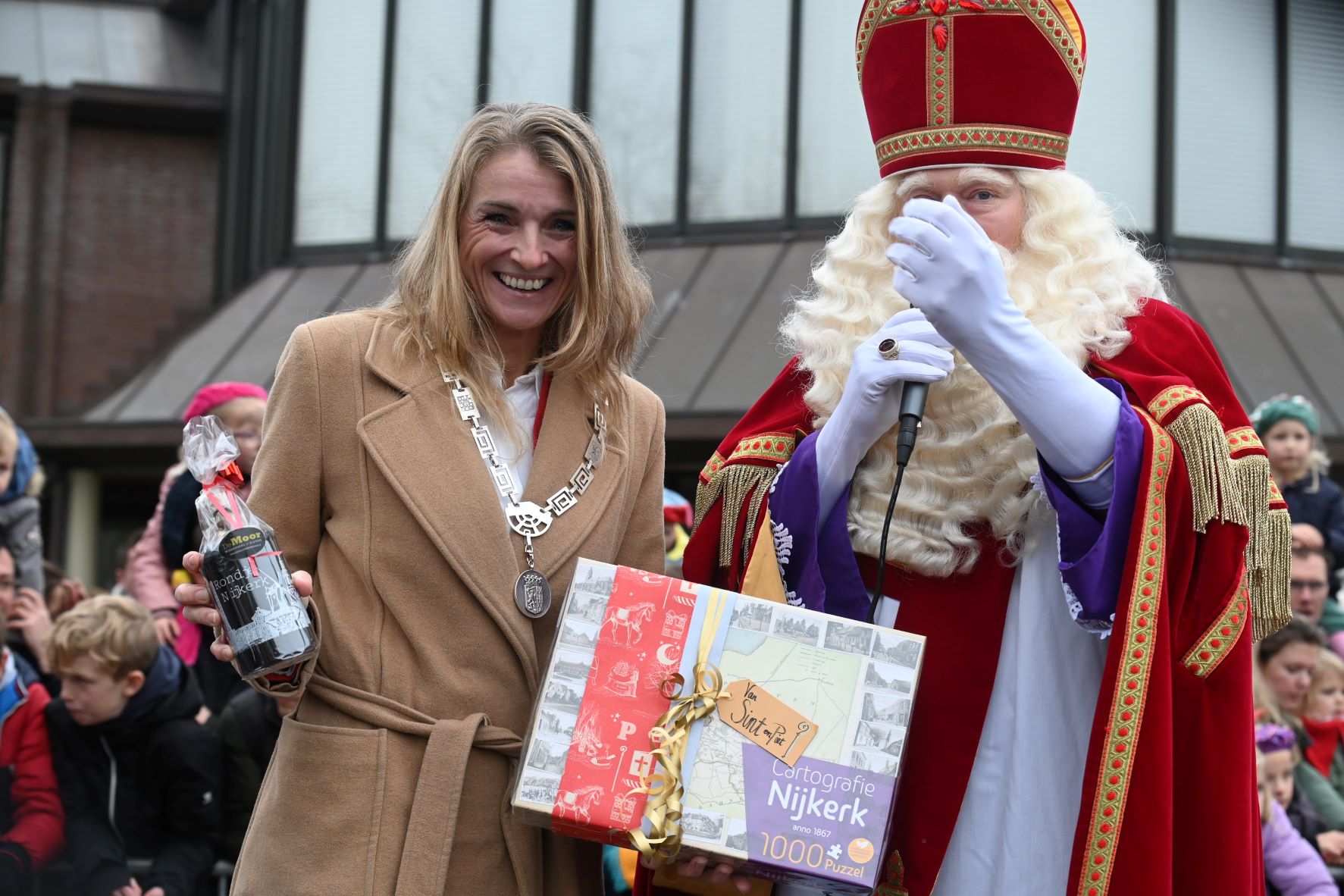 Wat was het zaterdagmiddag 15 november weer een spektakel bij de intocht van Sinterklaas in Nijkerk. Nog nooit hebben er zoveel boten deelgenomen. Het duurde eerst nog wel even voordat de pakjesboot arriveerde. Eerst waren er stunts van de jetski-Piet, daarna volgde de boot met de Badabounce-pieten. Die gingen het massaal opgekomen publiek opwarmen met een dansje. De fanfare-pieten die weer op een andere boot zaten, zorgden voor een vrolijke noot. Ook was er een boot uit Spanje, maar ook daar was Sinterklaas niet te bekennen. Pas veel later arriveerde de pakjesboot alsnog. Sinterklaas had zich laten leiden door het licht van de Grote Toren, de mooiste van Nederland. Op de wal werd Sinterklaas voor de eerste keer in haar leven verwelkomd door burgemeester Tinet de Jonge. Omdat dit een speciaal moment was ontving de burgemeester uit handen van de Goedheiligman een flesje schnaps en een cartografiepuzzel van de gemeente Nijkerk. Vervolgens was het tijd om het paard Ozosnel te bestijgen en maakte Sinterklaas een rondgang door de binnenstad van Nijkerk. Het was een zeer geslaagde eerste editie van de stichting S.I.N.T. Foto Kees van den Heuvel