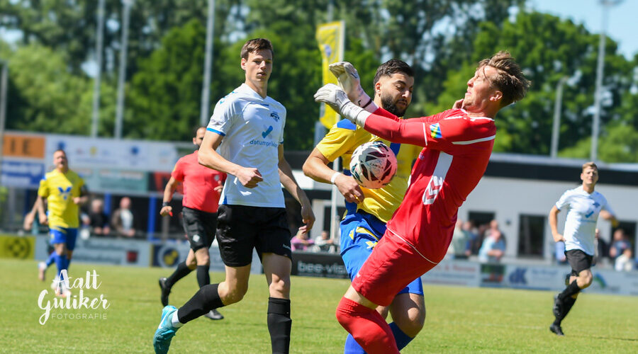 NSC Nijkerk lijkt te kunnen worden behouden voor een avontuur in de tweede klasse. Er werd zaterdag 17 mei verdiend gewonnen van vv Zeewolde (3-1). Achtervolger Hooglanderveen zal het heel moeilijk krijgen om de Nijkerkers te achterhalen. Dan moet Hooglanderveen én winnen én ook nog met een groot aantal doelpunten, aangezien NSC Nijkerk een veel beter doelsaldo heeft. Alle goals bij de Nijkerkers werden gemaakt door Abdul Samet Karaman die een hattrick maakte. Zeewolde, dat veel te laat in Nijkerk arriveerde vanwege een monsterlijk lange file, maakte In de slotfase nog een aansluitingstreffer. Tekst: Kees van den Heuvel.
