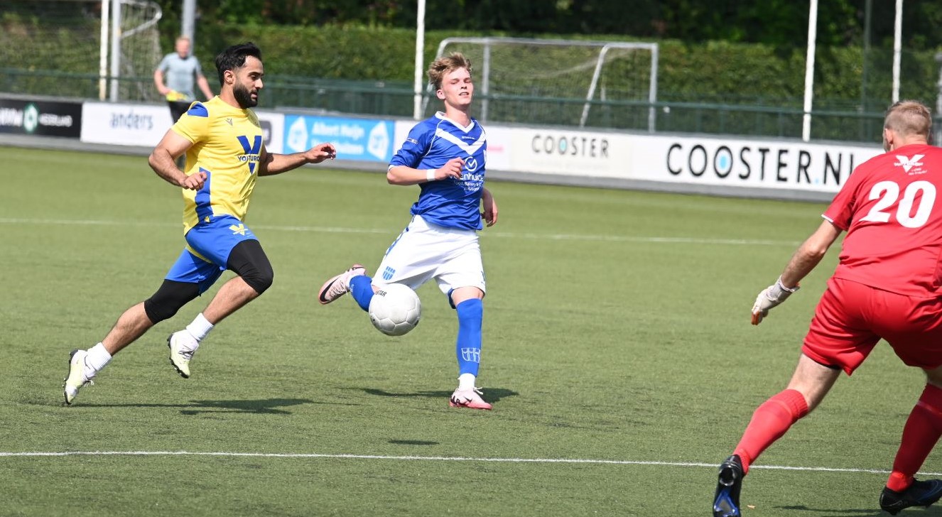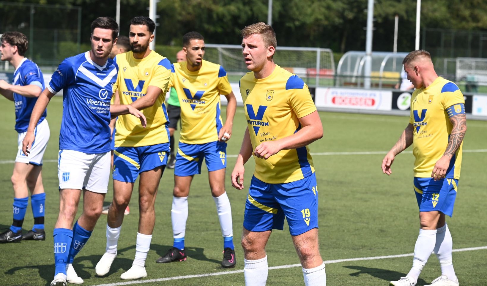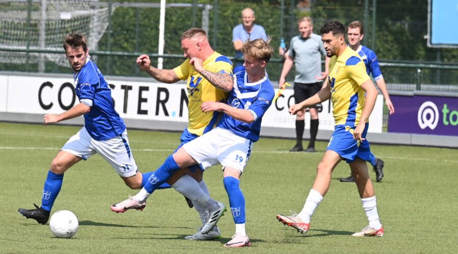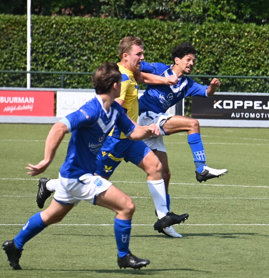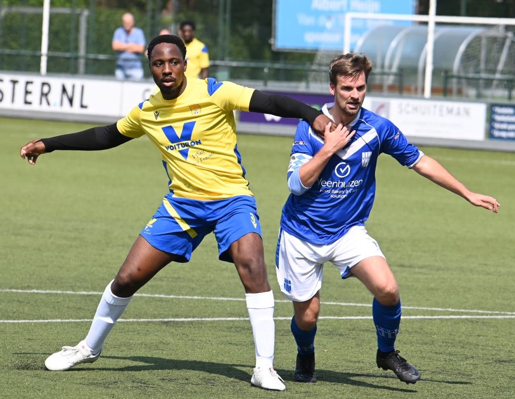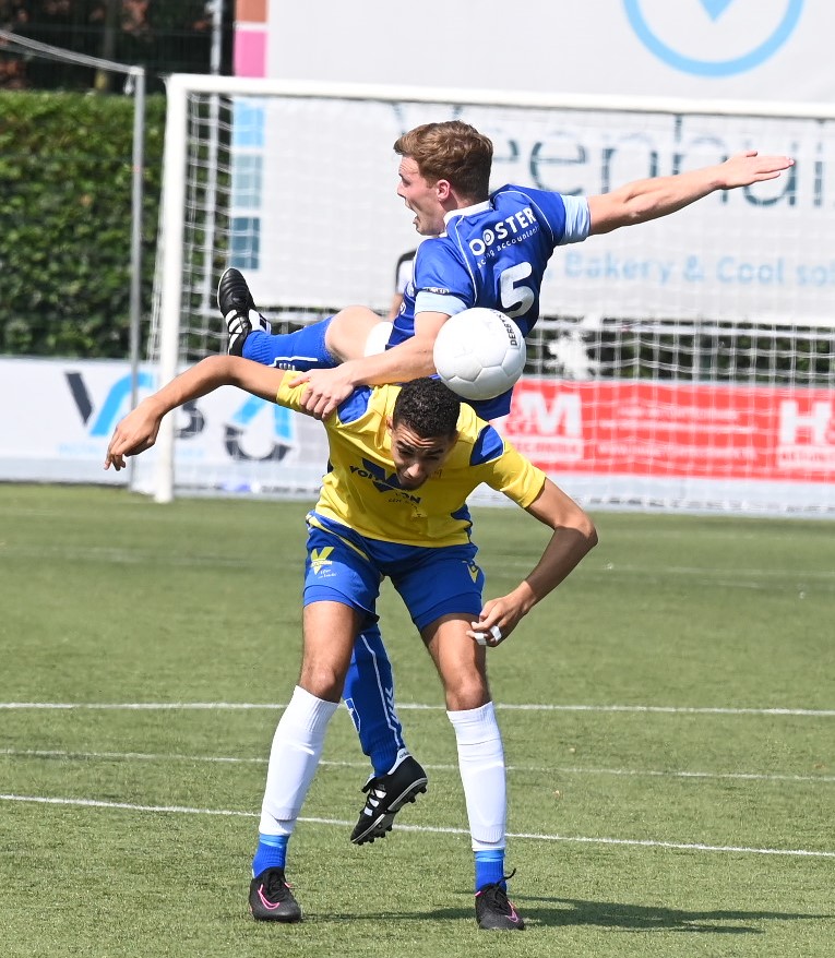 Inmiddels heeft NSC Nijkerk, gedegradeerd naar de tweede klasse, twee oefenwedstrijden gespeeld en beide zijn geeindigd zoals ze zijn begonnen. Zowel tegen Hierden als tegen VVOP werd het 0-0. De wedstrijd tegen de Voorthuizenaren werd zaterdag 17 augustus op de velden van VVOP gespeeld. Daarin leidde VVOP de dans in de eerste helft en was het NSC Nijkerk dat meer pressie zette in de tweede 45 minuten. Gescoord werd er echter niet. Foto Kees van den Heuvel