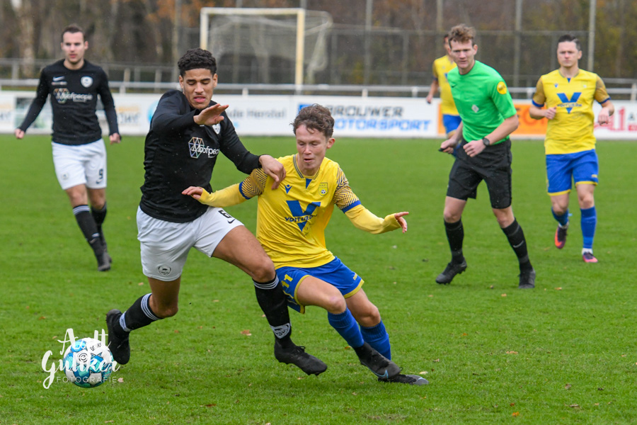 NSC Nijkerk heeft zaterdag 25 november op eigen veld een beetje ongelukkig verloren van WSV uit Apeldoorn. Het werd 1-2. De eerste kansen waren voor de Nijkerkers, echter bleek keeper Largo Karrenbelt een sta-in-de-weg. Uiteindelijk werd gescoord door de gasten. Mike de Beer nam de bal vanuit een vrije trap en via David Spoelstra ging de namens namens WSV in de goal. Na rust maakte Mike de Beer de 0-2 na vanuit een vrije trap goed te zijn aangespeeld. NSC deed in de allerlaatste minuut nog wat tegen. In de 91e minuut heeft NSC wat terug gedaan en de 1-2 gescoord. Er was een mooie aanname vanuit de ingooi richting Kevin van Essen. Via Van den Brom kwam de bal weer bij Kevin van Essen en vervolgens werd de 1-2 gemaakt. De resterende tijd was te kort om een punt in eigen huis te houden. Foto’s Aalt Guliker, tekst Kees van den Heuvel