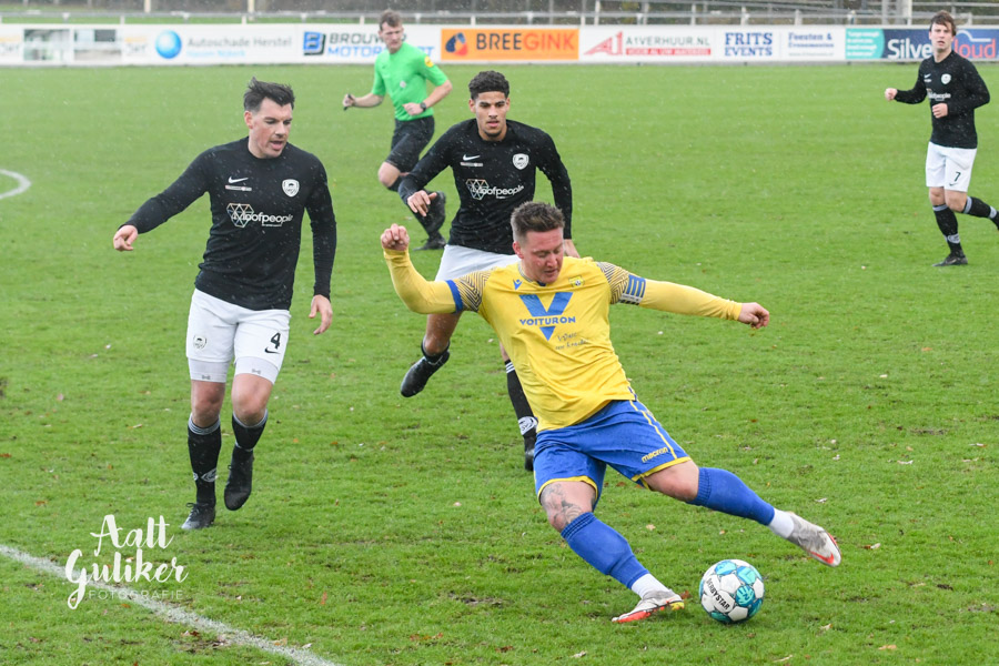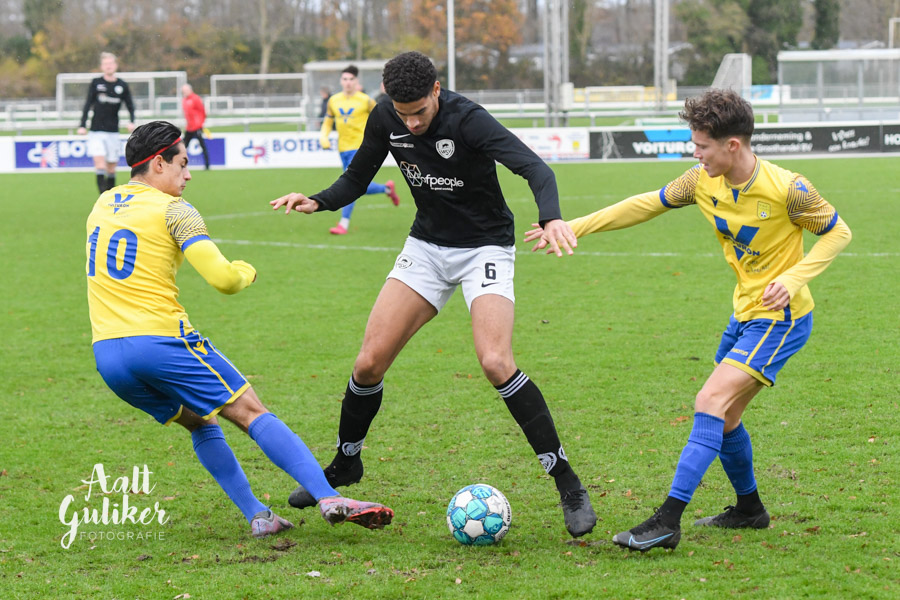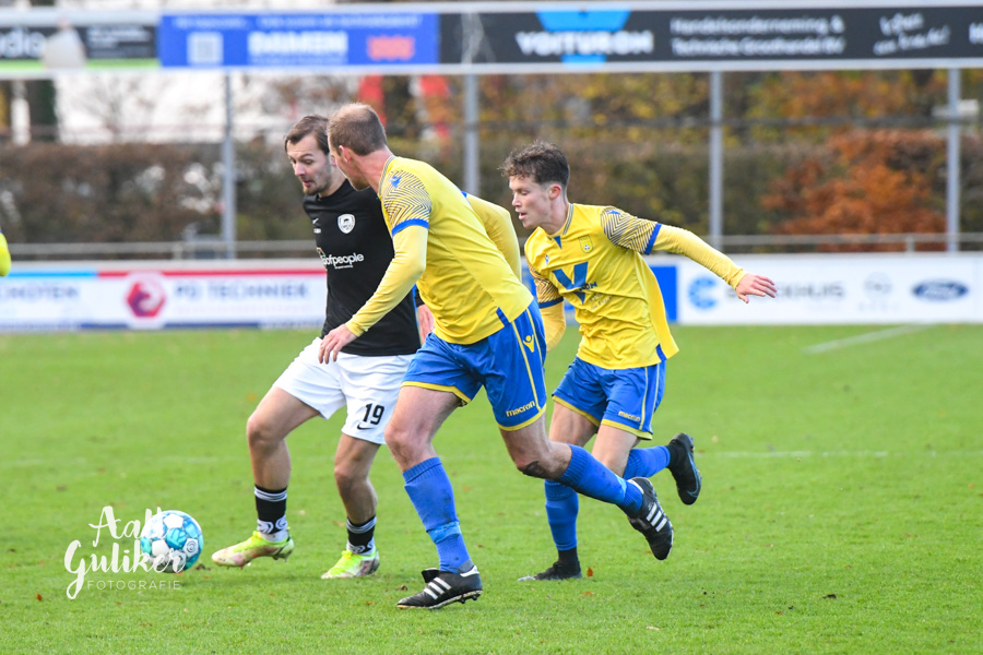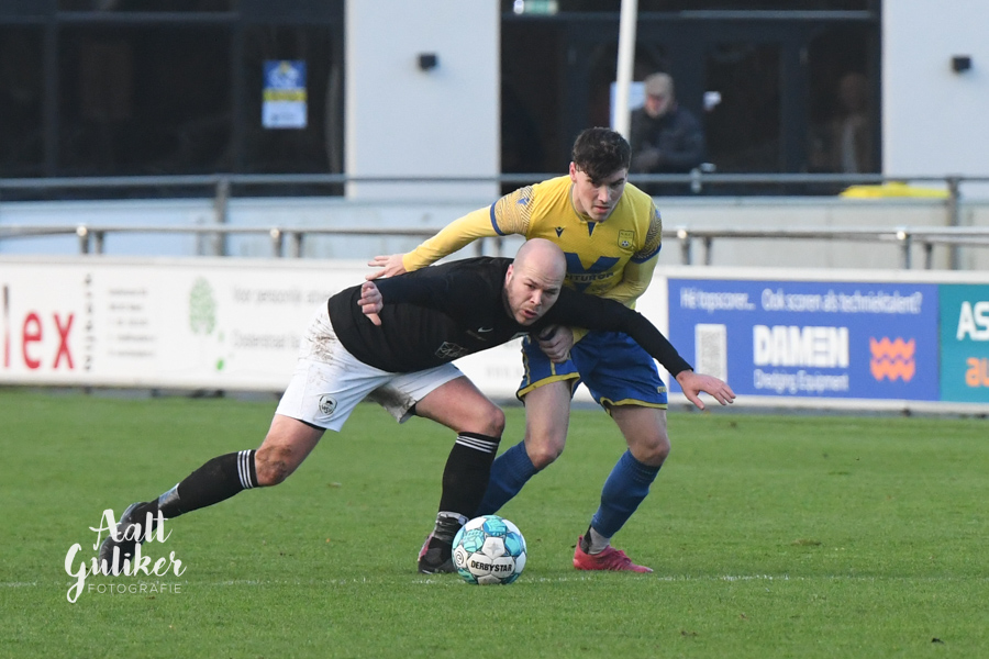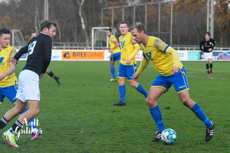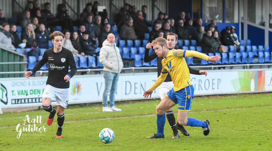 NSC Nijkerk heeft zaterdag 25 november op eigen veld een beetje ongelukkig verloren van WSV uit Apeldoorn. Het werd 1-2. De eerste kansen waren voor de Nijkerkers, echter bleek keeper Largo Karrenbelt een sta-in-de-weg. Uiteindelijk werd gescoord door de gasten. Mike de Beer nam de bal vanuit een vrije trap en via David Spoelstra ging de namens namens WSV in de goal. Na rust maakte Mike de Beer de 0-2 na vanuit een vrije trap goed te zijn aangespeeld. NSC deed in de allerlaatste minuut nog wat tegen. In de 91e minuut heeft NSC wat terug gedaan en de 1-2 gescoord. Er was een mooie aanname vanuit de ingooi richting Kevin van Essen. Via Van den Brom kwam de bal weer bij Kevin van Essen en vervolgens werd de 1-2 gemaakt. De resterende tijd was te kort om een punt in eigen huis te houden. Foto’s Aalt Guliker, tekst Kees van den Heuvel