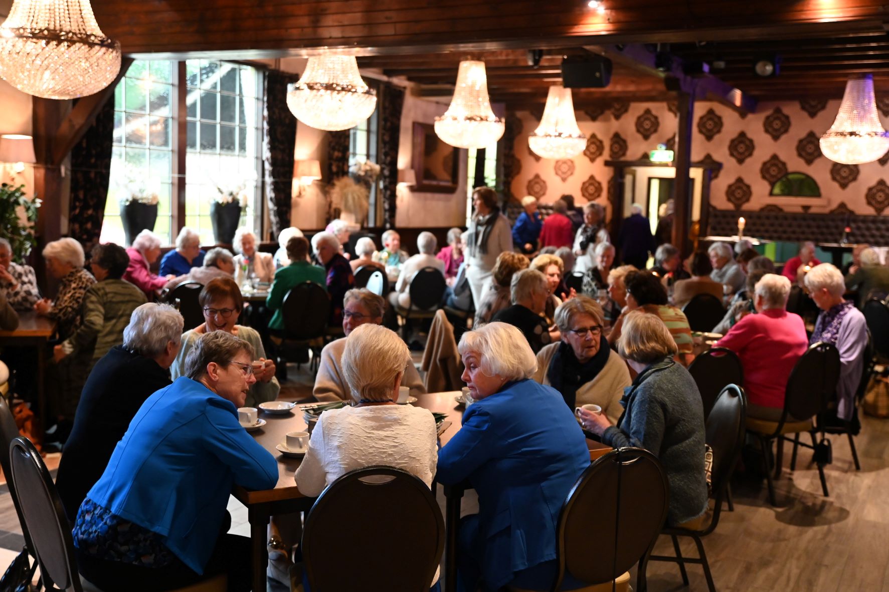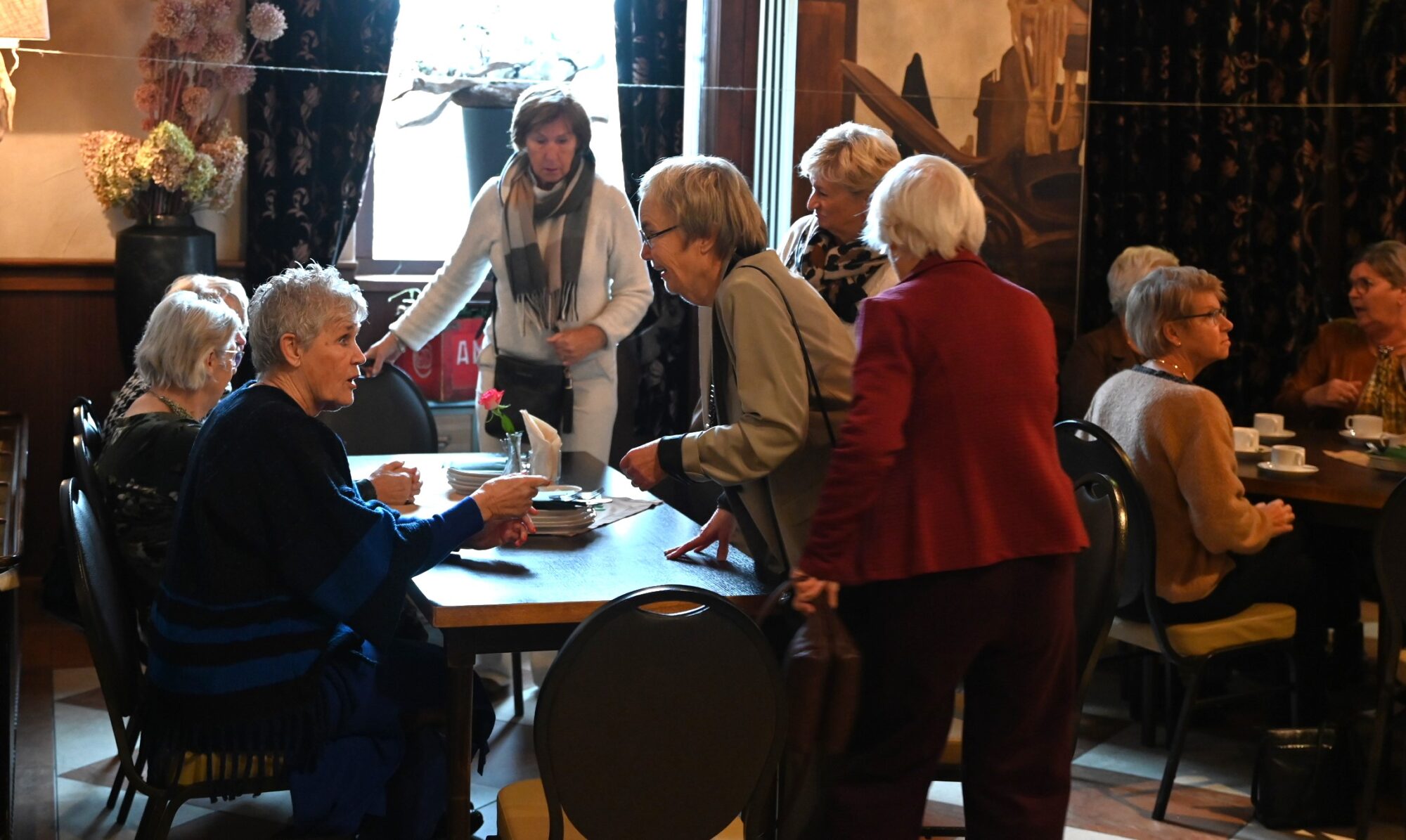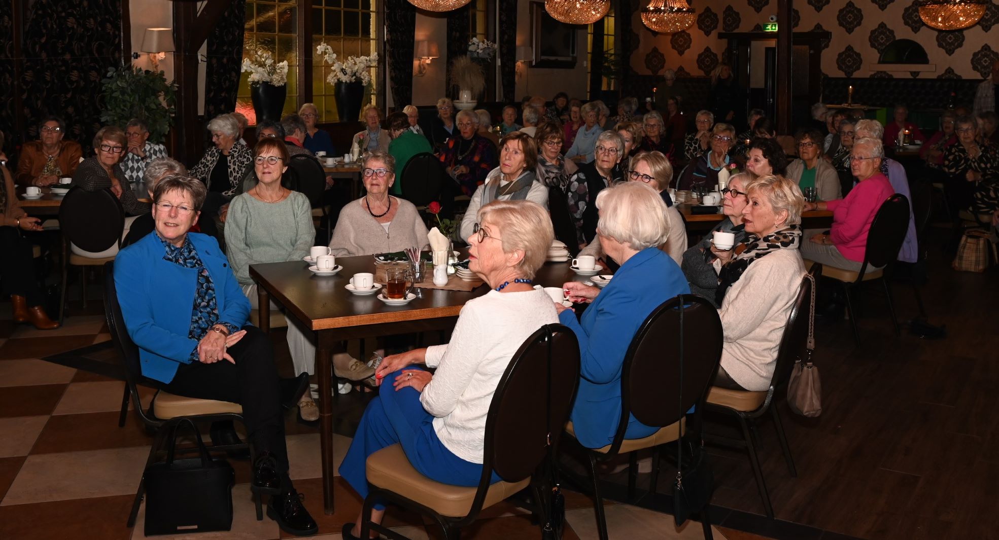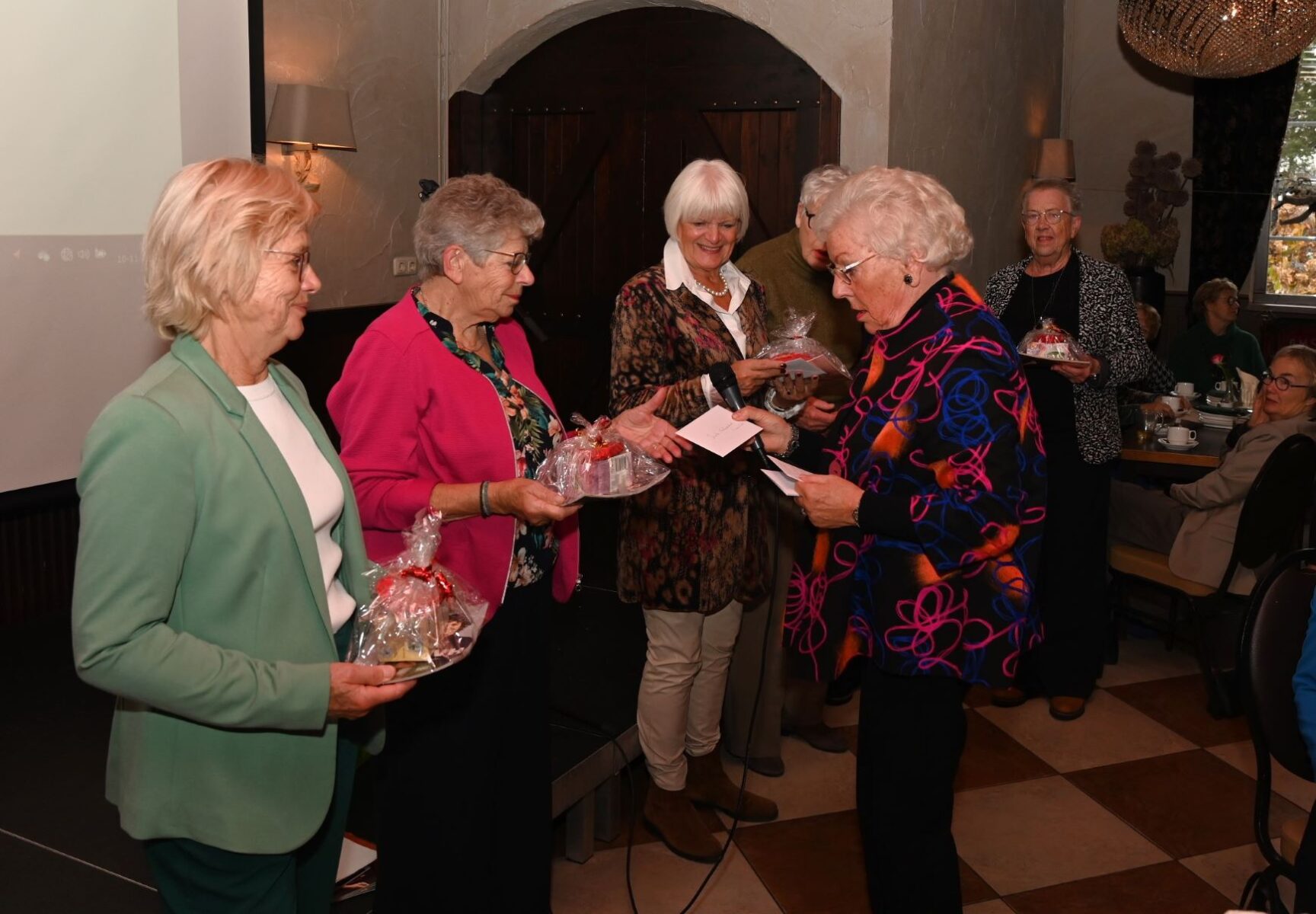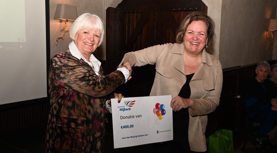 De Nijkerkse afdeling van de Nijkerkse Vereniging van Huisvrouwen vierde vrijdag 10 november haar veertigjarige bestaan. Dat gebeurde in het Koetshuis in Nijkerk. Ter gelegenheid van het jubileum overhandigde wethouder Esther Heutink een cheque ter waarde van 400 euro. Ook de zeer gevatte (en grappige) landelijke voorzitter van de NVVH, Dieny Scheffer, was aanwezig. Zij droeg een gedicht voor van Paul van Vliet met een ode aan de vrouw c.q. moeder. Het Nijkerkse bestuur ontving van haar een boekwerk van de NVVH en een theepakket. Ze onderstreepte dat de Nederlandse Vereniging van Huisvrouwen allang niet meer bekend is van het keurmerk maar vooral veel leuk (maatschappelijk culturele) activiteiten ontwikkelt. Foto Kees van den Heuvel