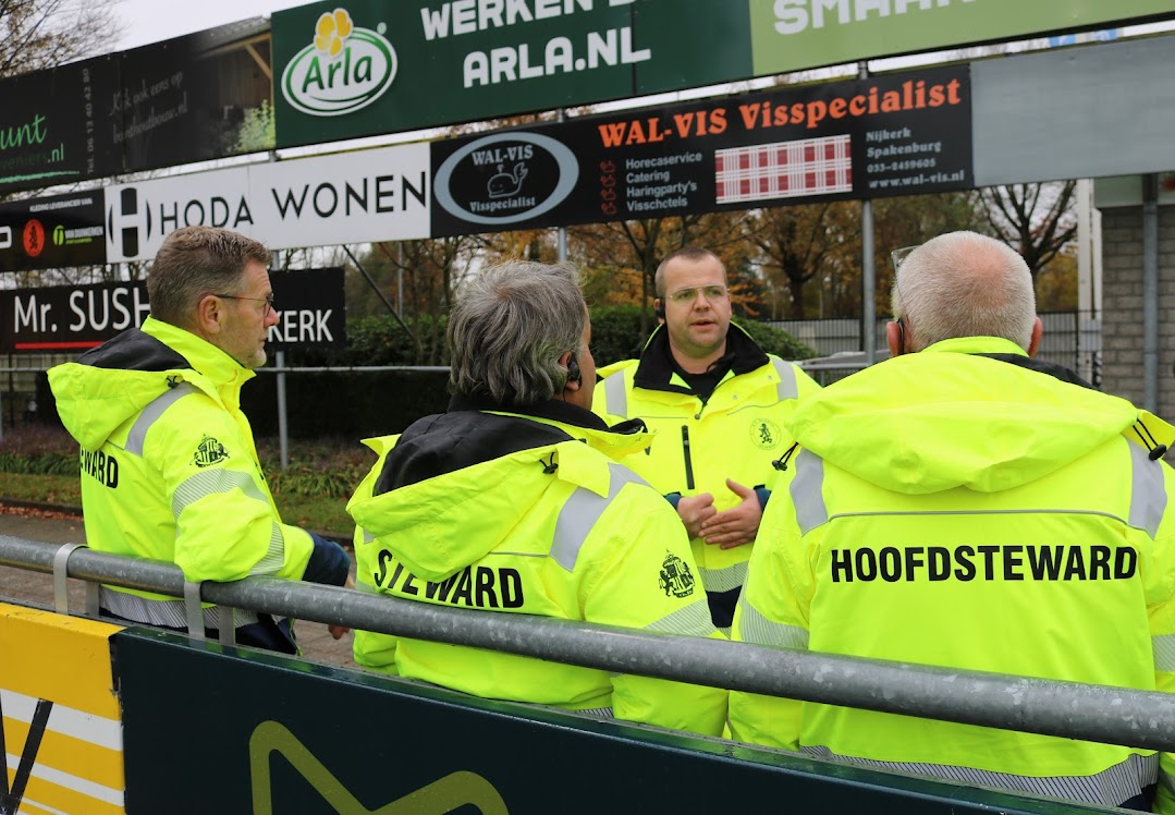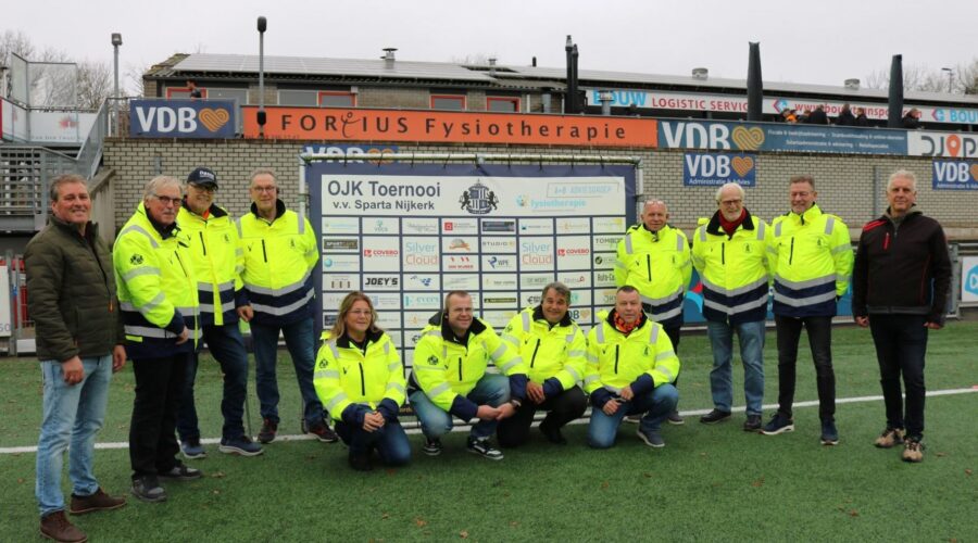 De OJK (Ouwe Jongens Krentenbrood) is binnen Sparta Nijkerk vooral bekend van het legendarische OJK Toernooi, de jaarlijkse afsluiting van het voetbalseizoen bij Sparta Nijkerk. Als de financiën het toelaten zoeken de OJK’s met liefde voor de club een bestemming binnen Sparta Nijkerk om de club te ondersteunen. Dit jaar werd besloten om de stewards van Sparta Nijkerk van een nieuwe vierjaargetijden jas te voorzien. Het team stewards is een waardig visitekaartje van Sparta Nijkerk bij de thuiswedstrijden (en waar nodig uitwedstrijden) van het eerste elftal, waar zij met een glimlach alles rond de wedstrijden in goede banen leiden. Ook als team stralen zij onder alle weersomstandigheden (voetbal)plezier uit. En niet alleen bij de wedstrijden van het eerste elftal, ook bij andere evenementen zijn ze regelmatig van de partij. Onder andere bij het OJK Toernooi. De OJK ging om tafel met Bee-Visible. Dat leverde mooie opvallende jassen met gave bedrukking. Bee-Visible maakte nog een mooi gebaar en verzorgde het drukwerk op de jassen gratis. Het team stewards staat er met de nieuwe jassen weer goed strak bij de komende jaren bij Sparta Nijkerk. De jassen zijn 15 november overhandigd. Foto Anja de Greef