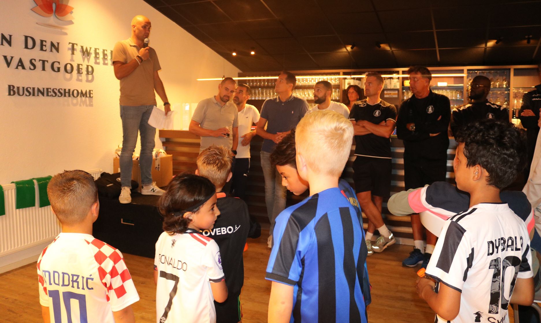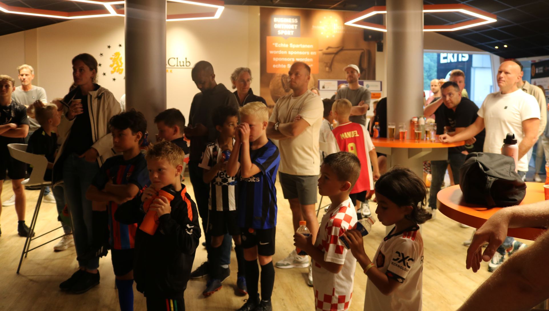 Afgelopen donderdag was in de Van den Tweel Businesslounge op sportcomplex De Ebbenhorst de kick-off voor het nieuwe seizoen van de onderbouw selectie teams van Sparta Nijkerk. Deze 7 teams (JO11-1/2; JO10-1/2; JO9-1/2 en JO8-1) zijn door verschillende sponsors in het nieuw gestoken en kunnen vanaf nu ook in dezelfde kleding trainen. Daarnaast hebben ze ook een warme jas gekregen om op zaterdag naar de wedstrijden te gaan. De verschillende sponsors zijn daarvoor tijdens deze kick-off bedankt door Sparta Nijkerk en haar Businessclub. Als geste heeft de Businessclub een mooi doek laten maken die op het training/wedstrijdveld de komende jaren zal hangen, zodat iedereen weet welke bedrijven dit voor deze 60 spelers hebben gedaan.
