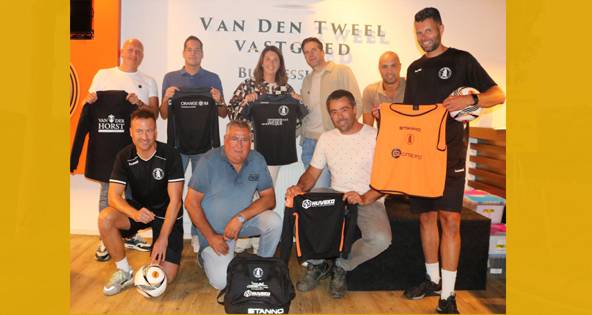 Enorm veel dank aan: Van der Horst Makelaars, Carrosseriewerk Van de Weijer, Qonqord, Covebo Nijkerk en Orange Investment Managers. Tevens werd tijdens deze bijeenkomst ook Grondwerken Van ’t Veld/ HUVEKO bedankt voor het sponsoren van trainingspakken en tassen voor de JO9-1. Op de foto boven van links naar rechts Jan van der Horst, Ronald van Aerssen, Ineke van de Weijer, Bart van de Weijer, Jelle Jaap van Hoff, Bart van Steeg. Onder: Evert Jan Buitenhuis, Gert van ’t Veld, Teunis van ’t Veld. Foto’s: Anja de Greef