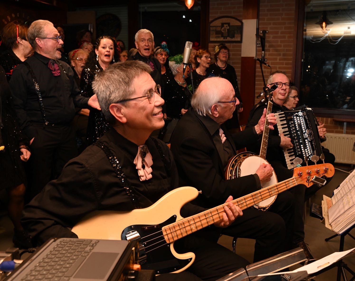 Ook in Hoevelaken is het evenement Gluren bij de Buren zondag 1 februari goed bezocht. Hans Root van Sportcafé De Slag verwelkomde het Smartlappenkoor Uit Het Leven Gegrepen. De zaal zat helemaal vol. Zij werden afgewisseld door Martin The Grooner Rellum. In het kerkgebouw aan De Eshof was Nordanus te horen met een woordje vooraf van Feije Duim. Op de Anthonie Van Leeuwenlaan trad Richard Verburgt op. Foto Kees van den Heuvel