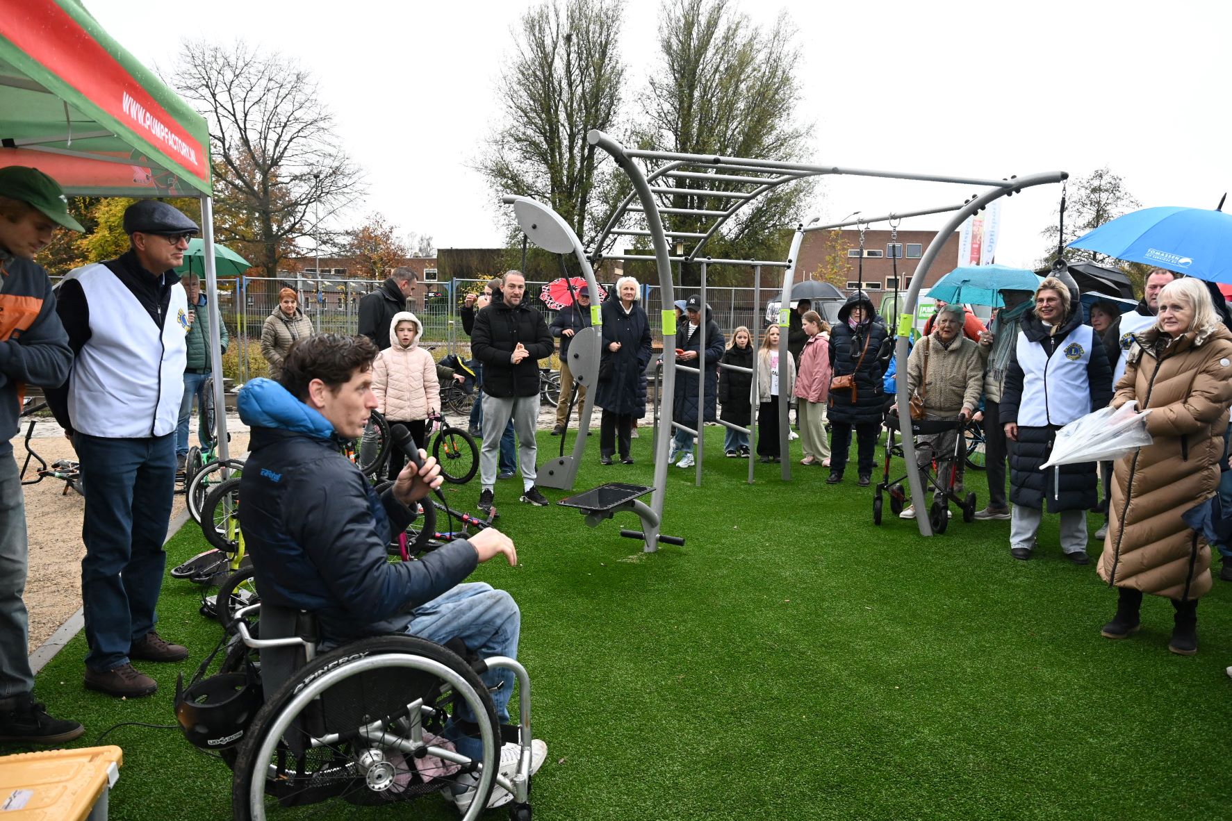 Naast sporthal De Slag in Hoevelaken is een beweegplein geopend. Leden van de Lionsclub, die het plein mede hebben geinitieerd, mochten als eersten gebruik maken van de toestellen. Daarna konden bezoekers deelnemen aan clinics op het beweegplein. Iedereen mag gratis gebruik maken van het beweegplein. Uiteindelijk moet het uitgroeien tot een nieuwe ontmoetingsplek voor sport en beweging in Hoevelaken. Ondernemer Sport2Play biedt later ook bootcamps aan. Het beweegplein in Hoevelaken is tot stand gekomen door een samenwerking tussen de gemeente Nijkerk, de Lionsclub Hoevelaken, Sports2Play, The Pump Factory en het Wheelchair Skills Team. Een groot deel ervan is betaald door de provincie. De Lions Club zorgt voor het onderhoud. Volgens wethouder René Windhouwer is dit initiatief een prachtig voorbeeld van laagdrempelige sportvoorzieningen in de openbare ruimte: “Met de pumptrack en het beweegplein krijgen jongeren en andere sportieve inwoners een plek om elkaar te ontmoeten, te bewegen en plezier te maken. Het is mooi om te zien hoe sport verbindt en Hoevelaken in beweging brengt.” In het voorjaar van 2026 opent ook de speel- en kinderboerderij De Torteltuin. Daarmee bestaat het Dorpspark straks uit beachvolleybalvelden, een pumptrack, een beweegplein en een kinderboerderij. Een plek voor ontmoeting, beweging en plezier voor jong en oud. Foto Kees van den Heuvel