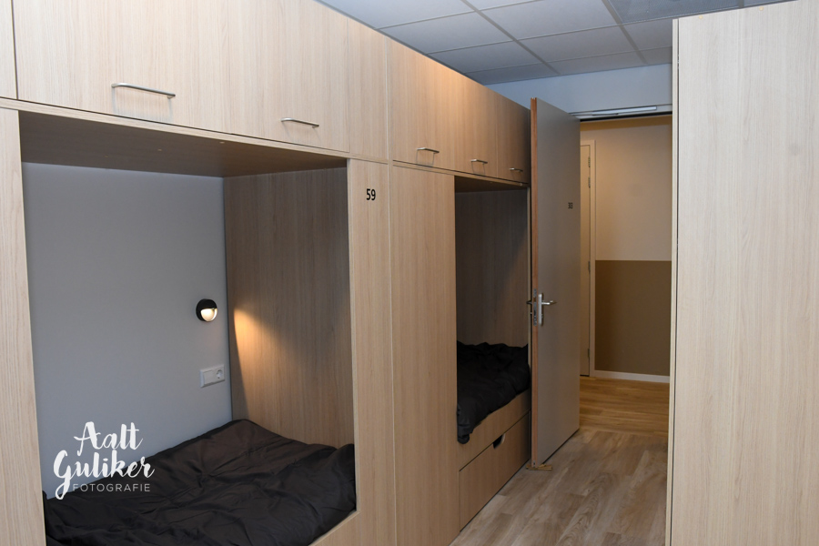 Het gebouw aan de Beurtschipper telt drie verdiepingen. De derde verdieping is volledig gereed, de tweede verdieping is bijna klaar en op de eerste verdieping moeten nog diverse werkzaamheden worden uitgevoerd. In totaal is er plaats voor 75 bewoners. De eerste vijftig zullen de komende week hun intrek nemen op de tweede en derde verdieping. De resterende capaciteit wordt later in gebruik genomen. De meeste kamers zijn ingericht voor twee personen, met daarnaast enkele driepersoonskamers. Elke kamer is voorzien van bedden, kasten en een eigen koelkast. Bewoners maken daarnaast gebruik van een gedeelde grotere kast.