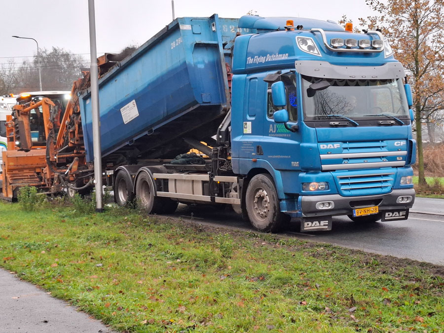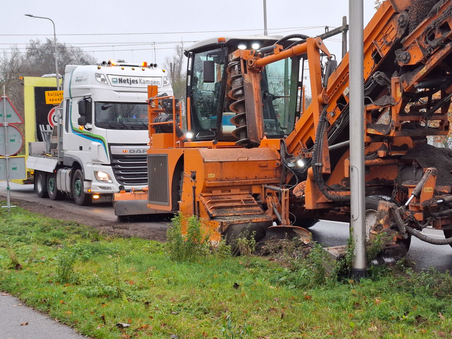 Groot onderhoud langs de Barneveldseweg (N301) zorgde vandaag enige tijd voor vertraging voor de weggebruikers. De bermen werden met groot materieel voor een deel geschraapt, zand en gras werden opgezogen en afgevoerd. Het onderhoud was noodzakelijk om te komen tot een verbeterde afvoer van regenwater. Bron en Foto’s: Henk Karelsen