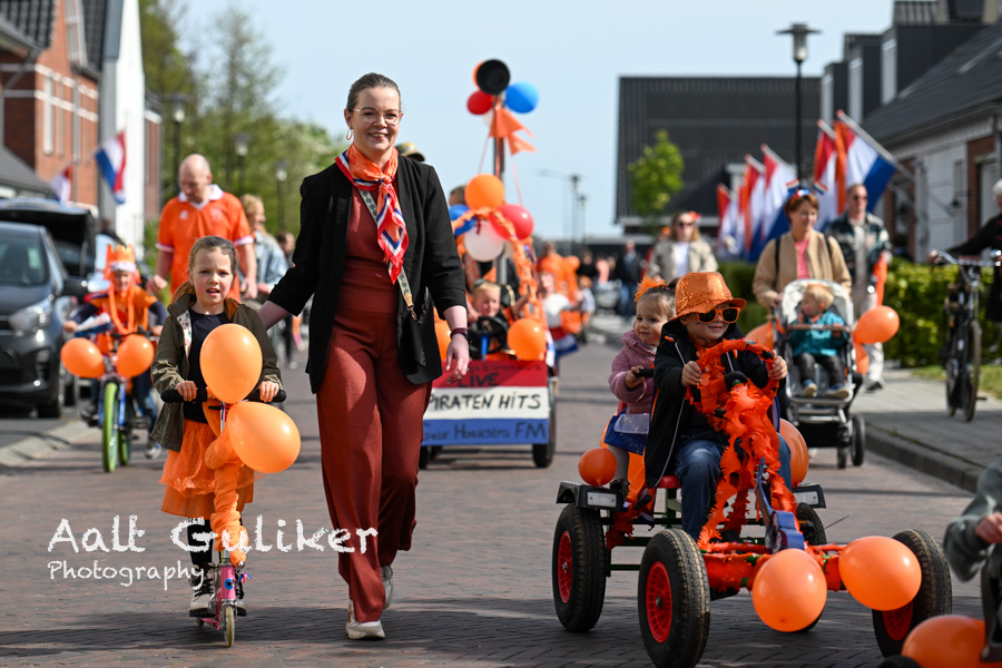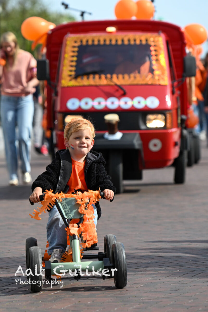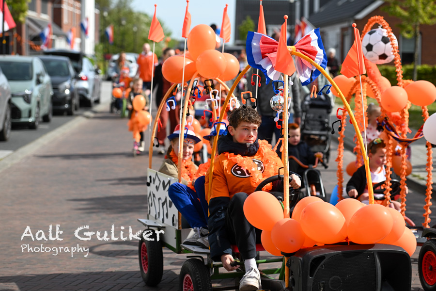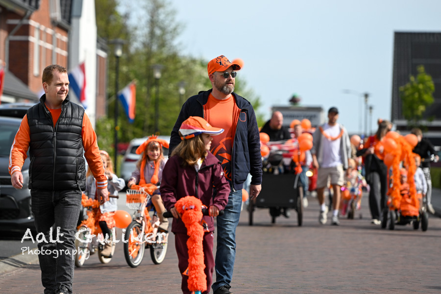 Tijdens Koningsdag vond in Nijkerkerveen een optocht plaats met als thema MUZIEK. Veel kinderen deden mee en trokken door het dorp met hun versierde fietsen, steps en skelters. Ook enkele begeleidende voertuigen waren feestelijk aangekleed en sloten aan bij het thema.
