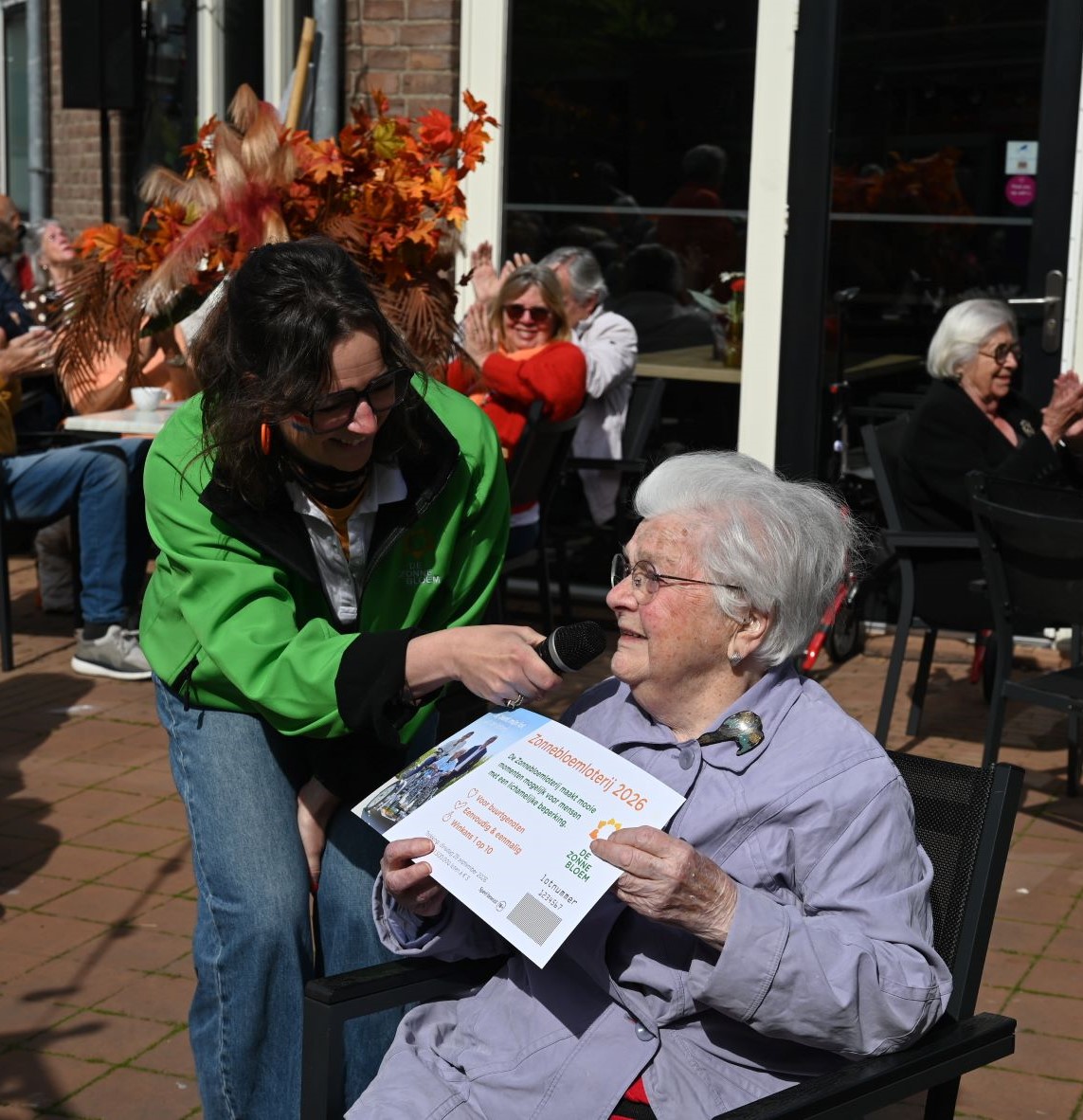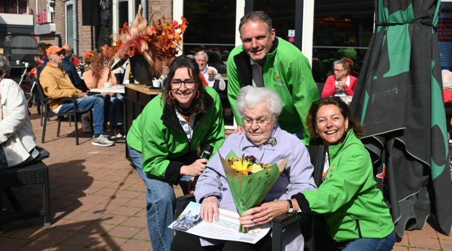 Mevrouw Eerhardt, de oudste vrouw van Hoevelaken, heeft maandag 27 april het eerste symbolische lot gekocht van de jaarlijkse Zonnebloemloterij in Hoevelaken. Met deze aankoop is de lokale verkoop officieel geopend. De opbrengst van de loten komt direct ten goede aan het werk van de plaatselijke Zonnebloem-afdeling, die zich inzet voor inwoners met een lichamelijke beperking. En zeker in dit jaar wordt dat belangrijk in verband met het jubileumfeest van De Zonnebloem. Mevrouw Eerhardt is liefst 102 jaar oud, maar nog altijd doet ze energiek mee aan de activiteiten van de Zonnebloem. De opbrengst van de loterij is voor de afdeling Hoevelaken van cruciaal belang. Van elk verkocht lot vloeit maar liefst € 2,25 direct terug naar de kas van de plaatselijke afdeling. Hiermee worden activiteiten georganiseerd die erop gericht zijn het sociale isolement van mensen met een fysieke beperking te doorbreken. Denk hierbij aan gezellige bijeenkomsten, dagjes uit en huisbezoeken door vrijwilligers. De komende weken gaan de vrijwilligers van De Zonnebloem in Hoevelaken op pad om de loten huis-aan-huis te verkopen. Daarnaast zijn de loten ook verkrijgbaar bij diverse lokale verkooppunten en online. Naast het steunen van het goede doel, maken kopers kans op mooie prijzen in de landelijke trekking. De Zonnebloem afdeling Hoevelaken zet zich al jaren in voor mensen met een lichamelijke beperking in het dorp. Door de inzet van een grote groep enthousiaste vrijwilligers zorgt de afdeling ervoor dat deze doelgroep betrokken blijft bij de samenleving en kan genieten van onvergetelijke momenten. Foto Kees van den Heuvel