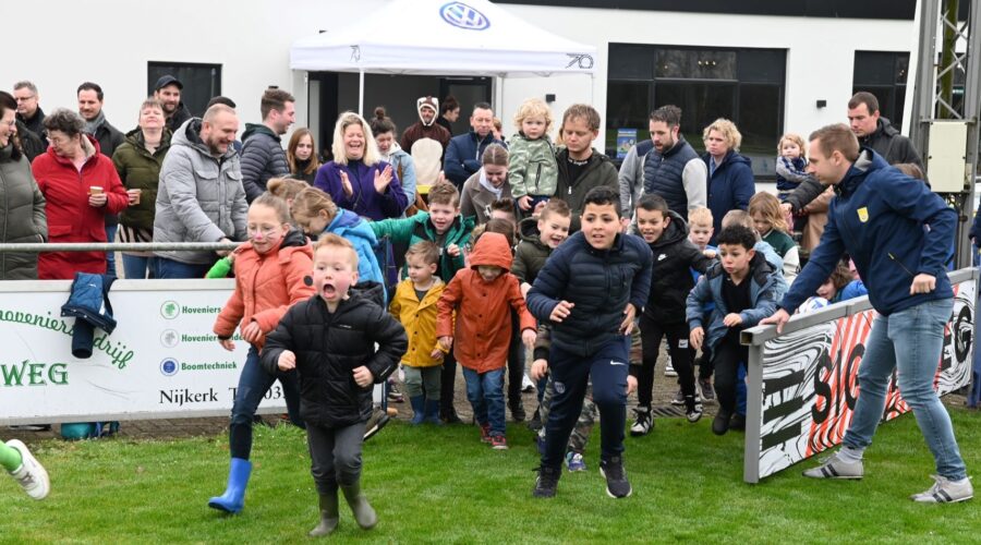 Het was maandagmorgen 1 april een drukte van belang op sportcomplex De Burcht in Nijkerk. Daar kon door de NSC-jeugd paaseieren worden gezocht. Voor de kleinste kinderen was een aparte ruimte op het hoofdveld ingericht om de eieren te zoeken. Op het voetbalveld lagen papieren eieren en die konden worden ingewisseld voor echte eieren. Ook waren twee paashazen aanwezig die rijkelijk met chocolade-eitjes strooiden. Na afloop van het zoeken was er een gezamenlijke brunch in de kantine van NSC Nijkerk. Foto Kees van den Heuvel