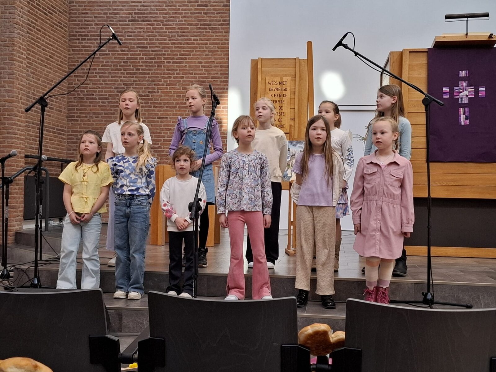 In de Gereformeerde Kruiskerk in Nijkerk werd zondag 29 maart palmpasen gevierd. Tientallen kinderen hadden een palmpaasstok gemaakt en liepen daarmee na afloop van de kerkdienst de kerk aan de Venestraat binnen. Ook werden liederen gezongen door het kinderkoor van de Kruiskerk. Herdacht wordt dat Jezus Christus, overeenkomstig de profetie van de profeet Zacharia, op een ezelsveulen Jeruzalem binnentrok en de menigte hem met palmtakken tegemoet ging. Foto Kees van den Heuvel en Henk Karelsen