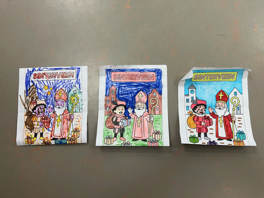 De winnende kleurplaten werden woensdag ook bekend gemaakt. Wout uit groep 1, Pippa uit groep 3 en Anouk uit groep 5 maakten de mooiste exemplaren.
