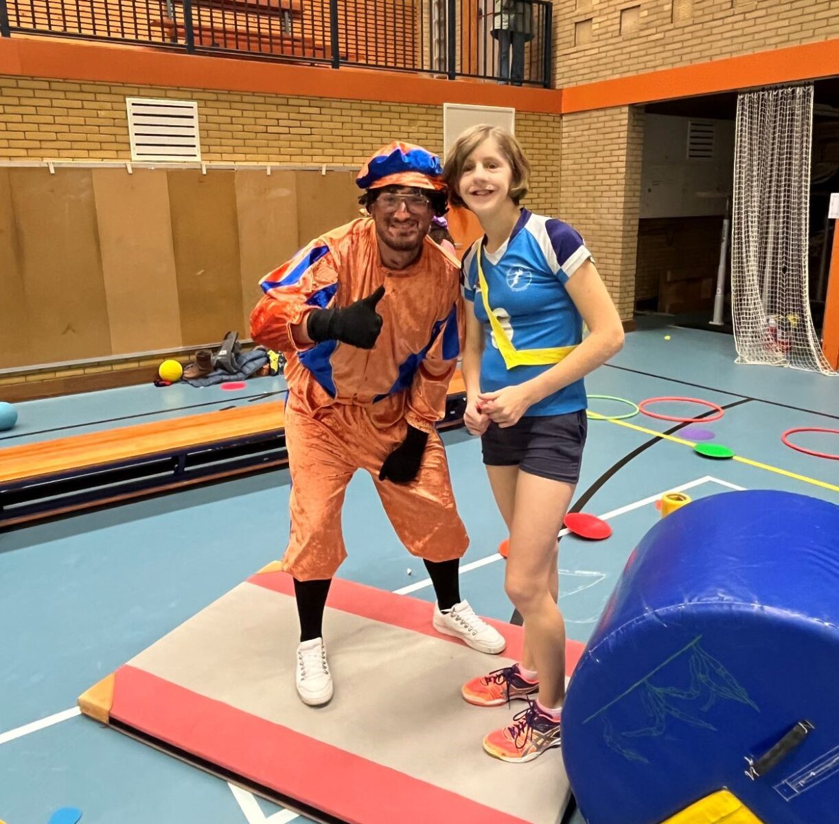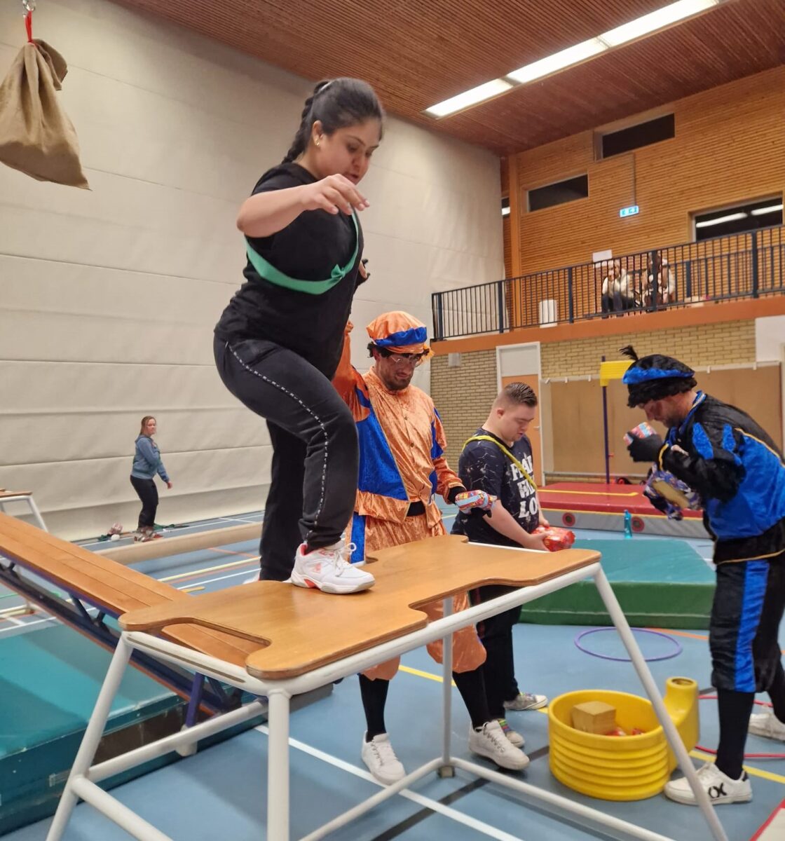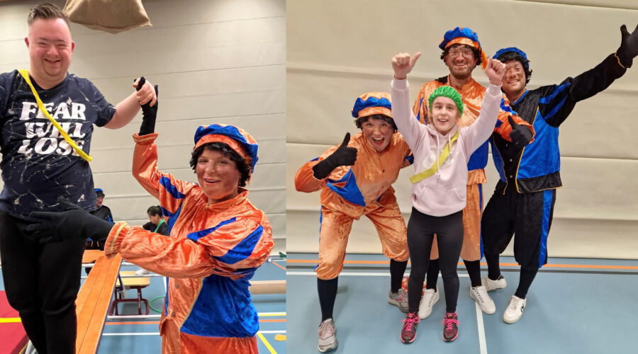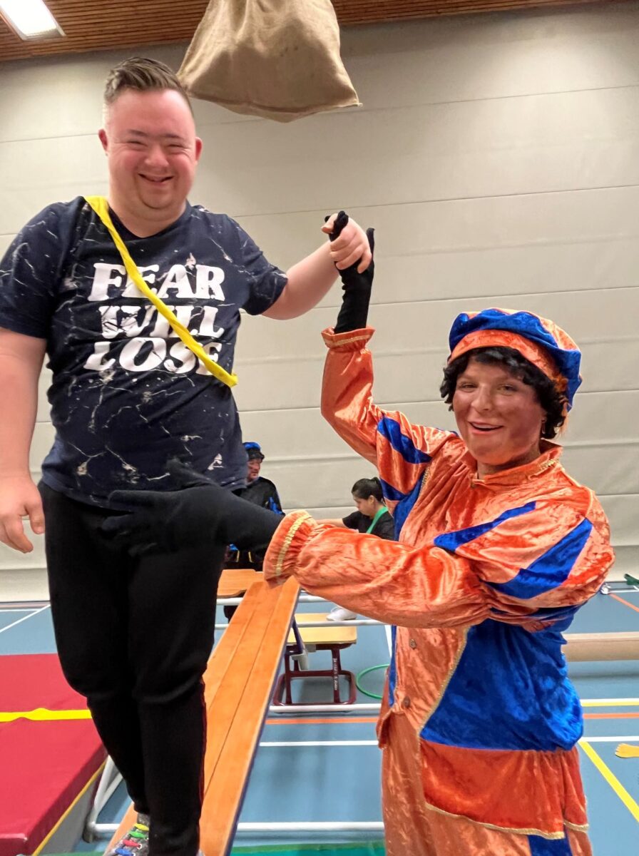 Diverse Pieten hebben een bezoek gebracht aan de leden van de G-Gym van Hellas Hoevelaken. Het was super gezellig. De gymzaal was omgetoverd tot een prachtig behendigheids-Pietenparcours. De vloer is lava Pietengym. Er waren 3 Pieten Pakhuizen met verschillende cadeautjes. De leden moesten door middel van een worp met een dobbelsteen (aantal ogen corresponderen met een schoorsteen) een pakketje naar de juiste schoorsteen brengen waarbij ze de vloer (lava) niet mochten raken. Deden ze dit wel dan moesten ze een speciale opdracht doen om weer mee te kunnen doen. Op deze leuke wijze konden de leden naar hartenlust klimmen, klauteren, balanceren en springen, samen met “de onderste boven Piet”, “de pech Piet” en “de Danspiet”. Ook hebben de G-gymleden tijdens de Pietengym kennis kunnen maken met een nieuw toestel: het opblaasbare schuine vlak. Dit kon de vereniging aanschaffen mede door de opbrengst van de Rabo Clubsupport. Hellas is de Rabobank en de leden die op hen gestemd hebben dan ook zeer dankbaar. De Pieten vinden het erg bijzonder dat Hellas Hoevelaken al meer dan 26 jaar Uniek Sporten aanbiedt in de regio. Door het aanbieden van G-gym wordt de fysieke en mentale fitheid van deze doelgroep gestimuleerd. Maar gym is ook contact maken met anderen, van elkaar leren, een passie delen, grenzen verkennen en bovenal veel plezier hebben. De leden hebben enorm genoten van het Pietenfeest en natuurlijk van het bezoek. Ter afsluiting kregen ze van de Pieten, een Pietendiploma, een appeltje van Oranje en een zakje pepernoten.