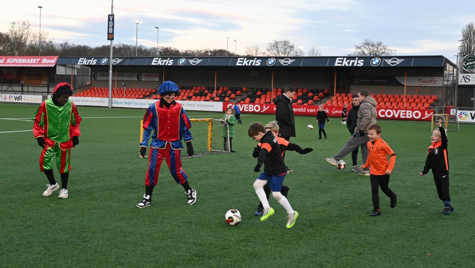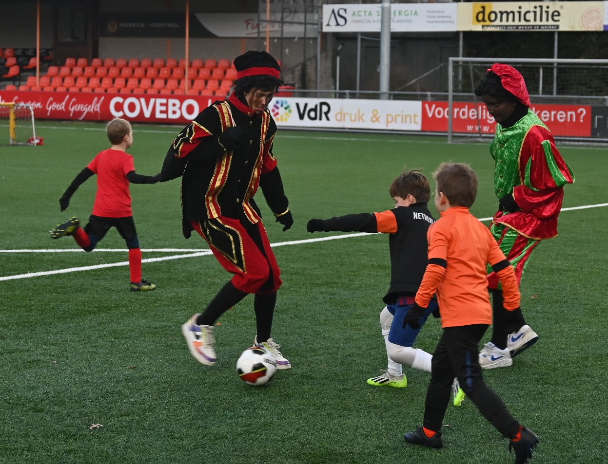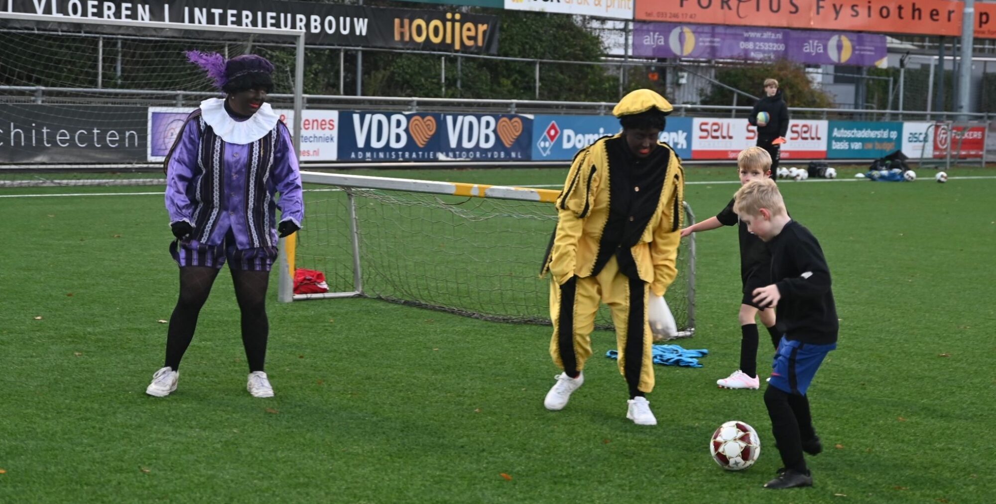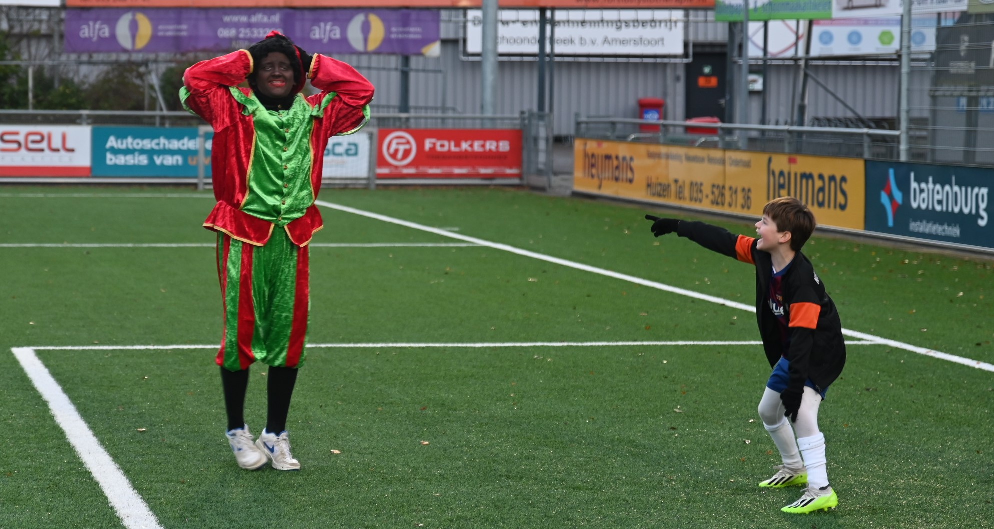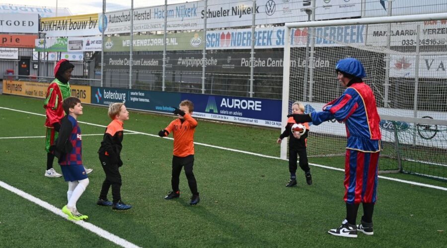 Woensdagmiddag 29 november kwamen diverse Pieten naar voetbalvereniging Sparta Nijkerk om de kinderen van de academie, JO8 en de Mini’s te bezoeken. De Pieten gaven voetballes maar ze klungelden er ontzettend op los. De kinderen konden het veel beter. Na het buitengebeuren gingen de kinderen naar binnen om liedjes te zingen en te worden getrakteerd op wat lekkers. Foto Kees van den Heuvel