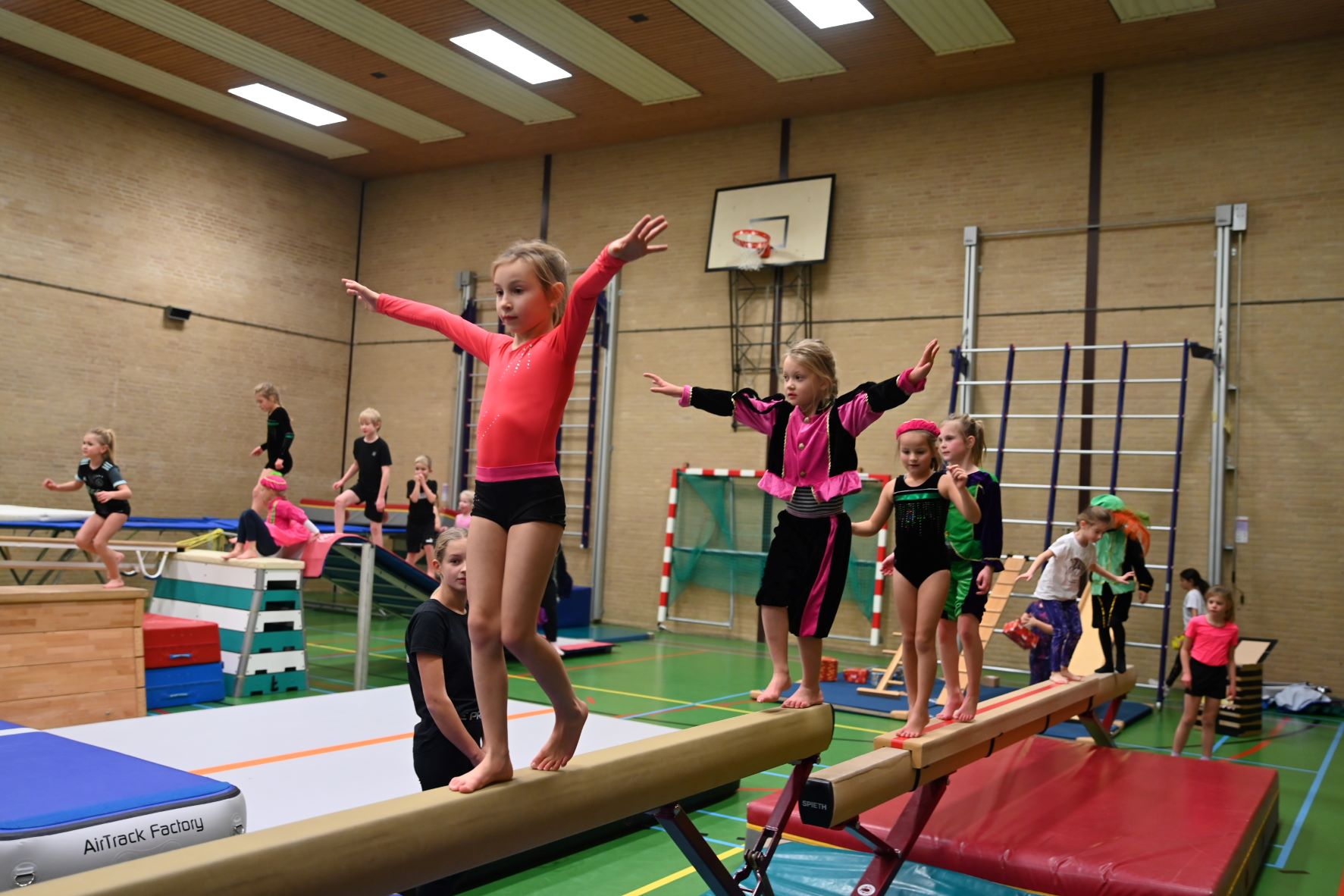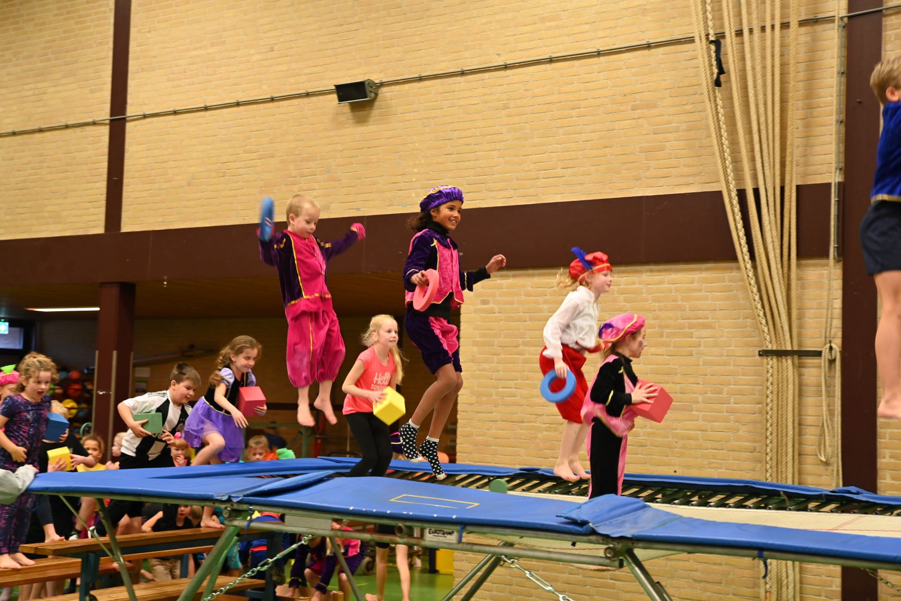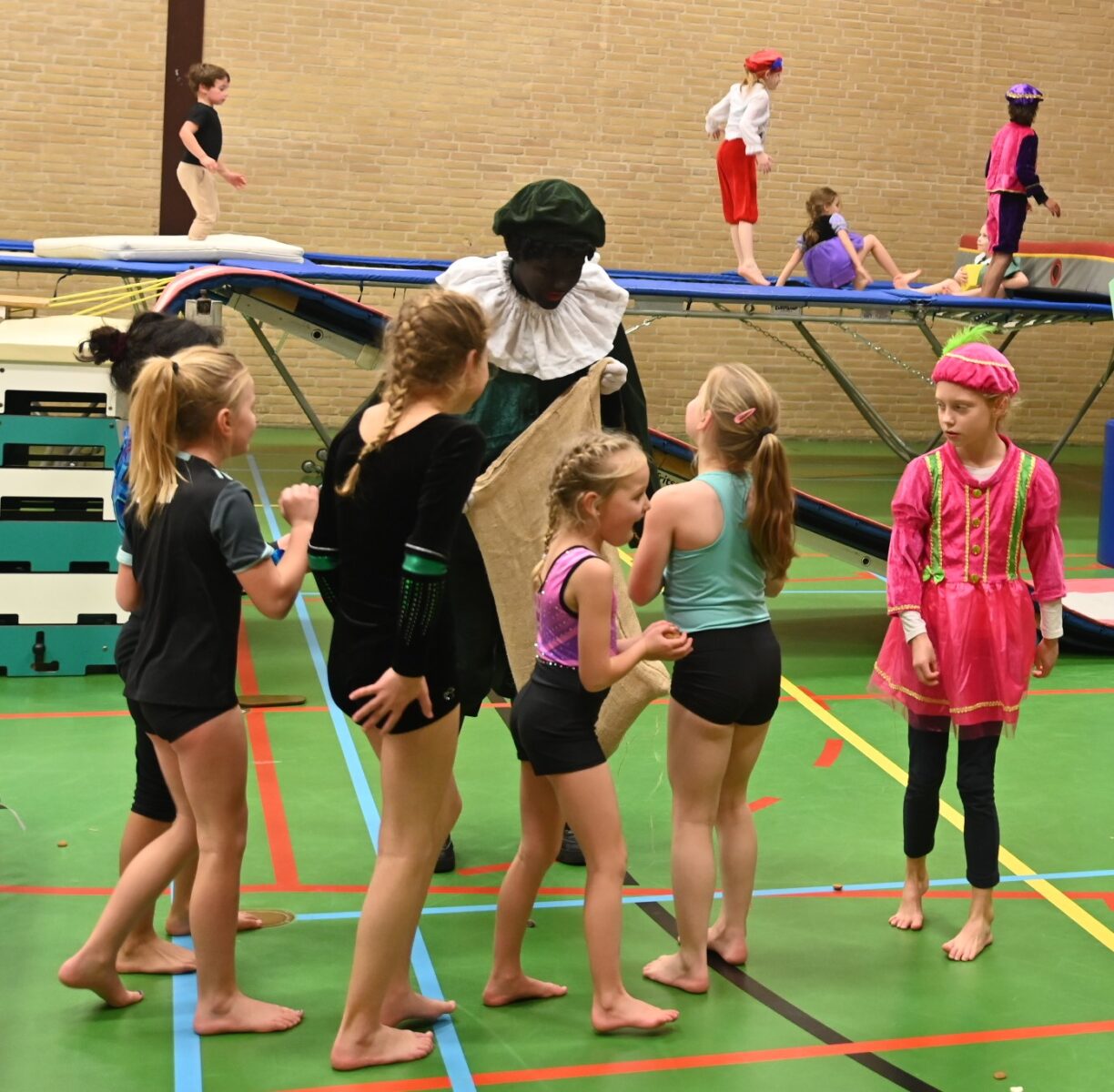 In sporthal De Baggelaar was woensdag 29 november een speciale les met Pietengymnastiek voor alle jongens en meisjes van gymnastiekvereniging DOTO. Alle kinderen waren verkleed en legden een groot parcours af in de sporthal. Even later verschenen twee echte Pieten die de kinderen uiteraard verrasten met veel snoep. Foto Kees van den Heuvel