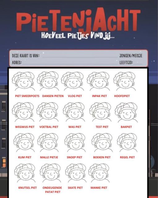 Zaterdagmiddag 2 december is er een vossenjacht in Nijkerkerveen waarbij vanaf 13.30 uur allerlei Pieten moeten worden gevonden in het dorp. Aan de hand van een Pietenkaart moeten de pieten worden opgespoord. De pieten zijn te vinden op de van Noortstraat, Nieuwe Kerkstraat, stukje Winkelmanstraat, bij de appartementen door het paadje op, links de Wouter Blomstraat op en de Zonnehof.