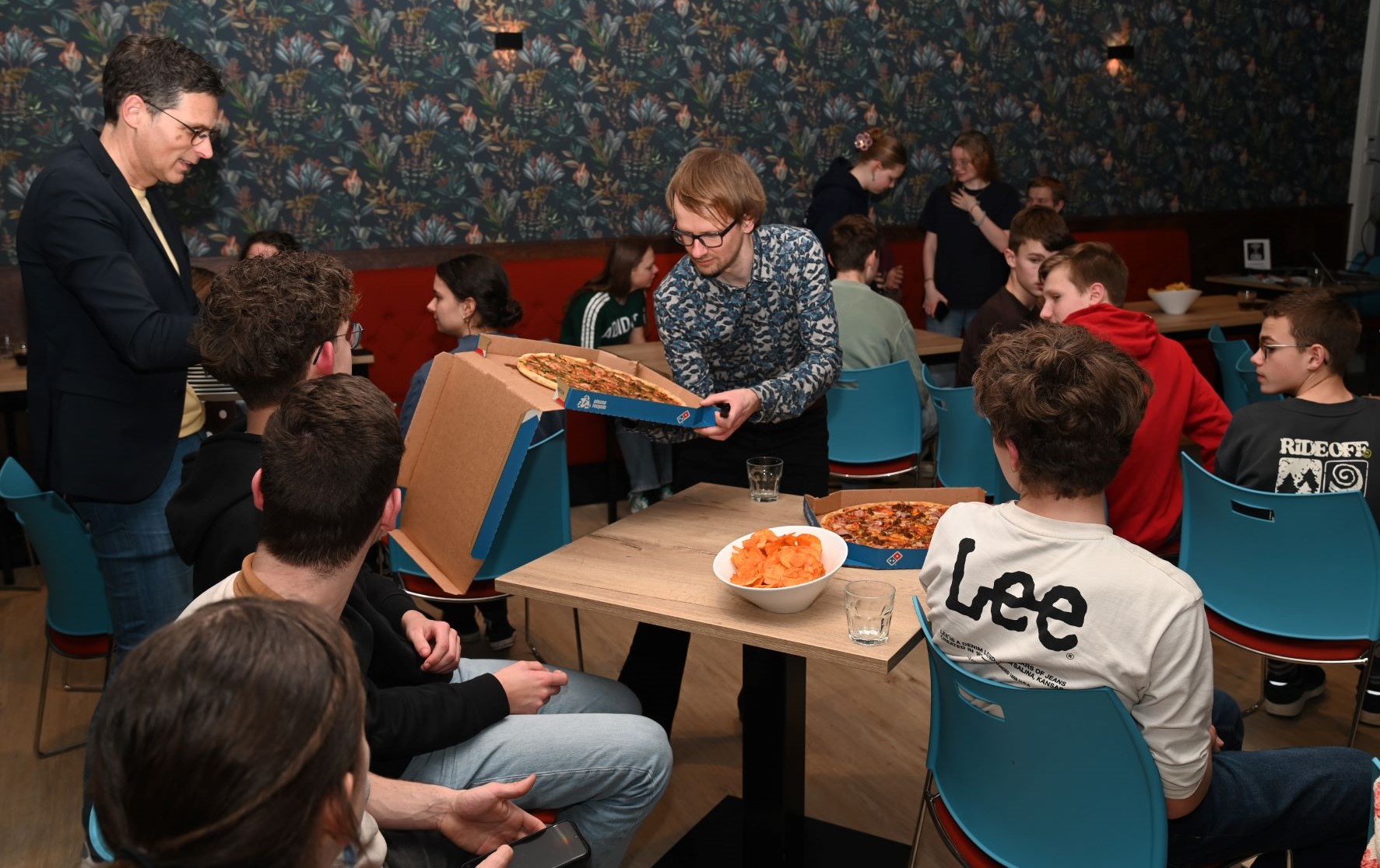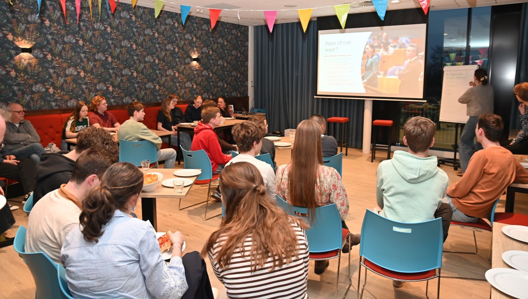 Een avond met pizza, gezelligheid en politieke discussie om jongeren te betrekken bij lokale politieke besluiten. Dat was de bedoeling van “Pizza & Politiek”, een evenement dat vrijdagavond 6 maart door de ChristenUnie-SGP in de gemeente Nijkerk werd georganiseerd, bedoeld als een laagdrempelige avond voor christelijke jongeren om in gesprek te gaan over politiek en geloof. Hoofdgast was voormalig Tweede Kamerlid Gert-Jan Segers. Hij vertelde over de ups en downs van zijn politieke leven en de keuzes die hij heeft gemaakt om een zinvol bestaan op te bouwen. Voor de jongeren was er een pubquiz en mochten vragen worden gesteld aan de raadsleden. Foto Kees van den Heuvel